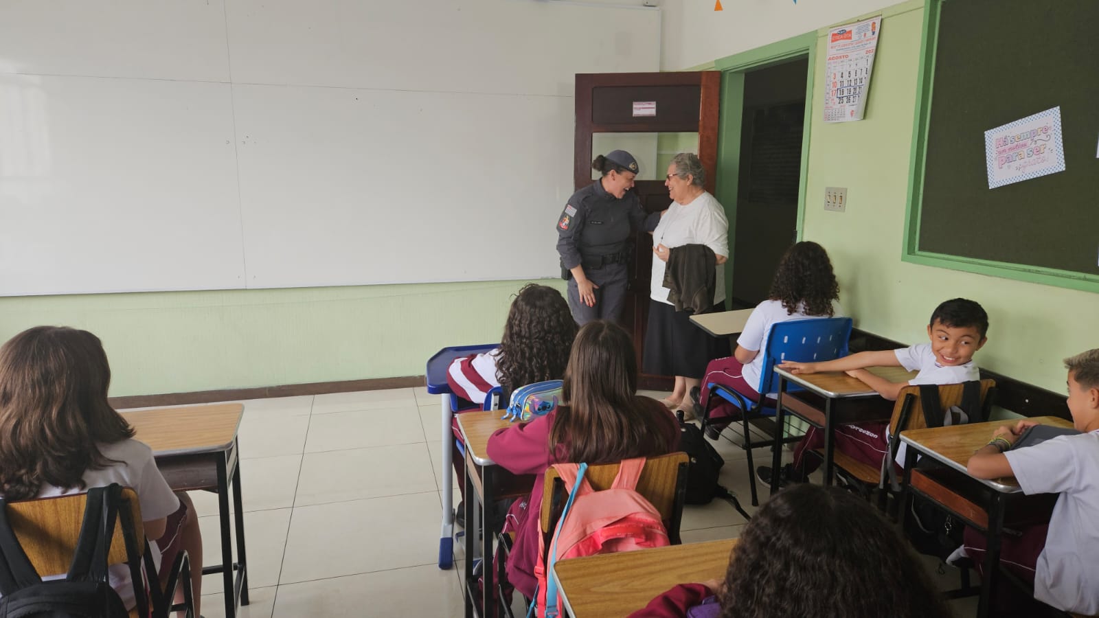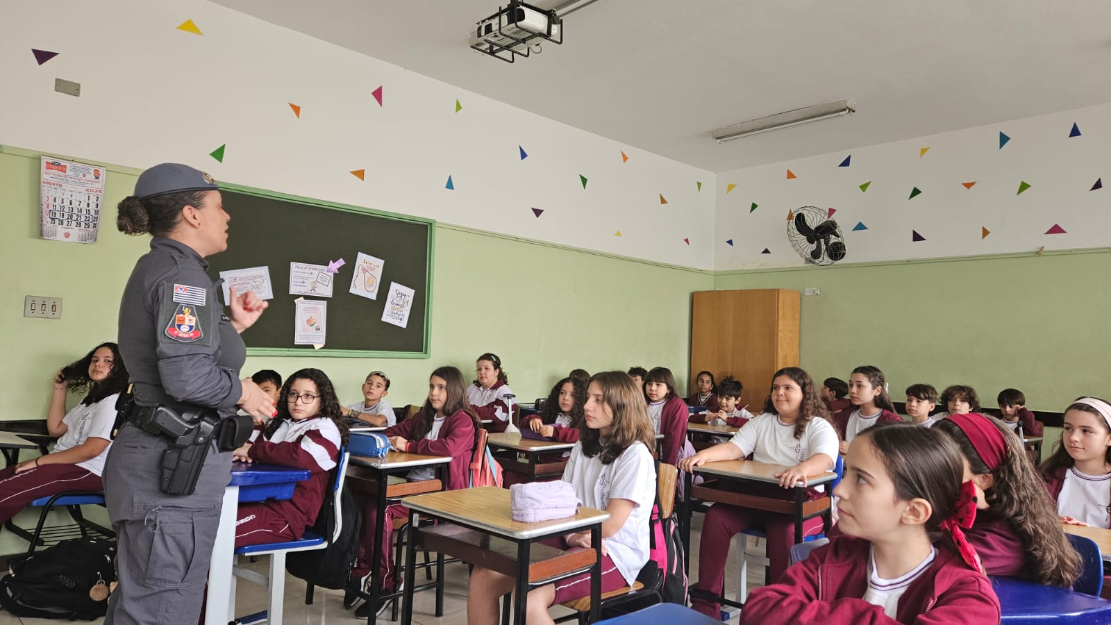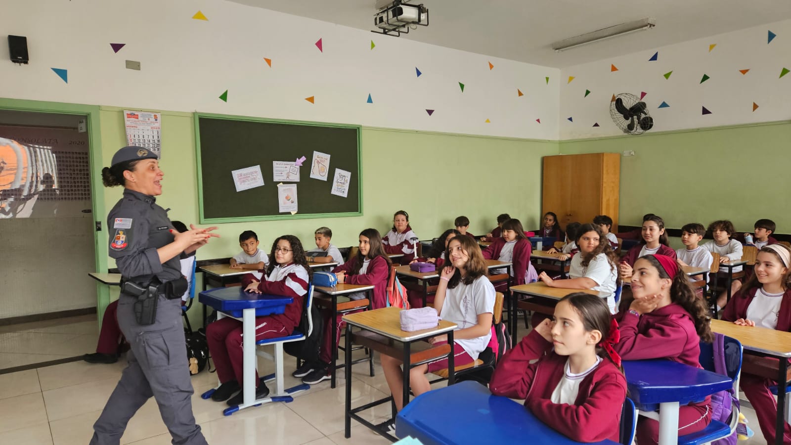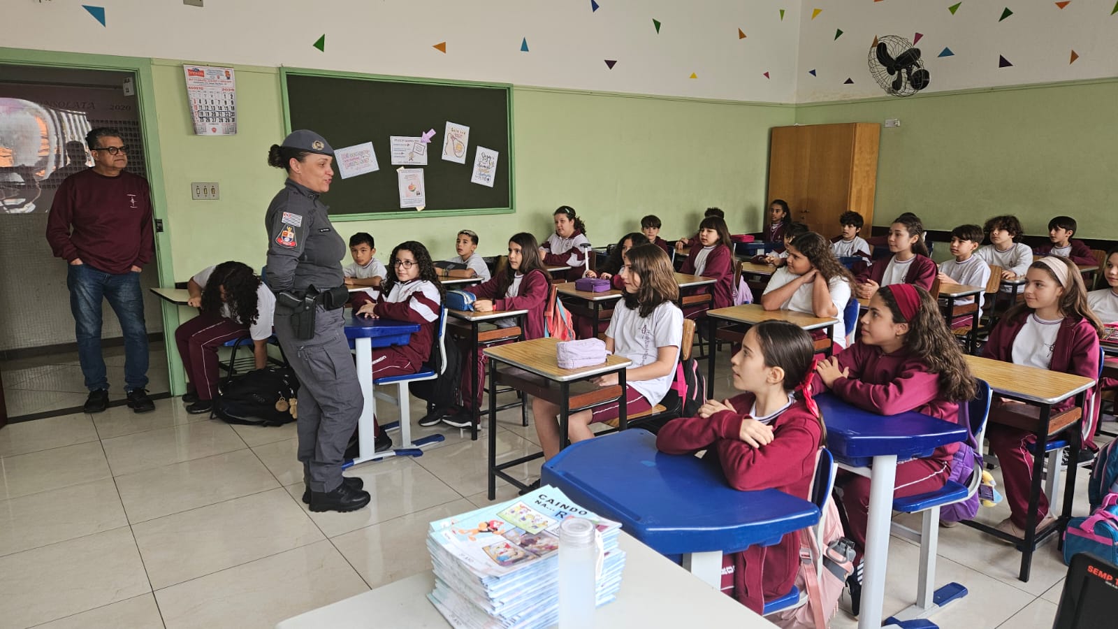 Na primeira aula, nossos alunos dos 5ºs anos foram convidados a embarcar em uma jornada de descobertas, reflexões e valores que transformarão suas escolhas e fortalecerão seus caminhos. Recebemos com carinho a Policial Militar, Soldado Nara Laranjeira, responsável pelo projeto, que já conquistou a turma com sua presença acolhedora e linguagem próxima das crianças.