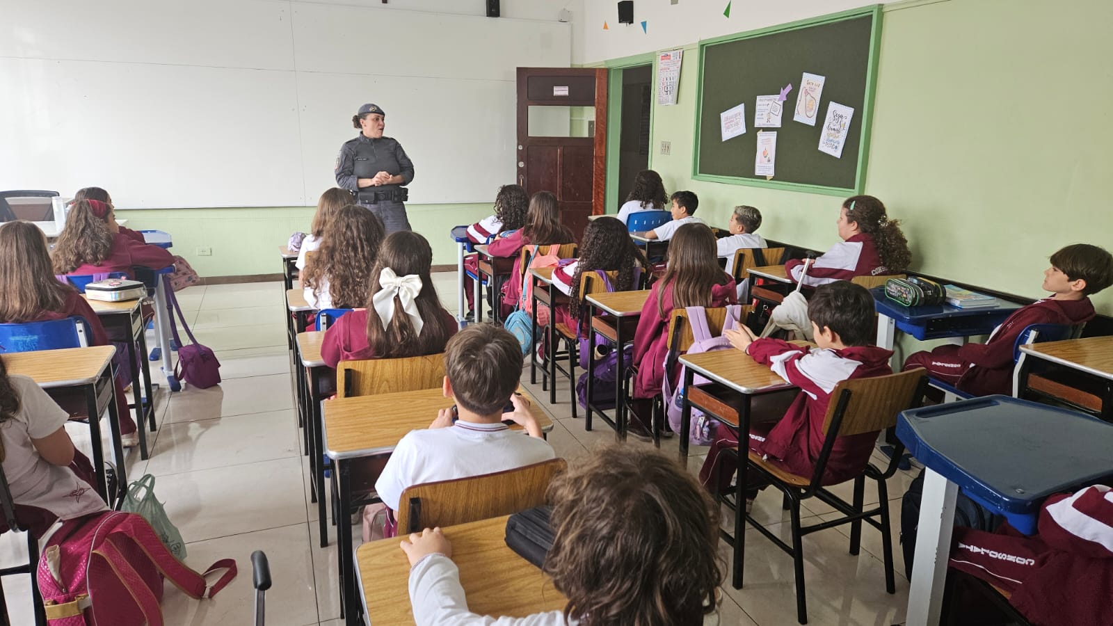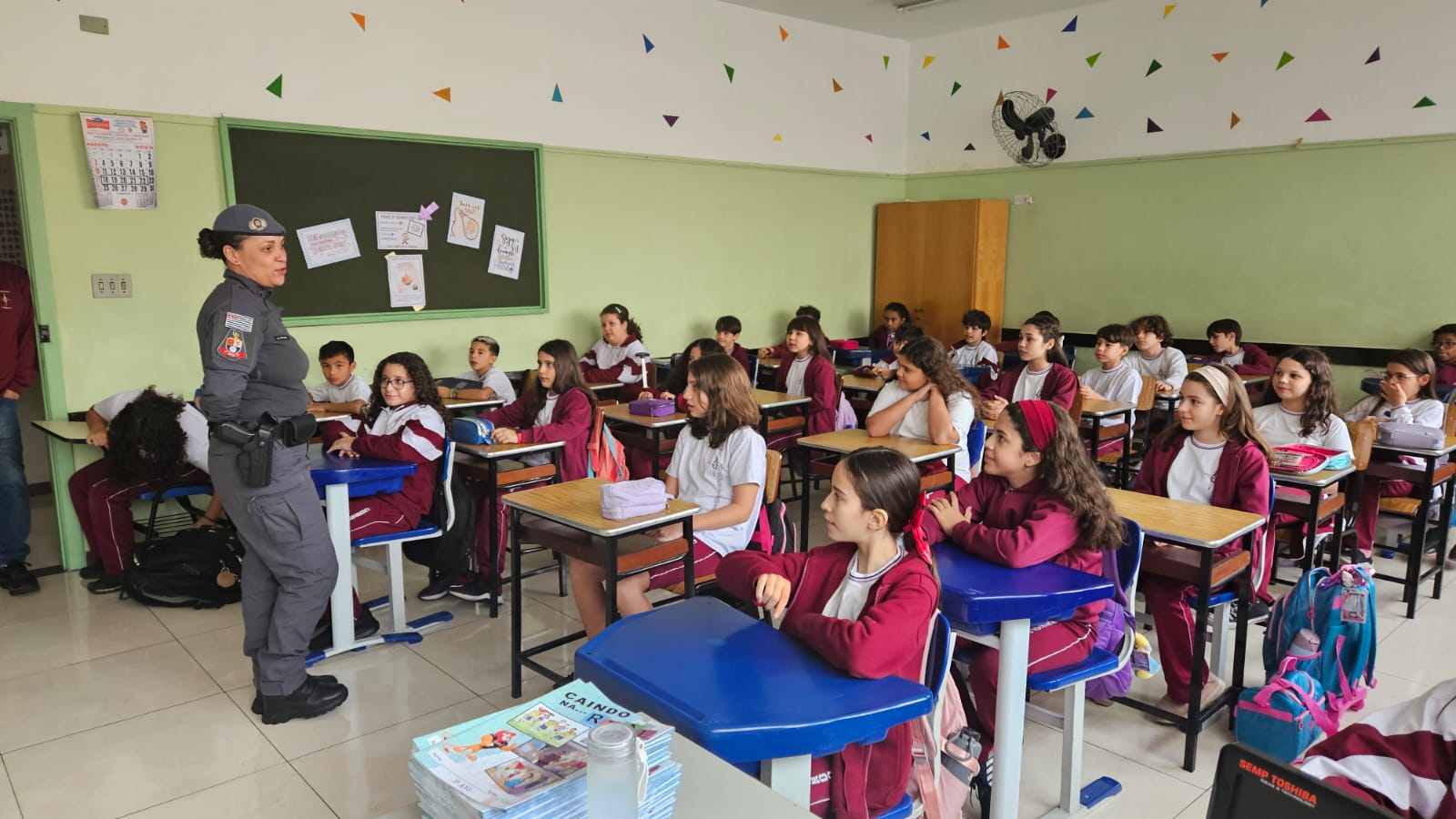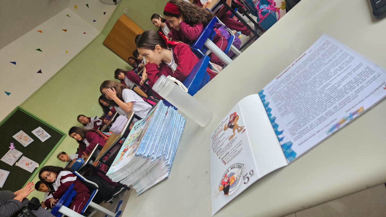 Na primeira aula, nossos alunos dos 5ºs anos foram convidados a embarcar em uma jornada de descobertas, reflexões e valores que transformarão suas escolhas e fortalecerão seus caminhos. Recebemos com carinho a Policial Militar, Soldado Nara Laranjeira, responsável pelo projeto, que já conquistou a turma com sua presença acolhedora e linguagem próxima das crianças.