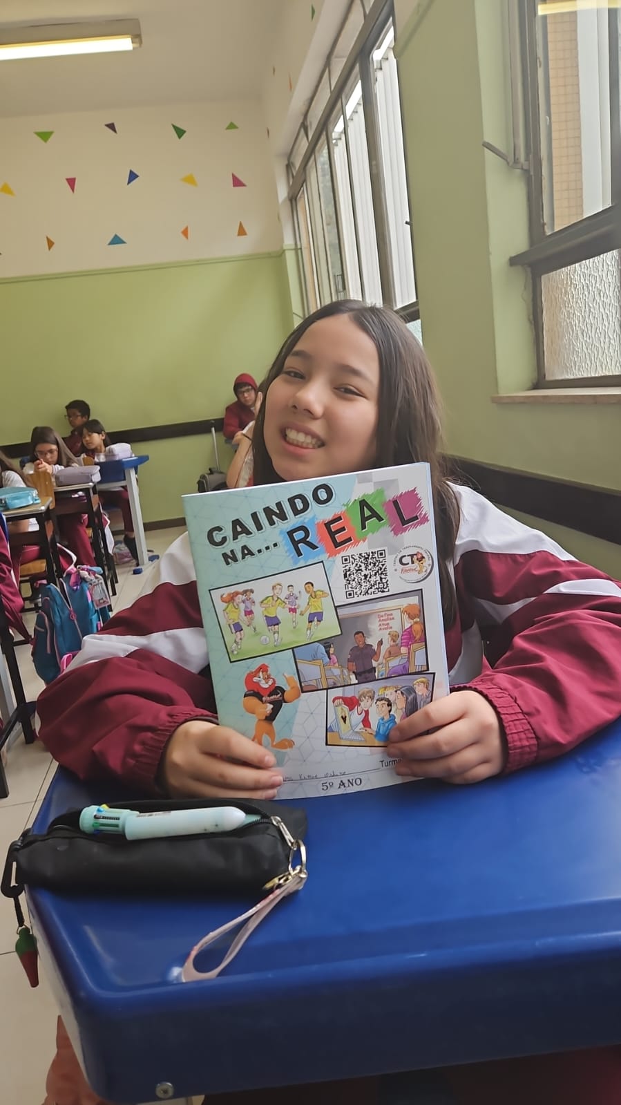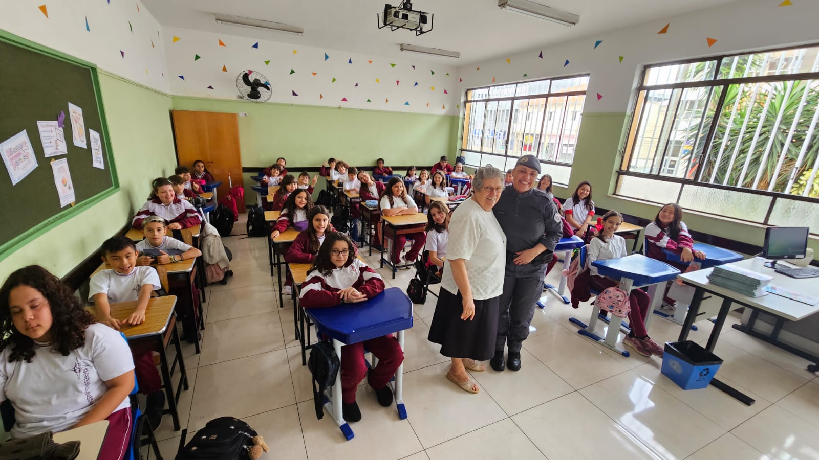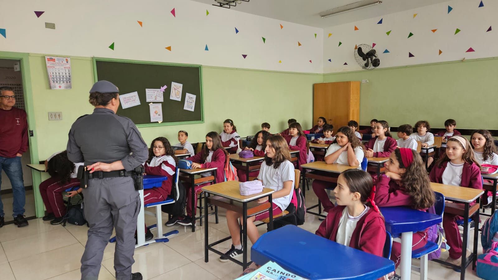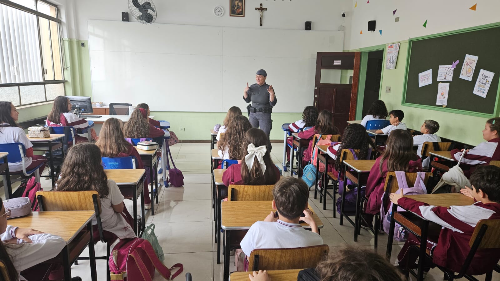 Na primeira aula, nossos alunos dos 5ºs anos foram convidados a embarcar em uma jornada de descobertas, reflexões e valores que transformarão suas escolhas e fortalecerão seus caminhos. Recebemos com carinho a Policial Militar, Soldado Nara Laranjeira, responsável pelo projeto, que já conquistou a turma com sua presença acolhedora e linguagem próxima das crianças.