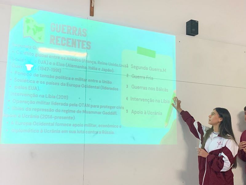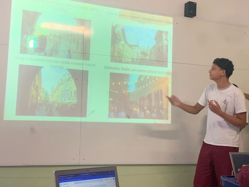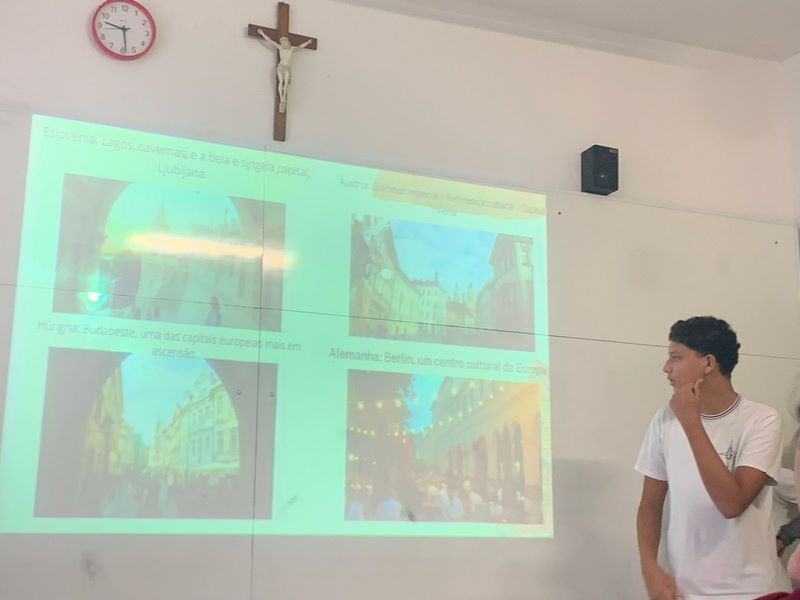 Os estudantes do 9ºA embarcaram em uma jornada pelo Velho Continente sem sair da sala de aula!
