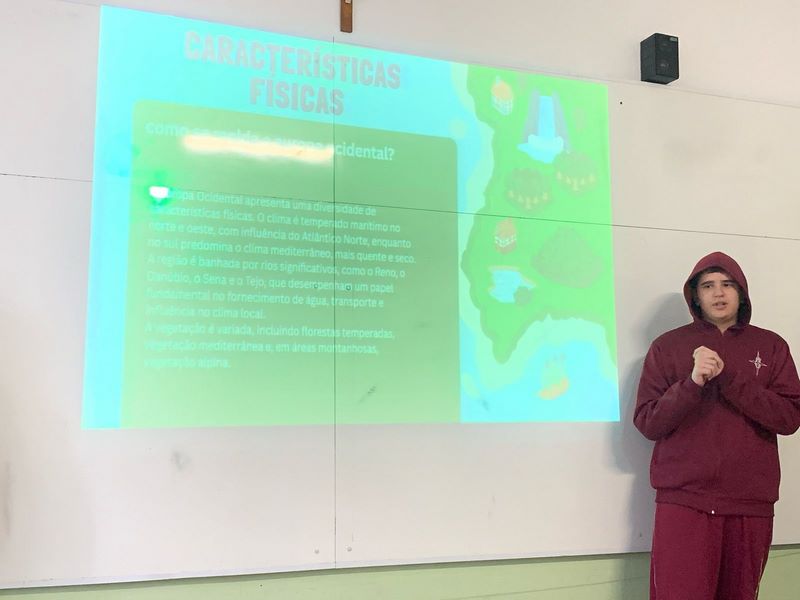 Com seminários criativos e cheios de conteúdo, analisaram as regiões da Europa — Ocidental, Setentrional, Meridional, Oriental e Central — investigando desde os relevos e climas até os países de destaque de cada área.