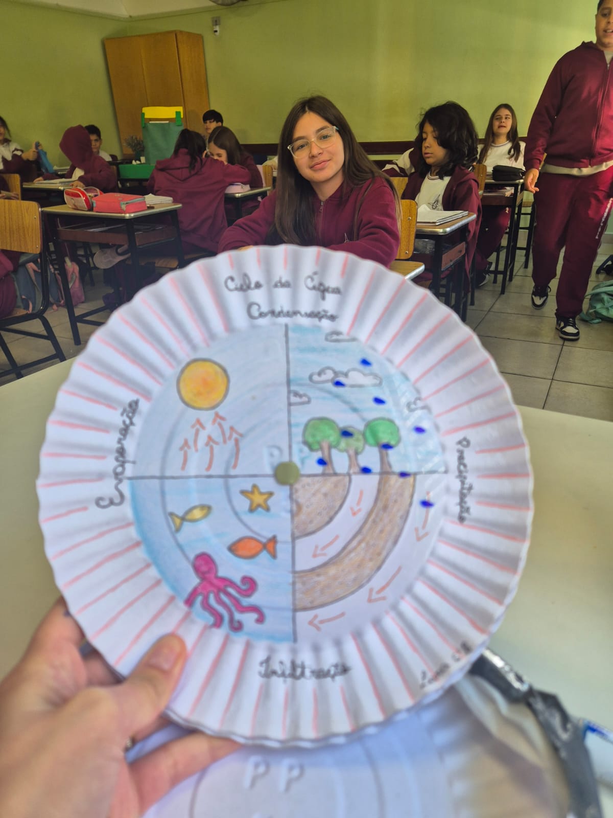 Os alunos do 6º ano, durante a aula de Ciências com a professora Giovana, participaram de uma atividade especial e criativa para compreender o ciclo da água de maneira prática e divertida.