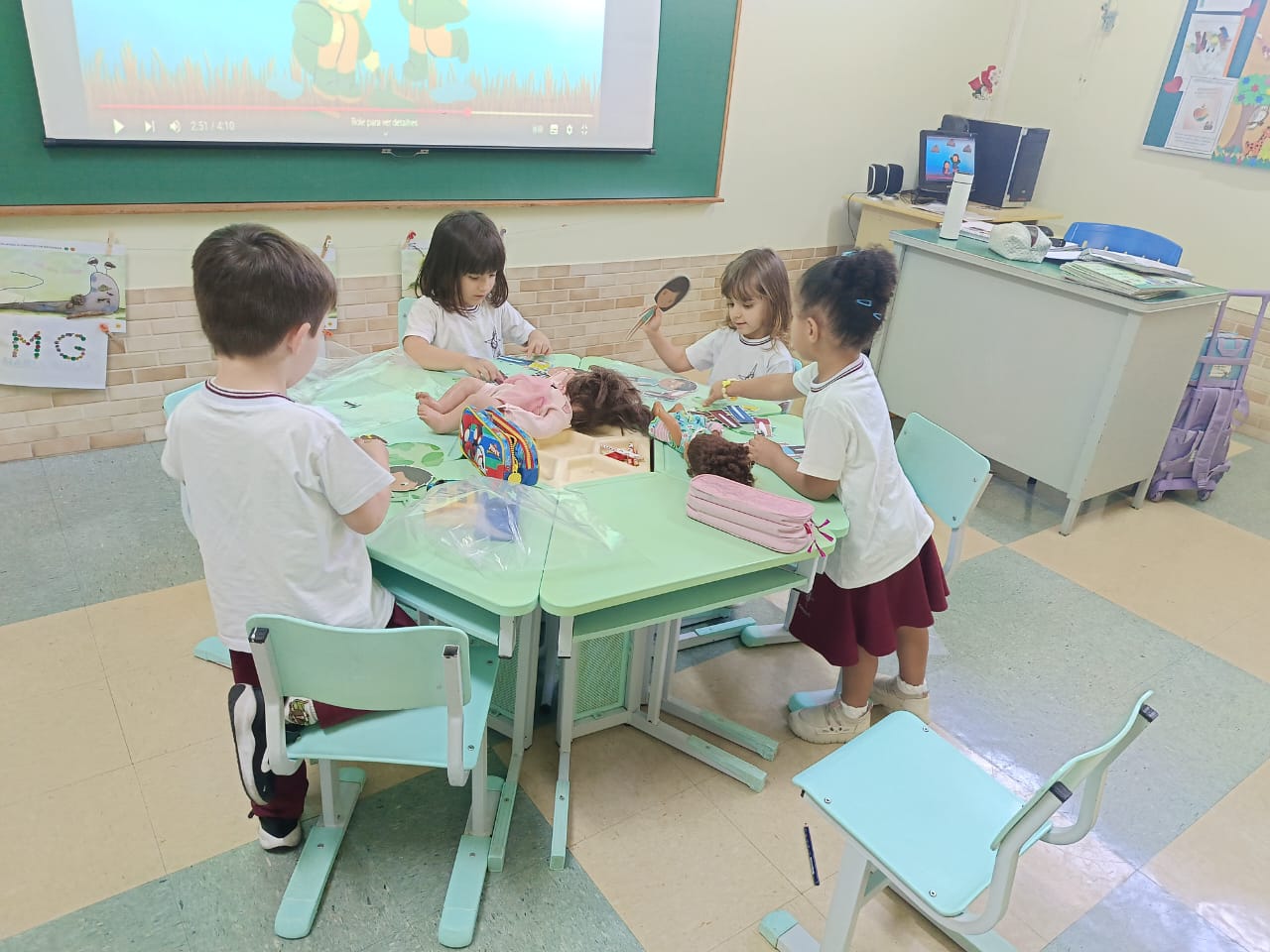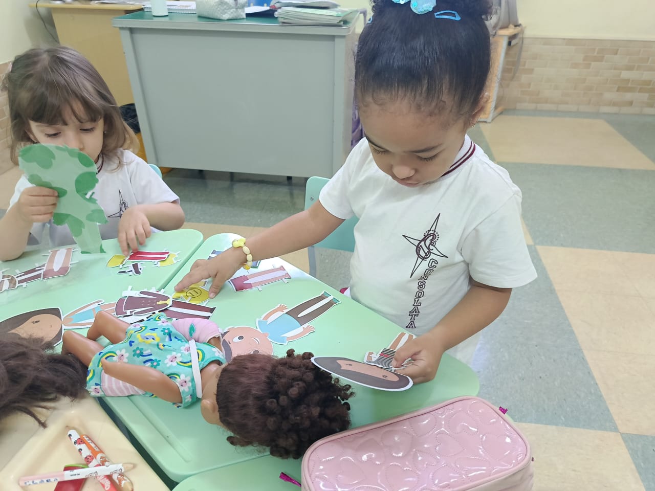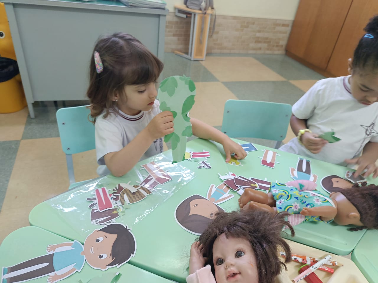 Os pequenos conheceram melhor os aspectos das 4 estações do ano, suas características e o tipo de vestimenta adequada para cada uma. Utilizaram os bonecos e suas roupas para mostrarem tudo que aprenderam.
