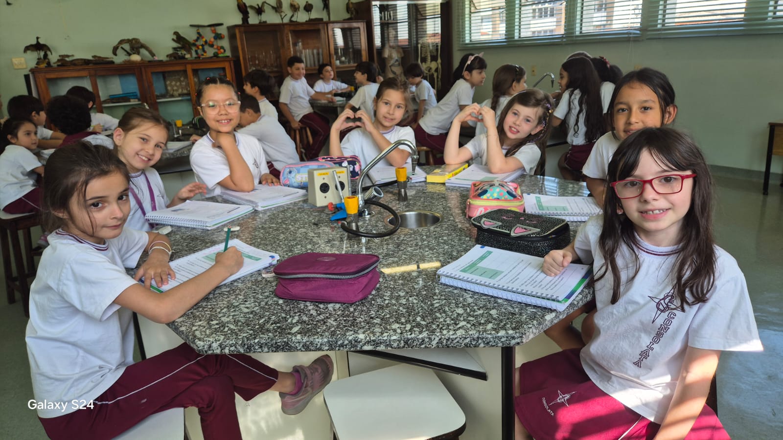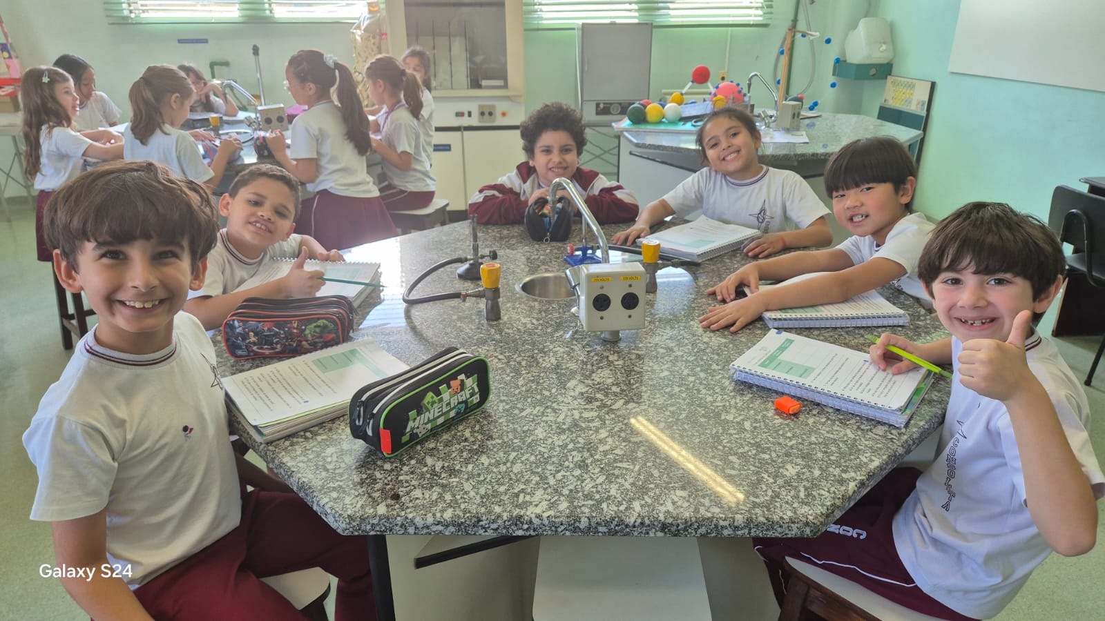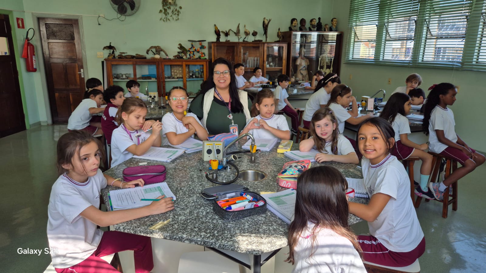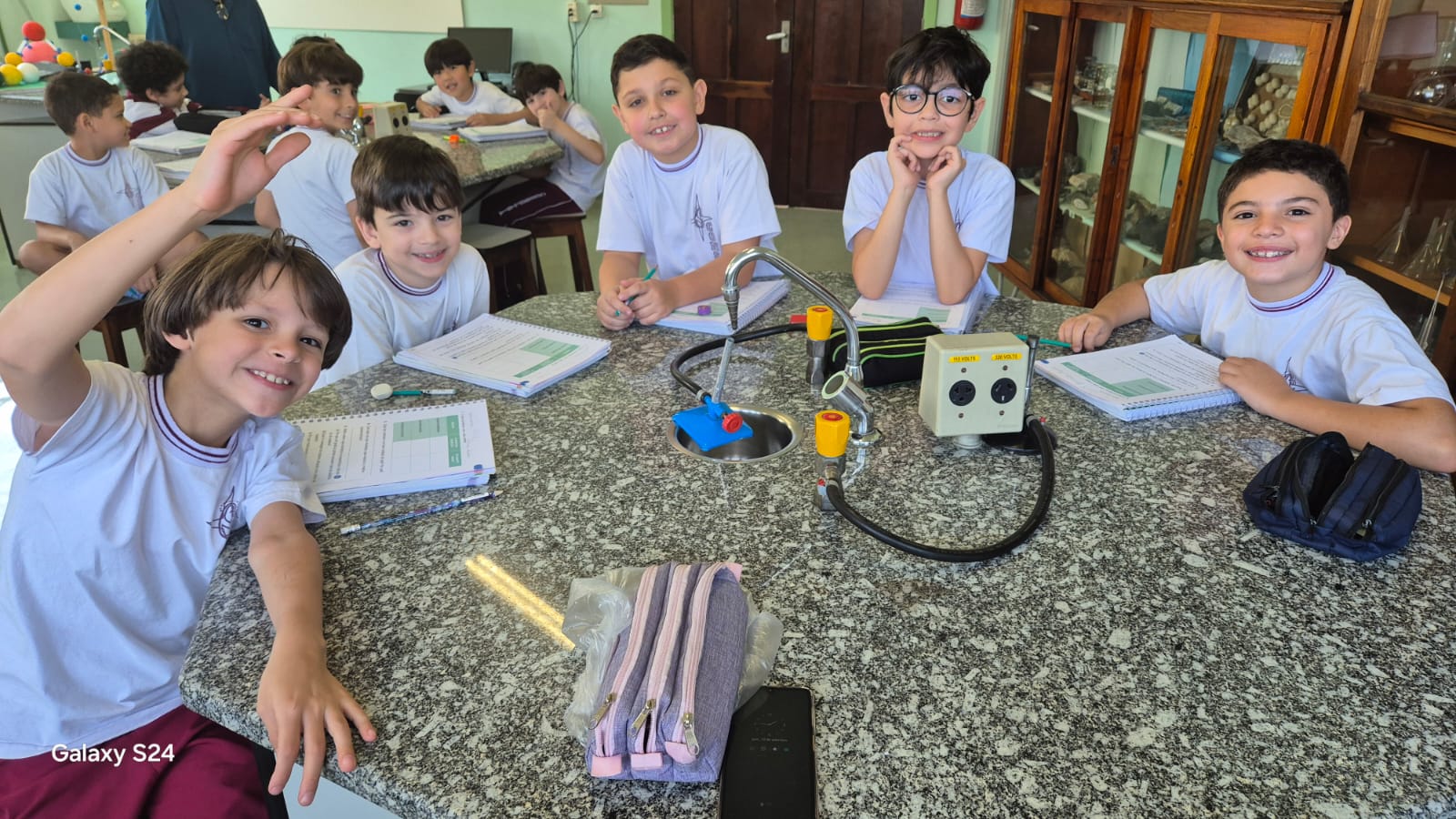 Os alunos dos 2° anos A - B realizaram uma visita ao laboratório de Ciências para vivenciar, na prática, a experiência sobre condutores de calor.