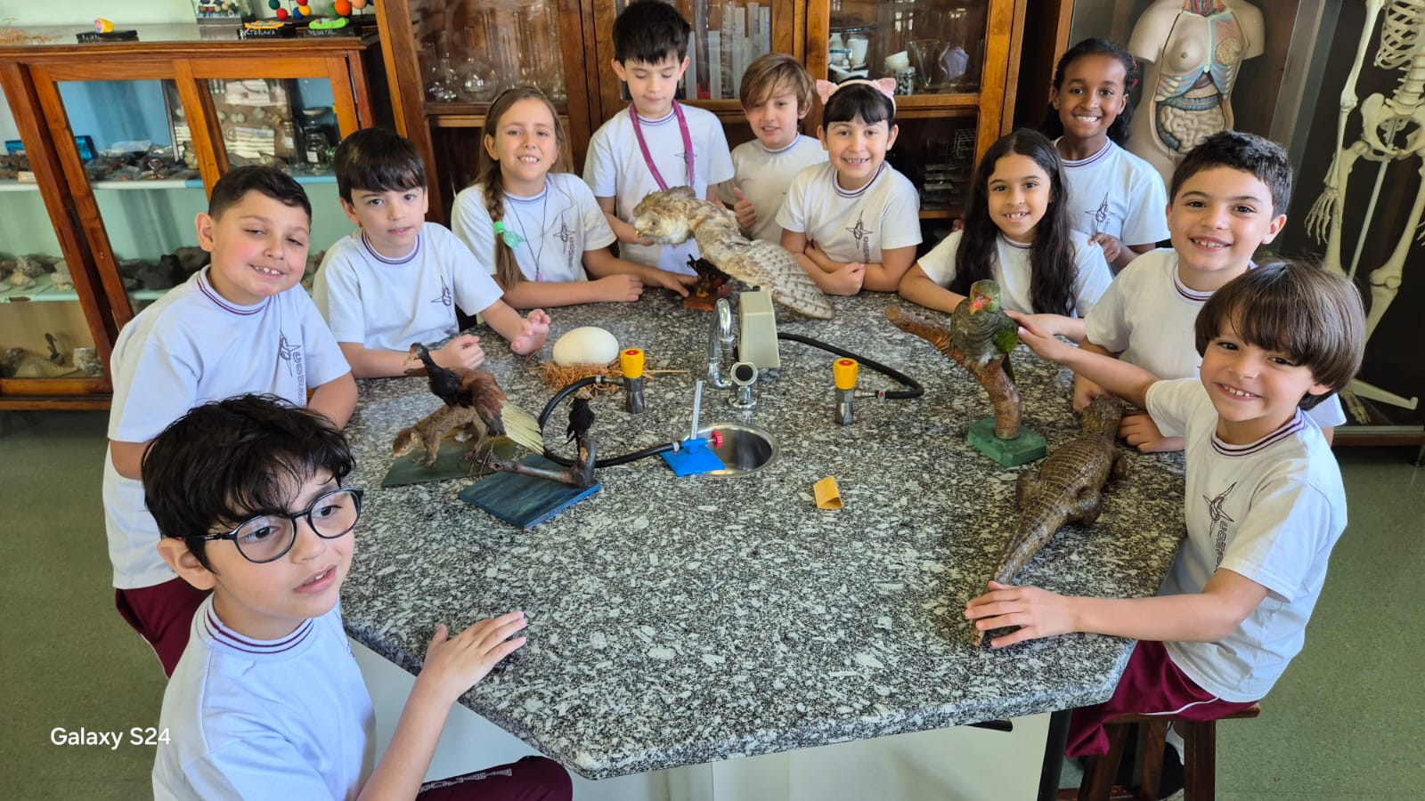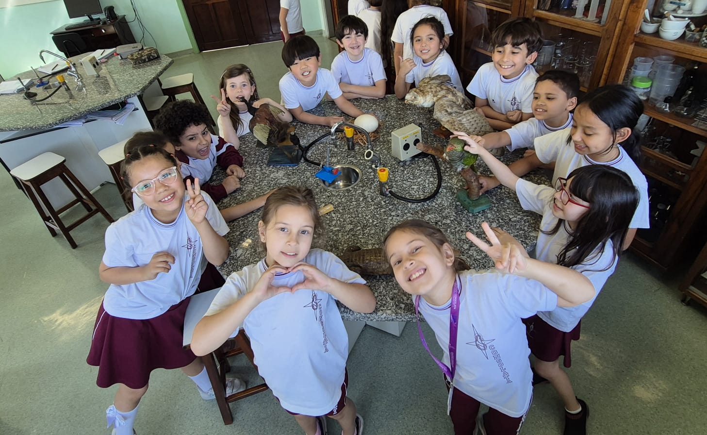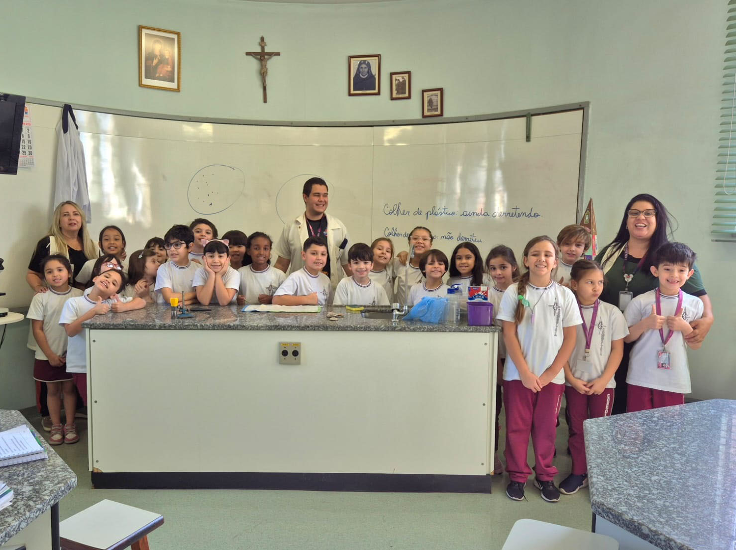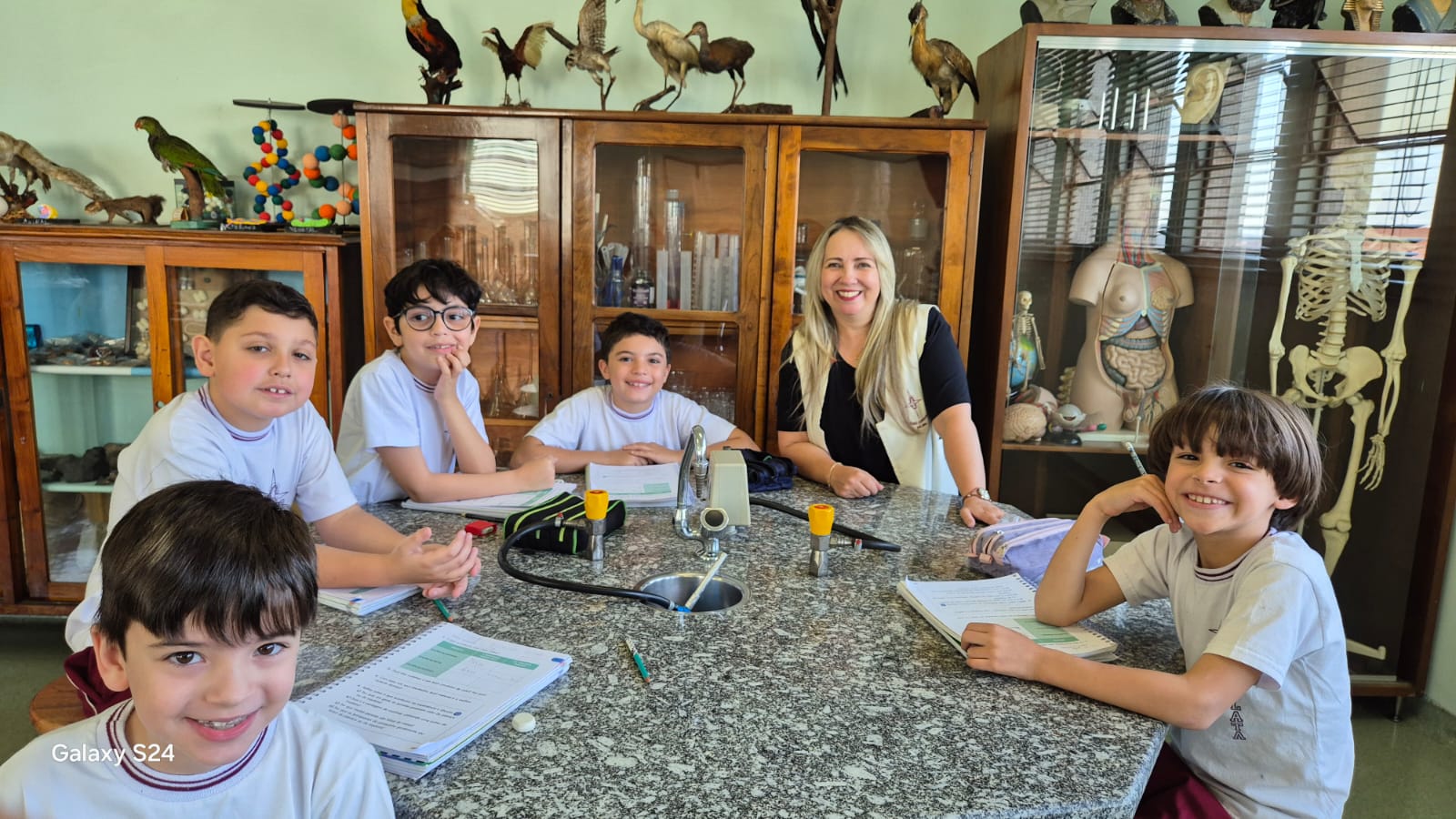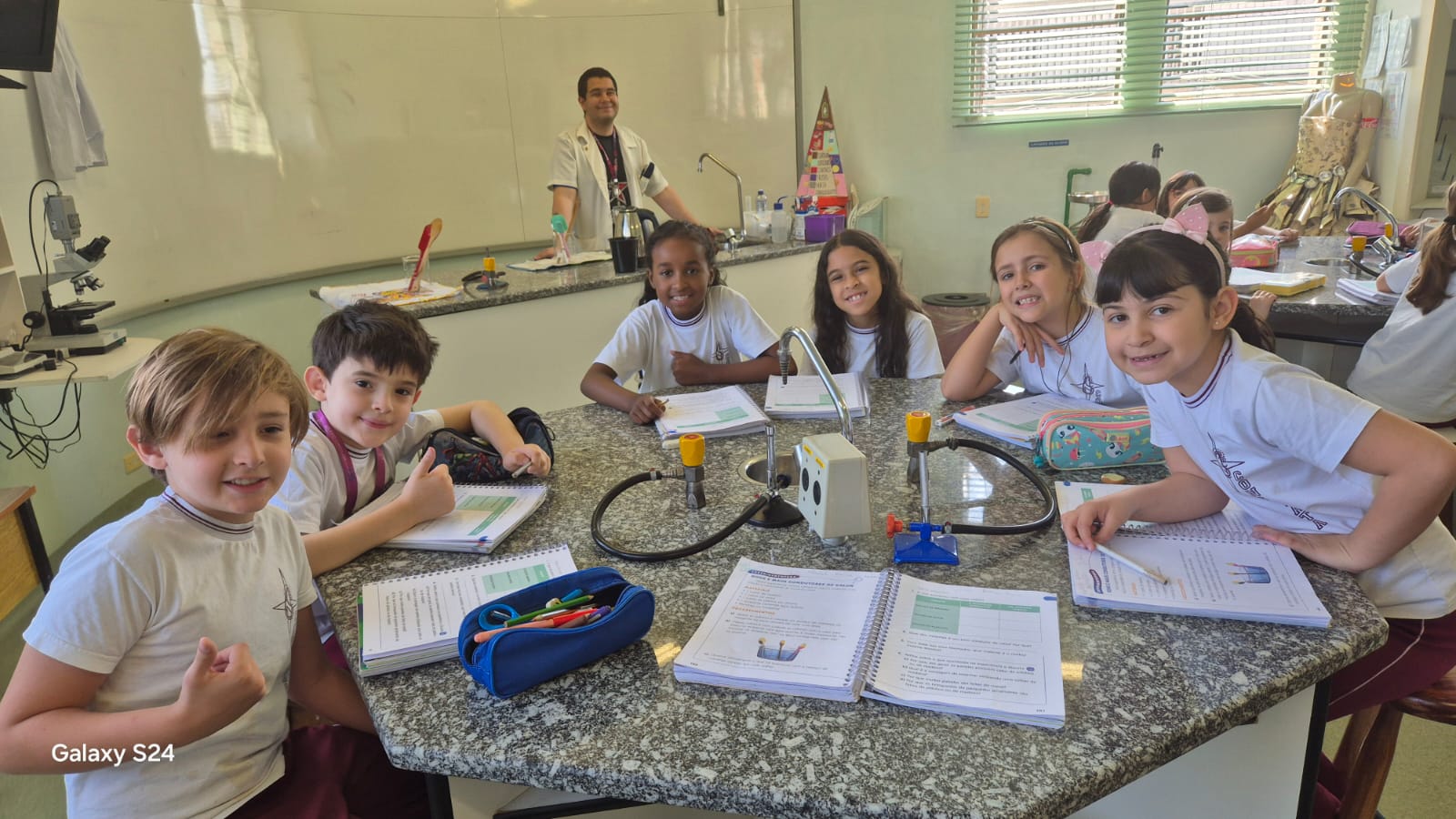Os alunos dos 2° anos A - B realizaram uma visita ao laboratório de Ciências para vivenciar, na prática, a experiência sobre condutores de calor.