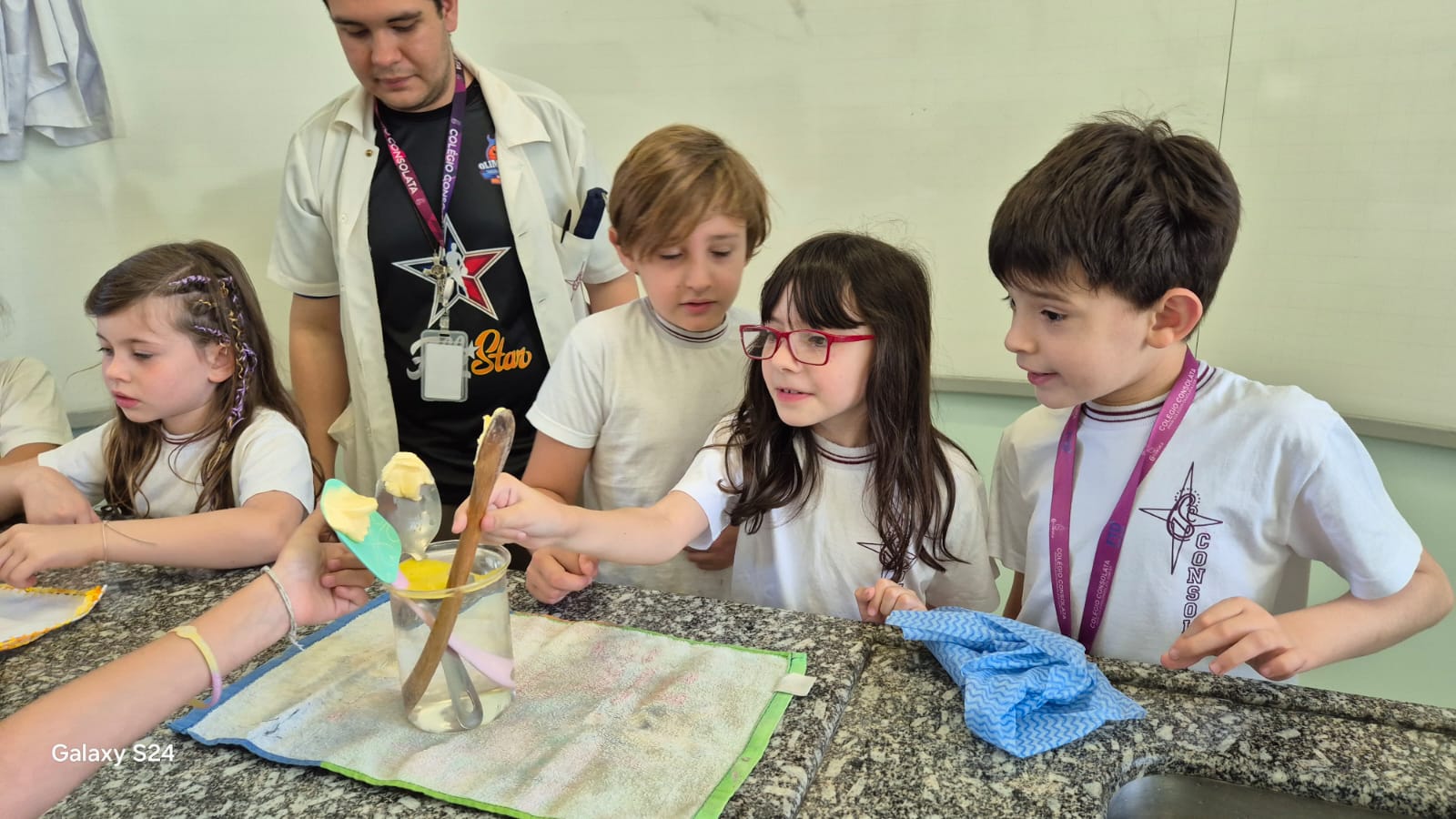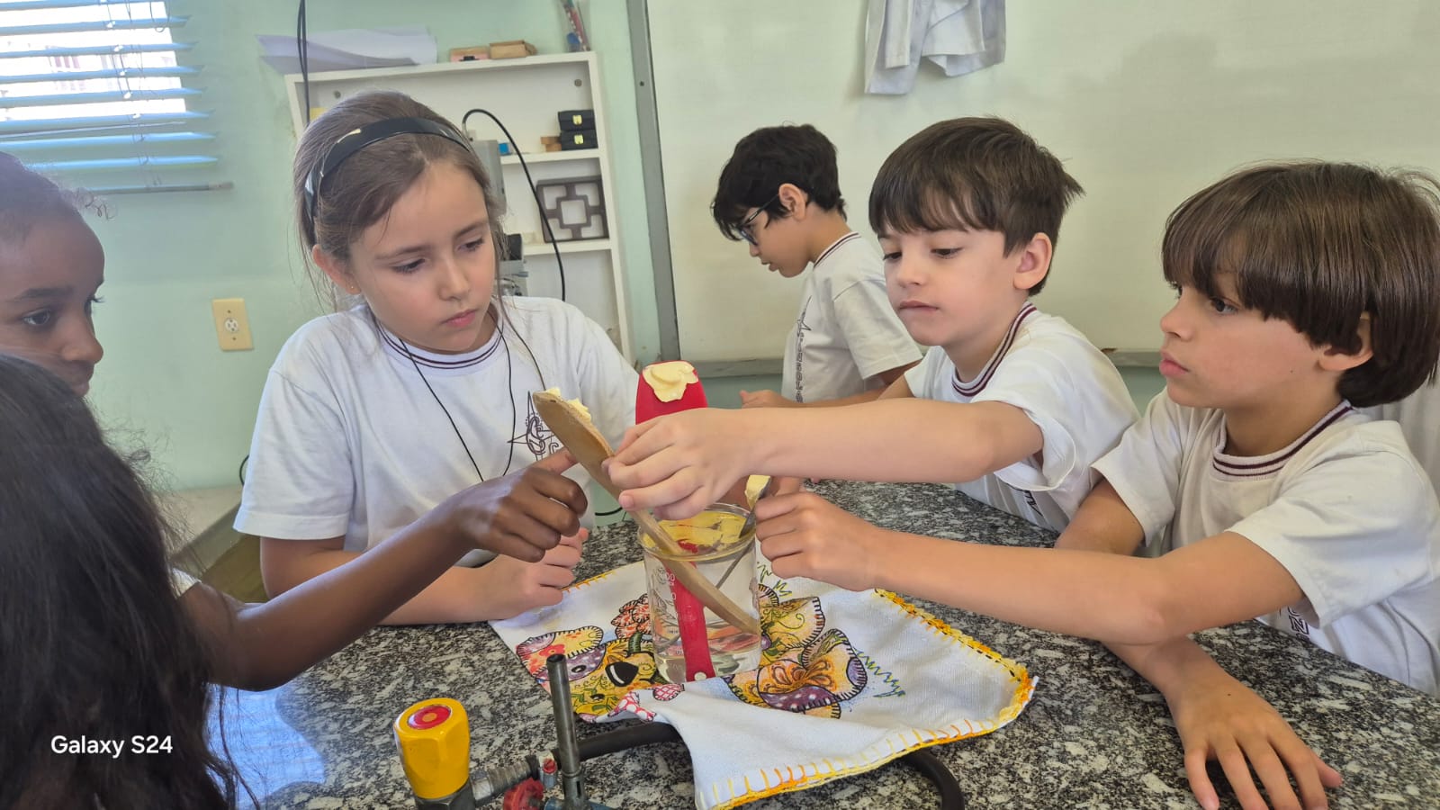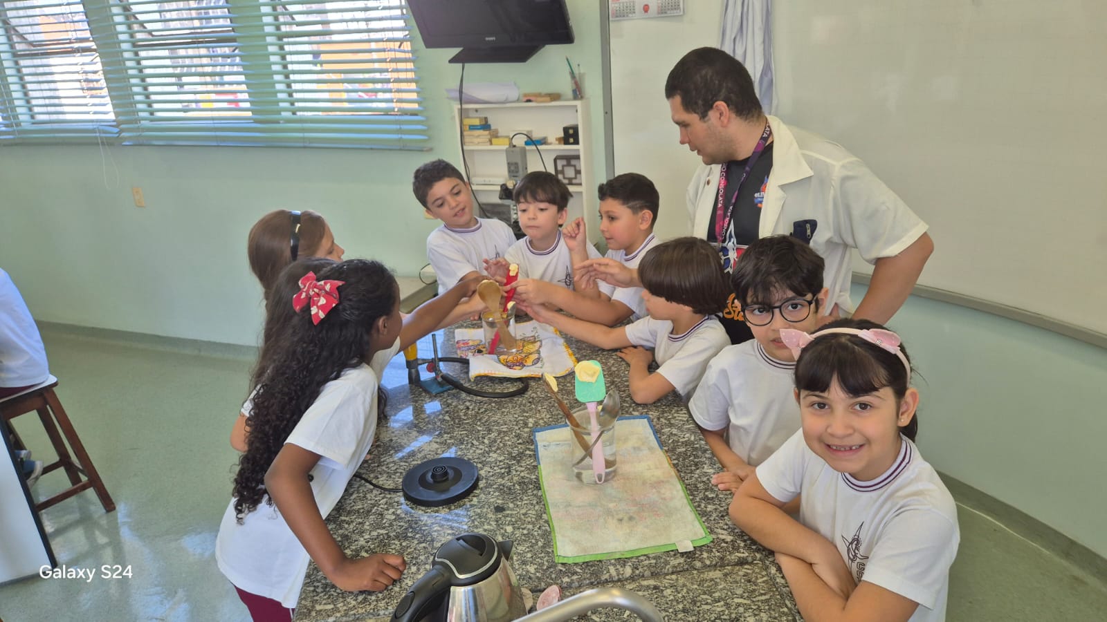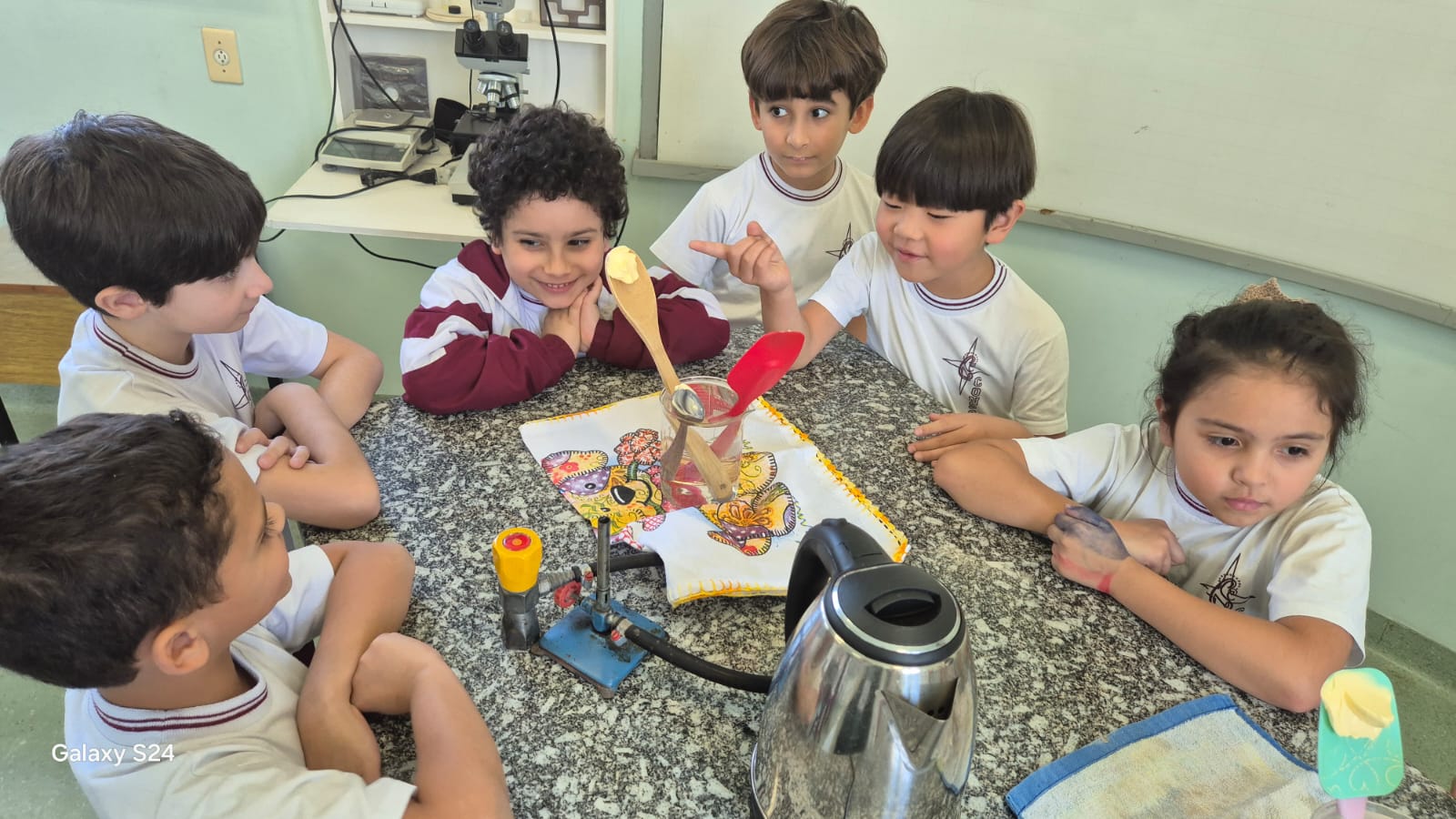 Durante a atividade, observaram como diferentes materiais reagem ao calor, descobrindo quais conduzem e quais não conduzem. A experiência despertou a curiosidade, estimulou a investigação e tornou o aprendizado mais significativo e divertido.
