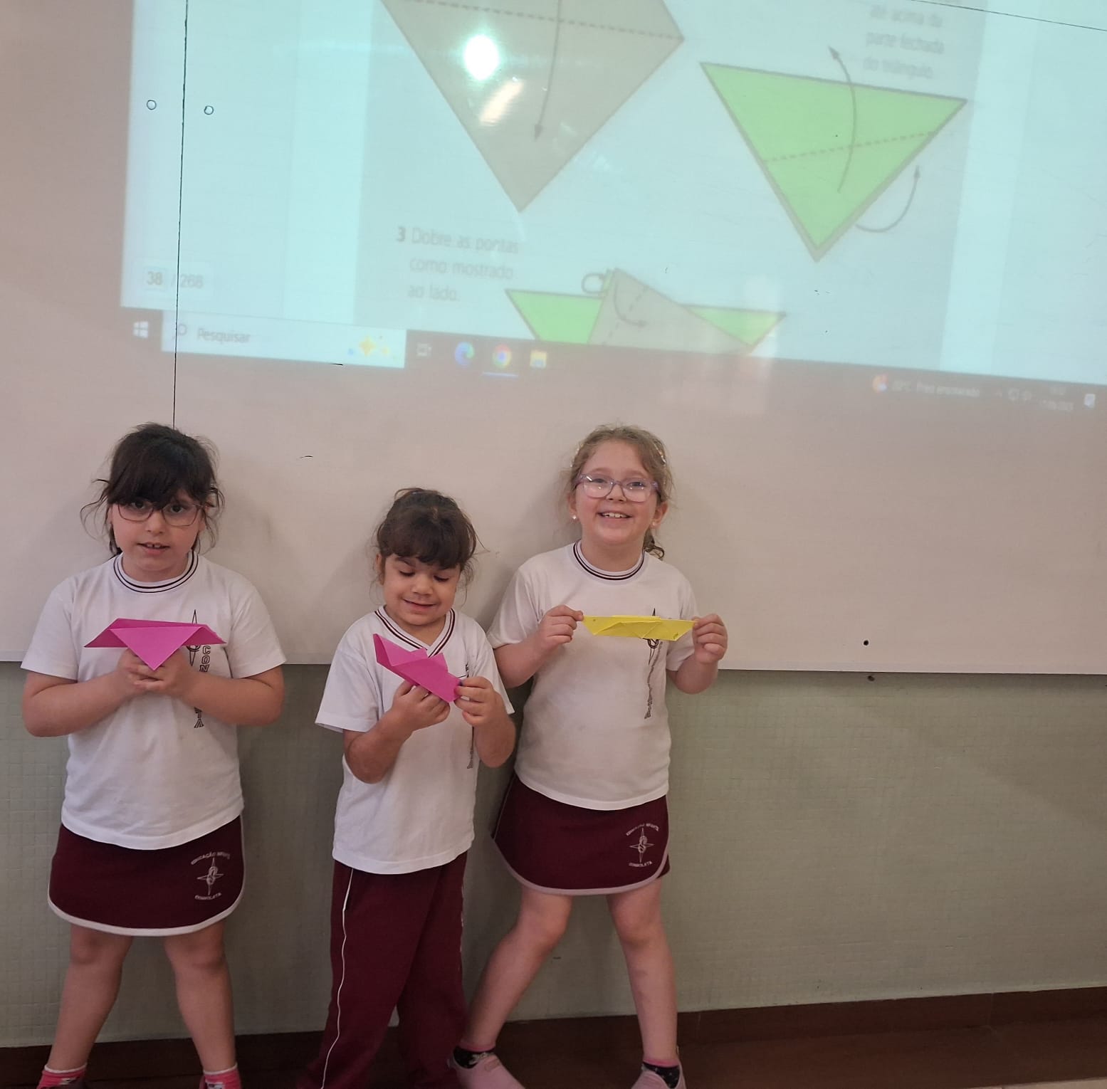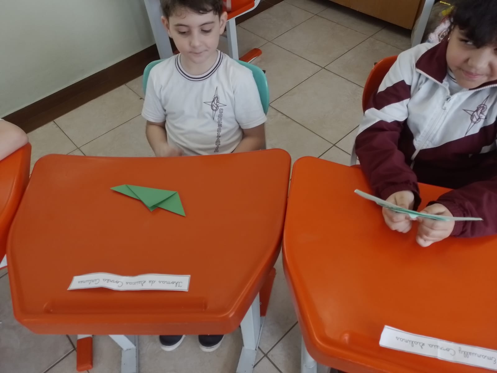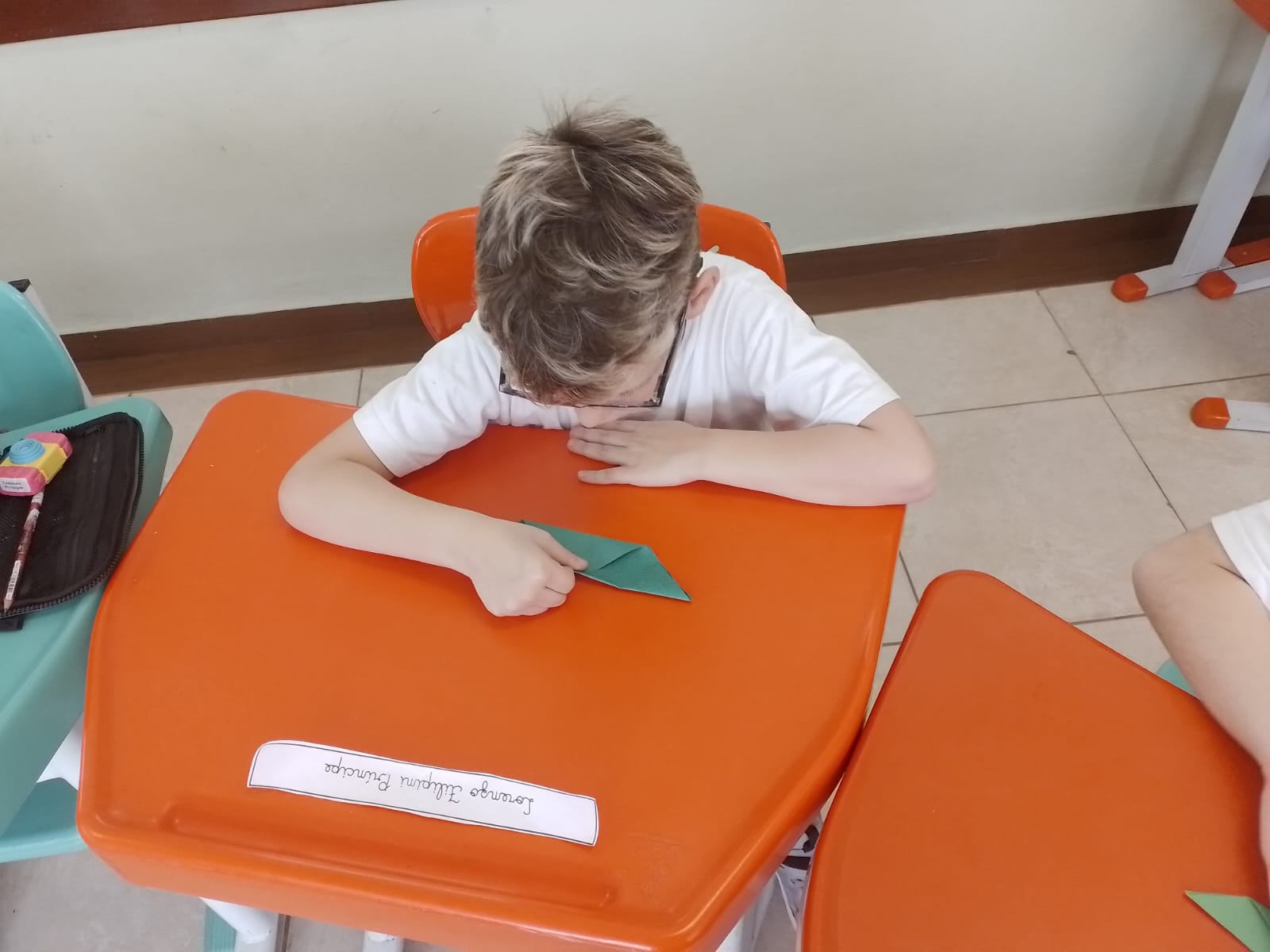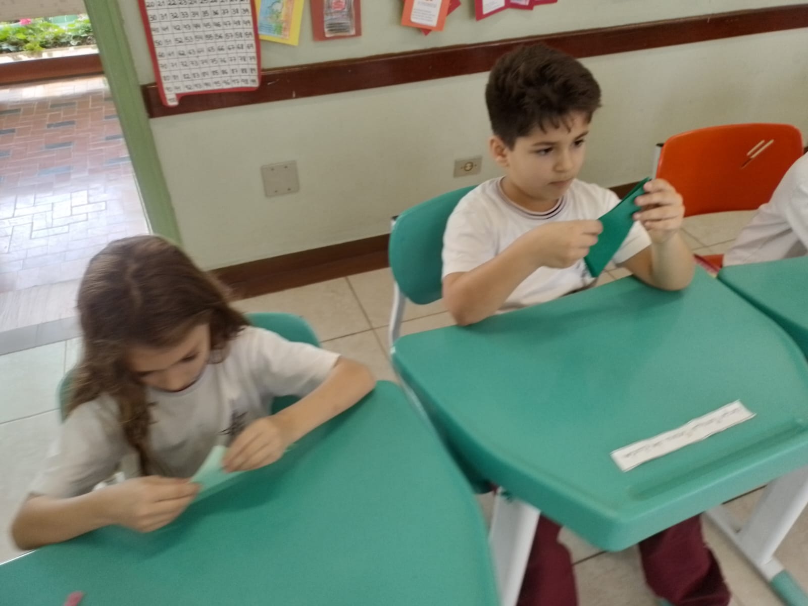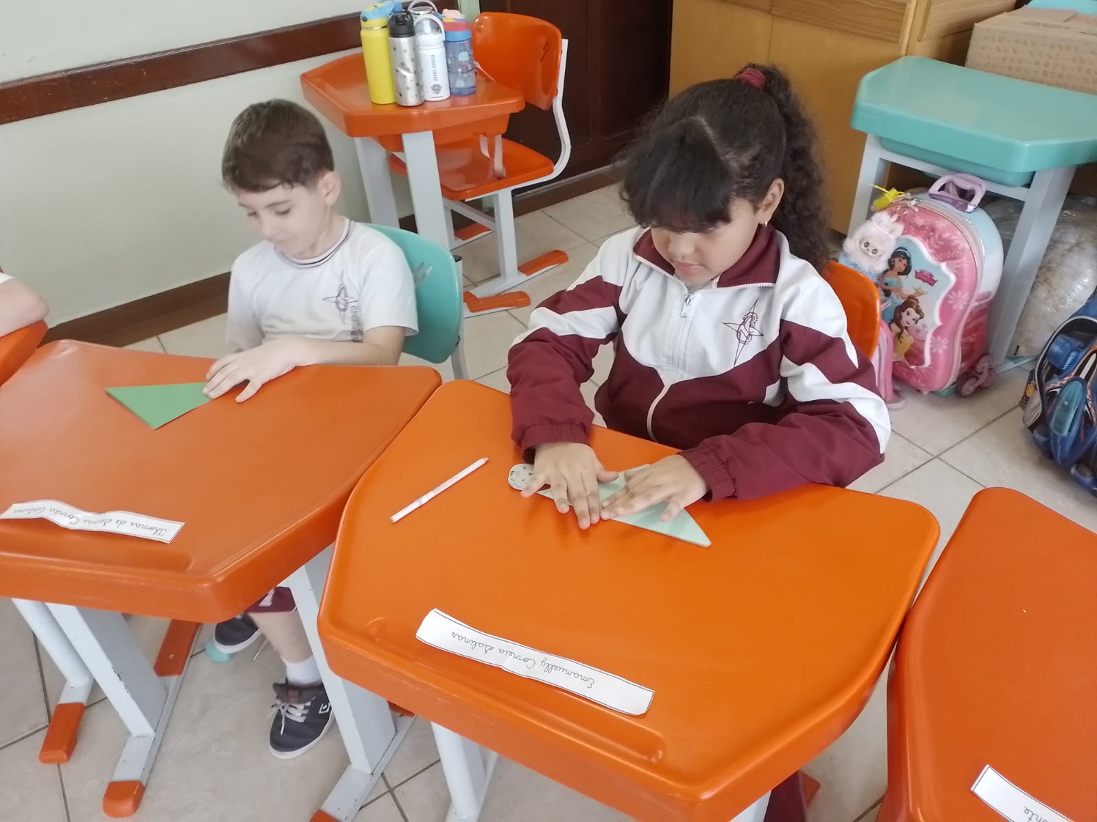 Após a análise e interpretação da história, confeccionaram a dobradura do personagem principal: o gafanhoto.