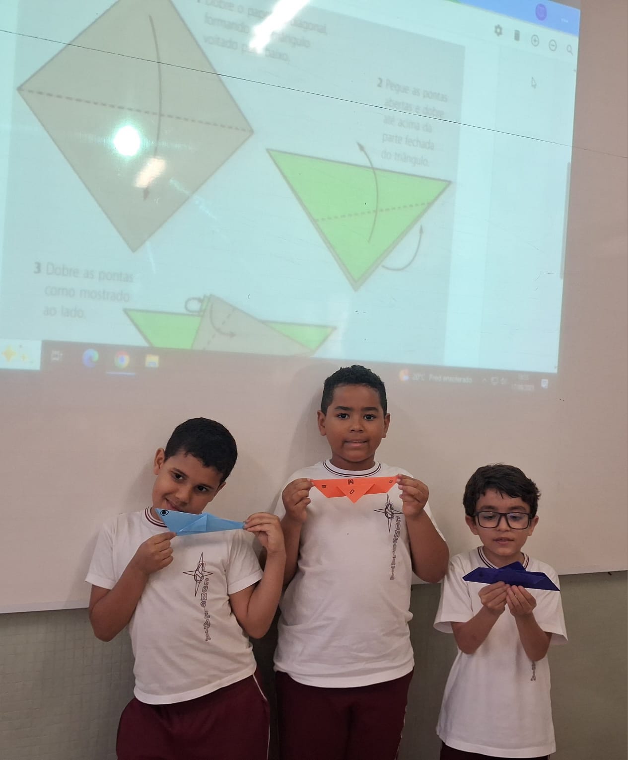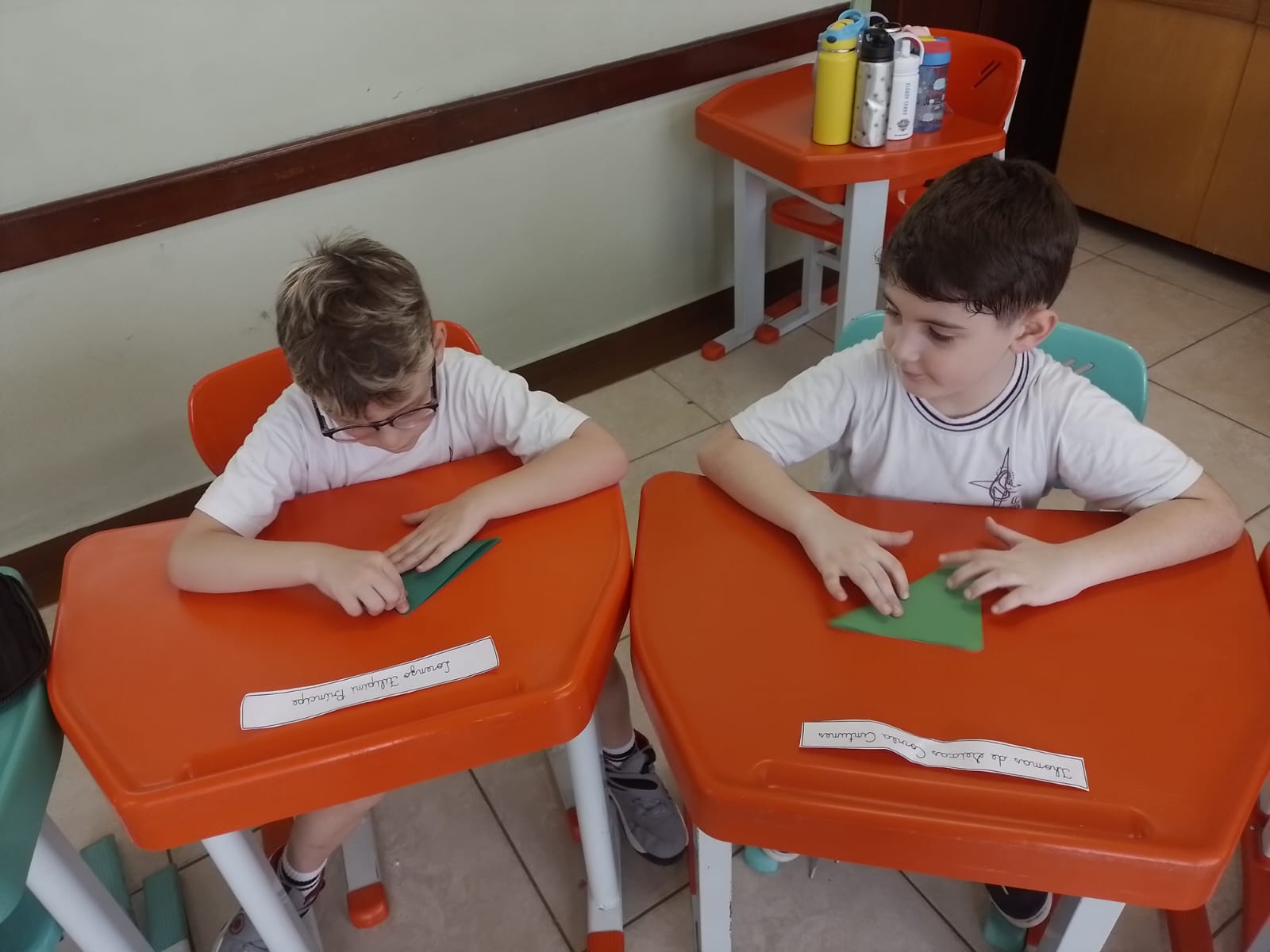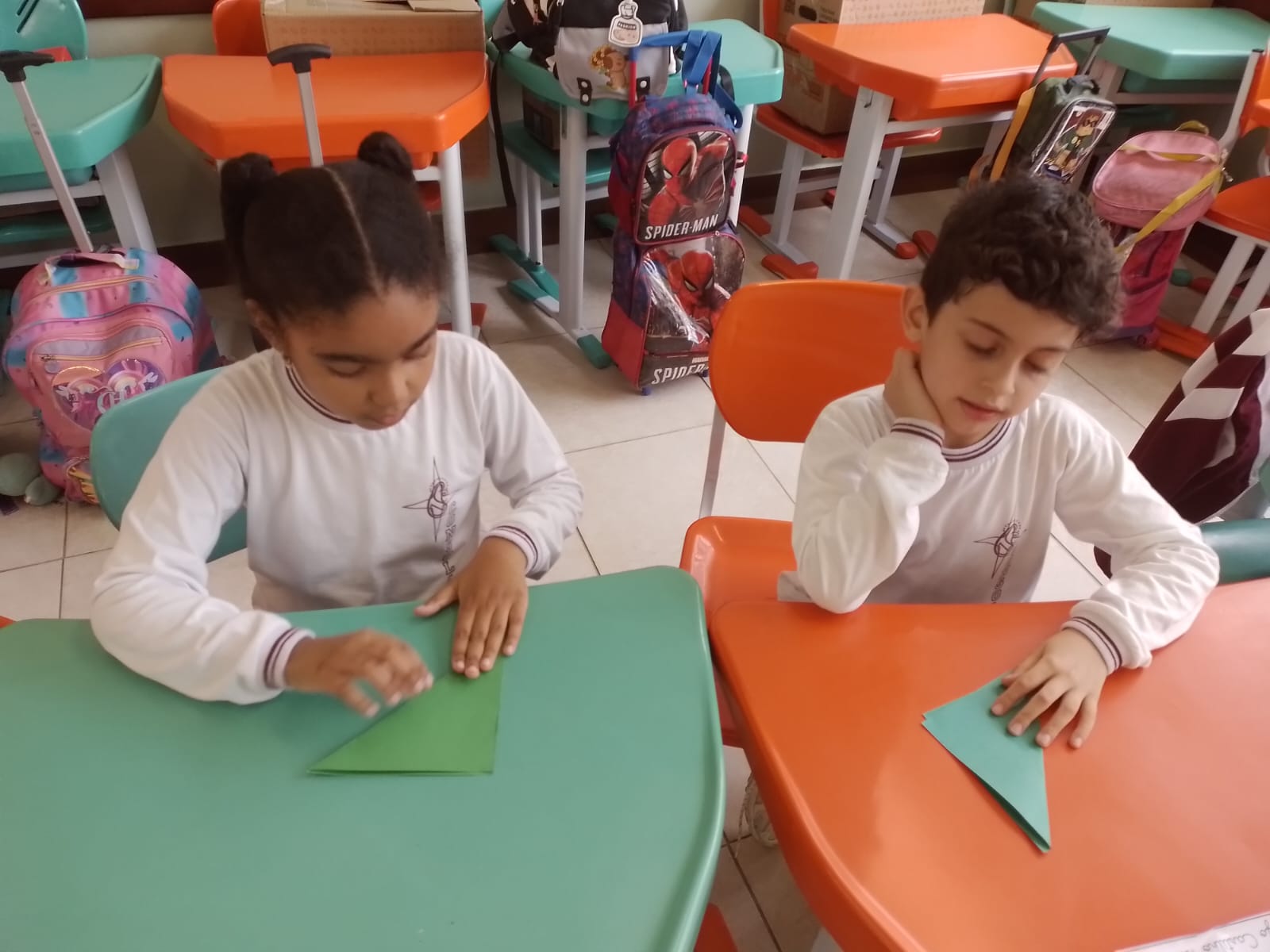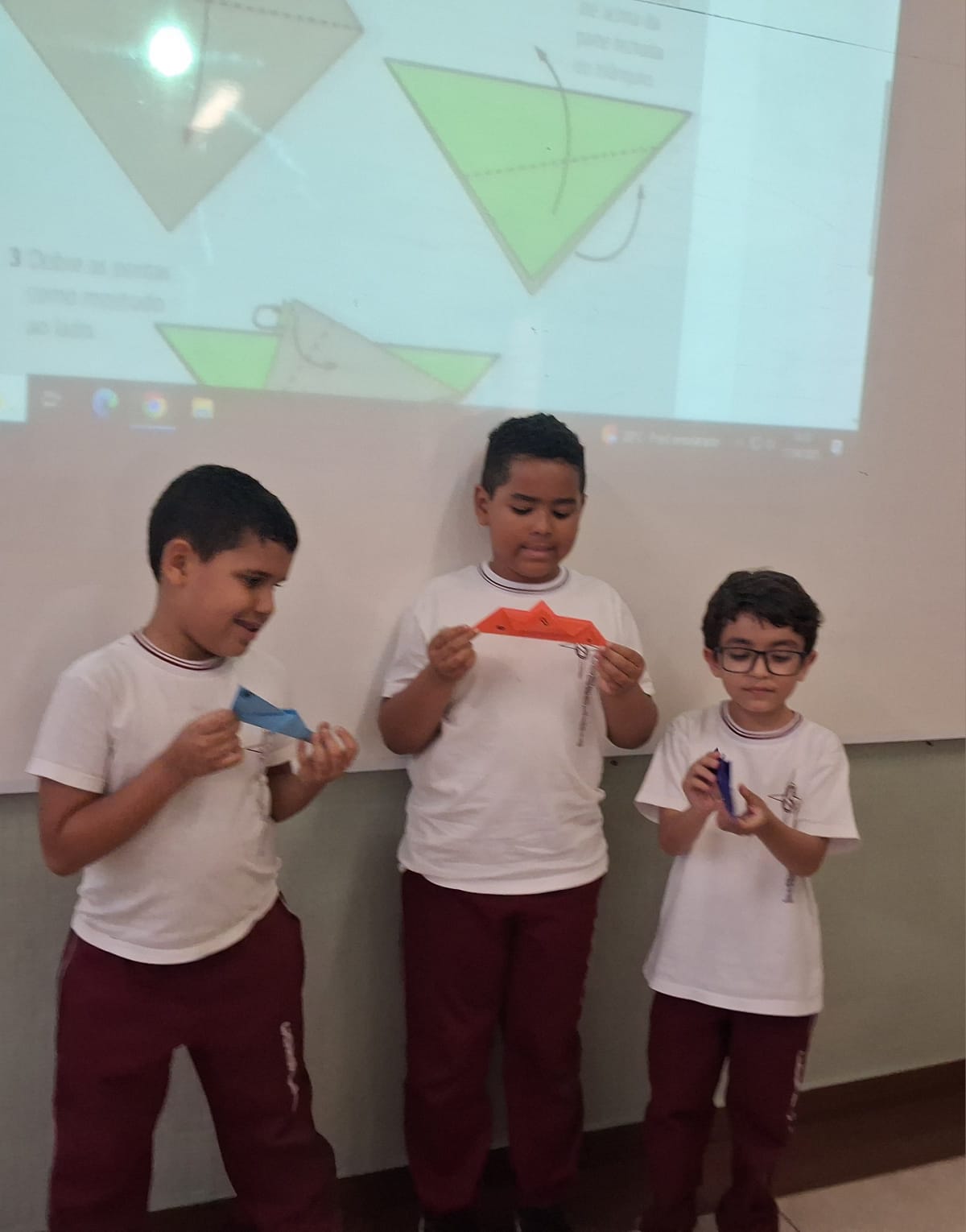 Após a análise e interpretação da história, confeccionaram a dobradura do personagem principal: o gafanhoto.