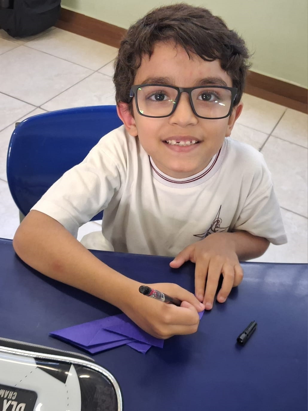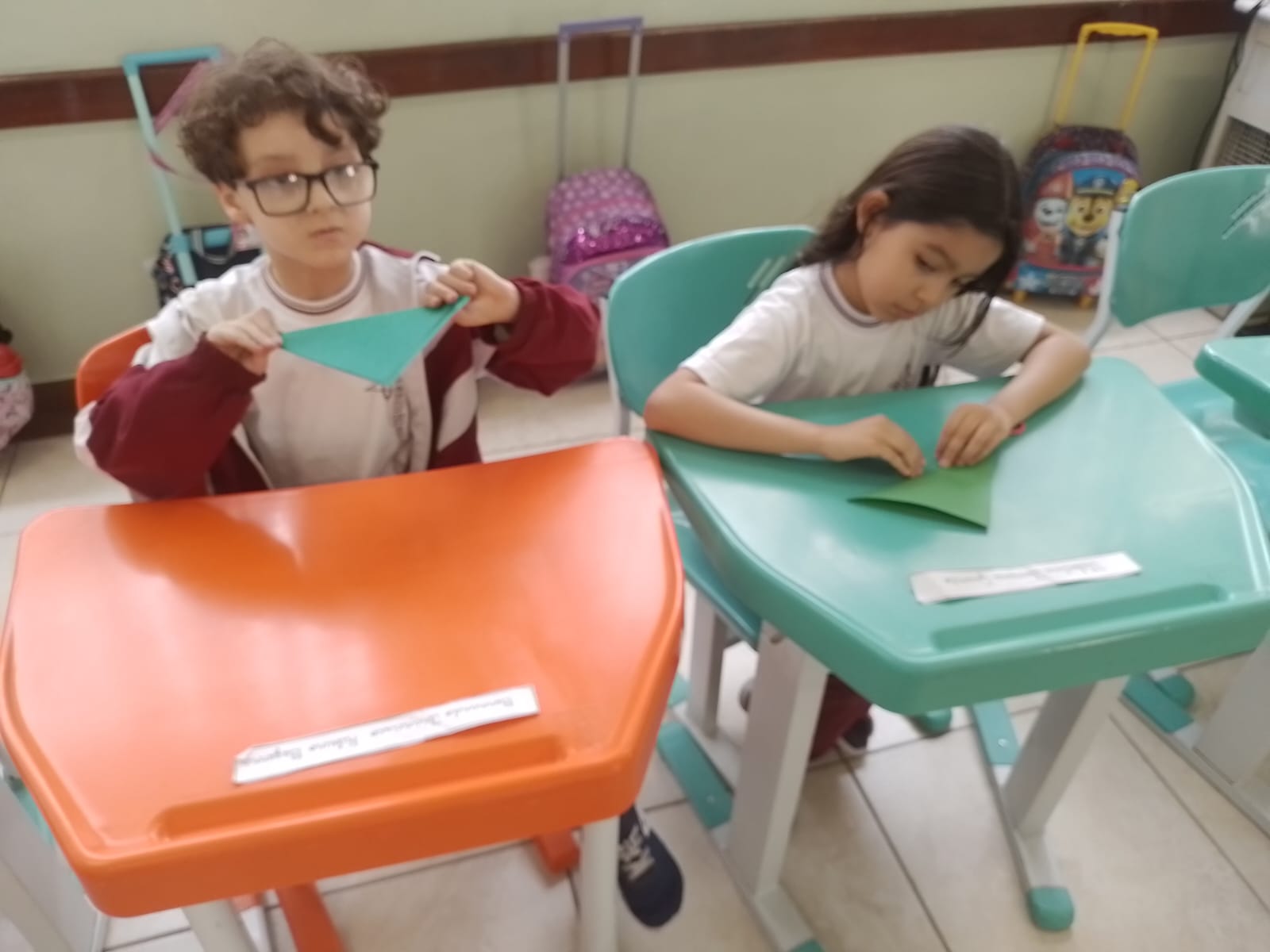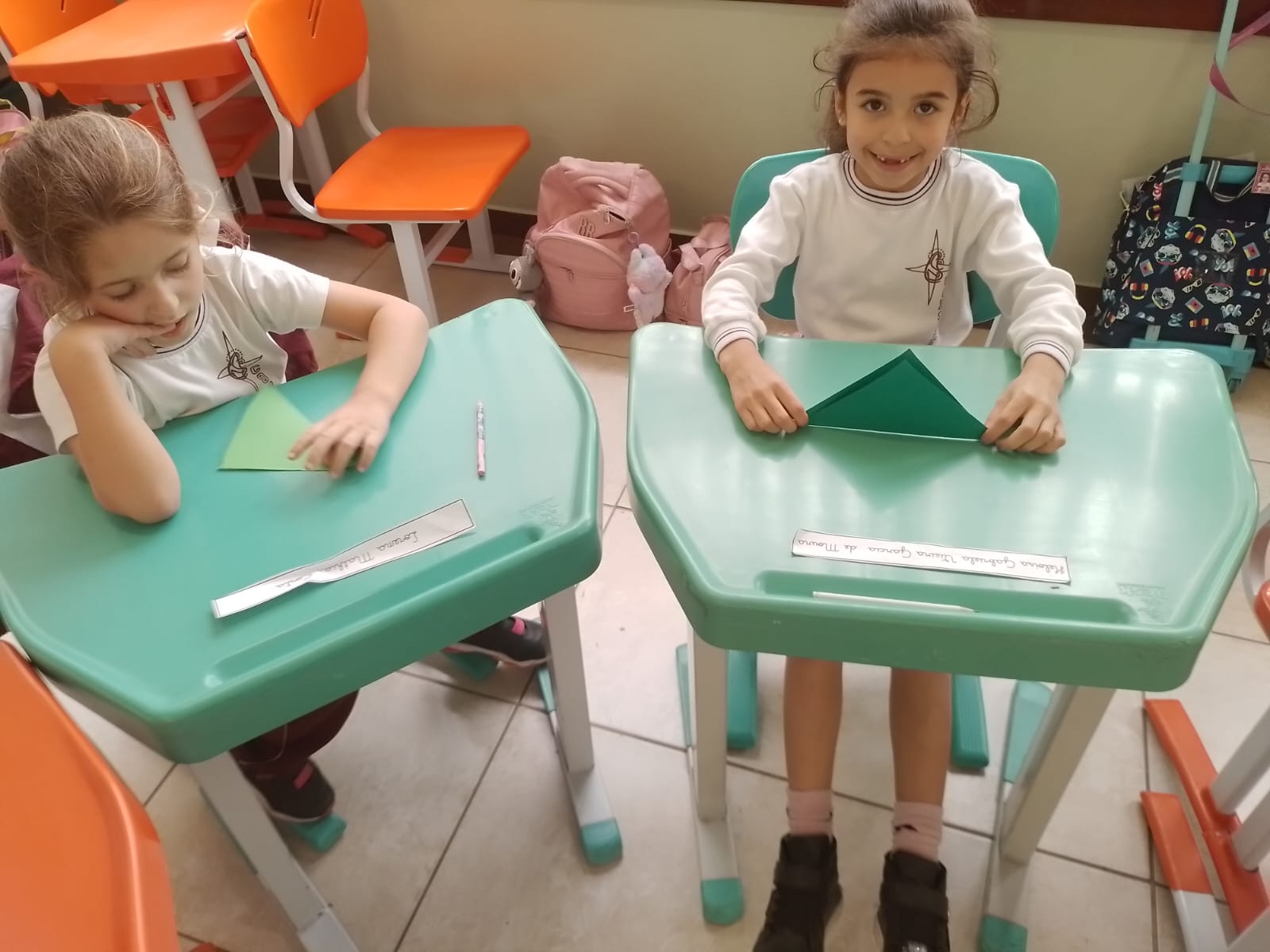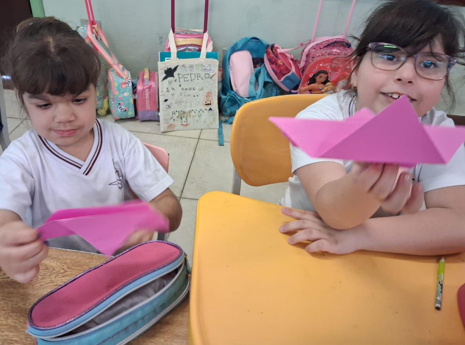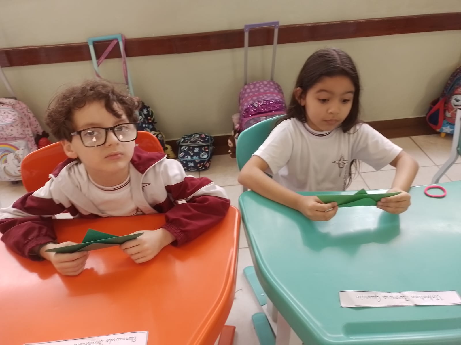 Após a análise e interpretação da história, confeccionaram a dobradura do personagem principal: o gafanhoto.