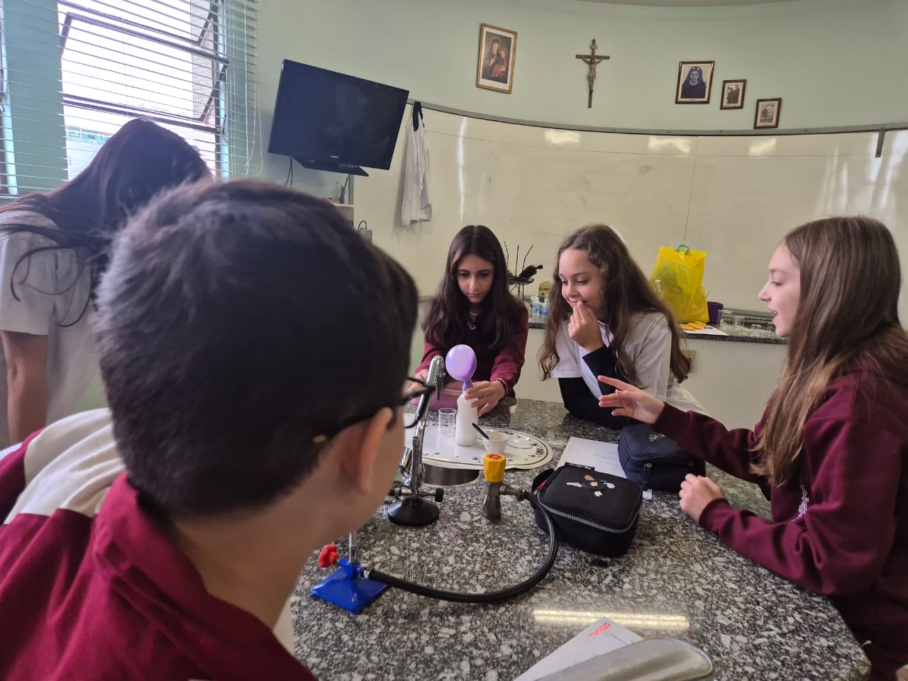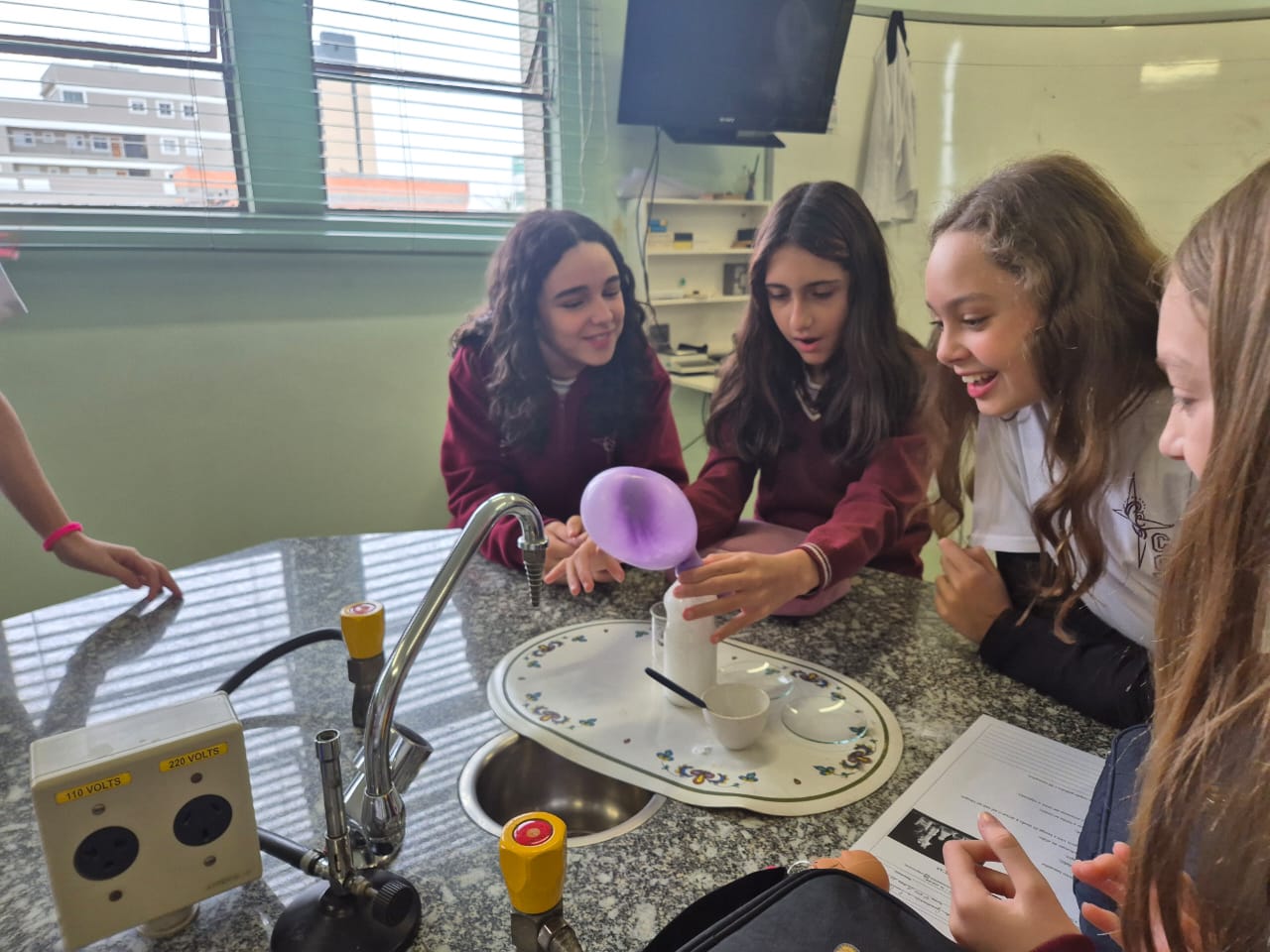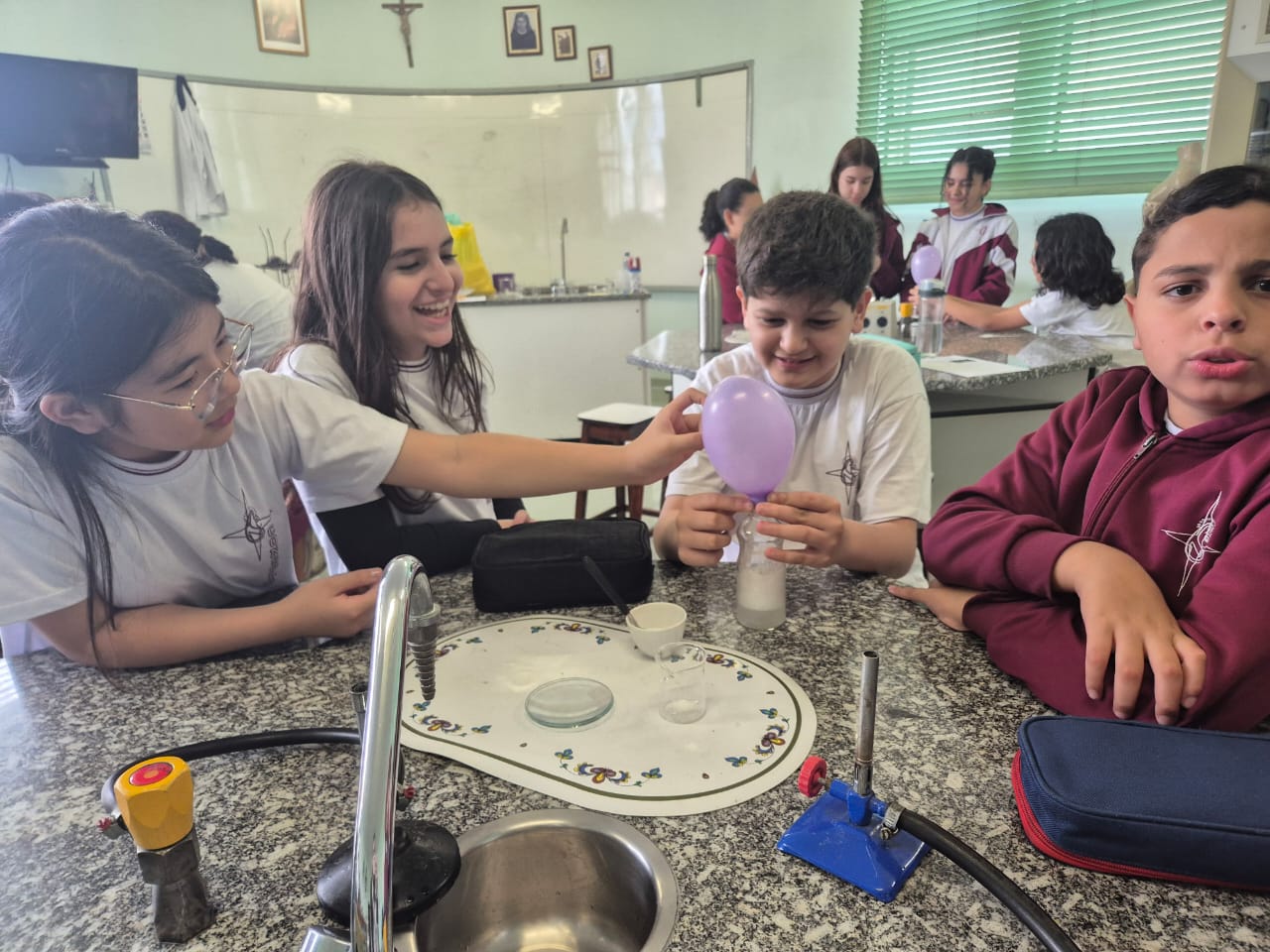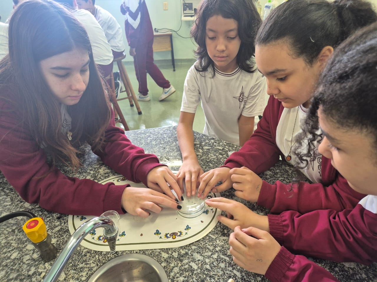 Na última semana, os alunos do 6º ano A e B participaram de uma aula prática de Ciências com a professora Giovana, onde tiveram a oportunidade de vivenciar de perto o fascinante mundo das reações químicas.