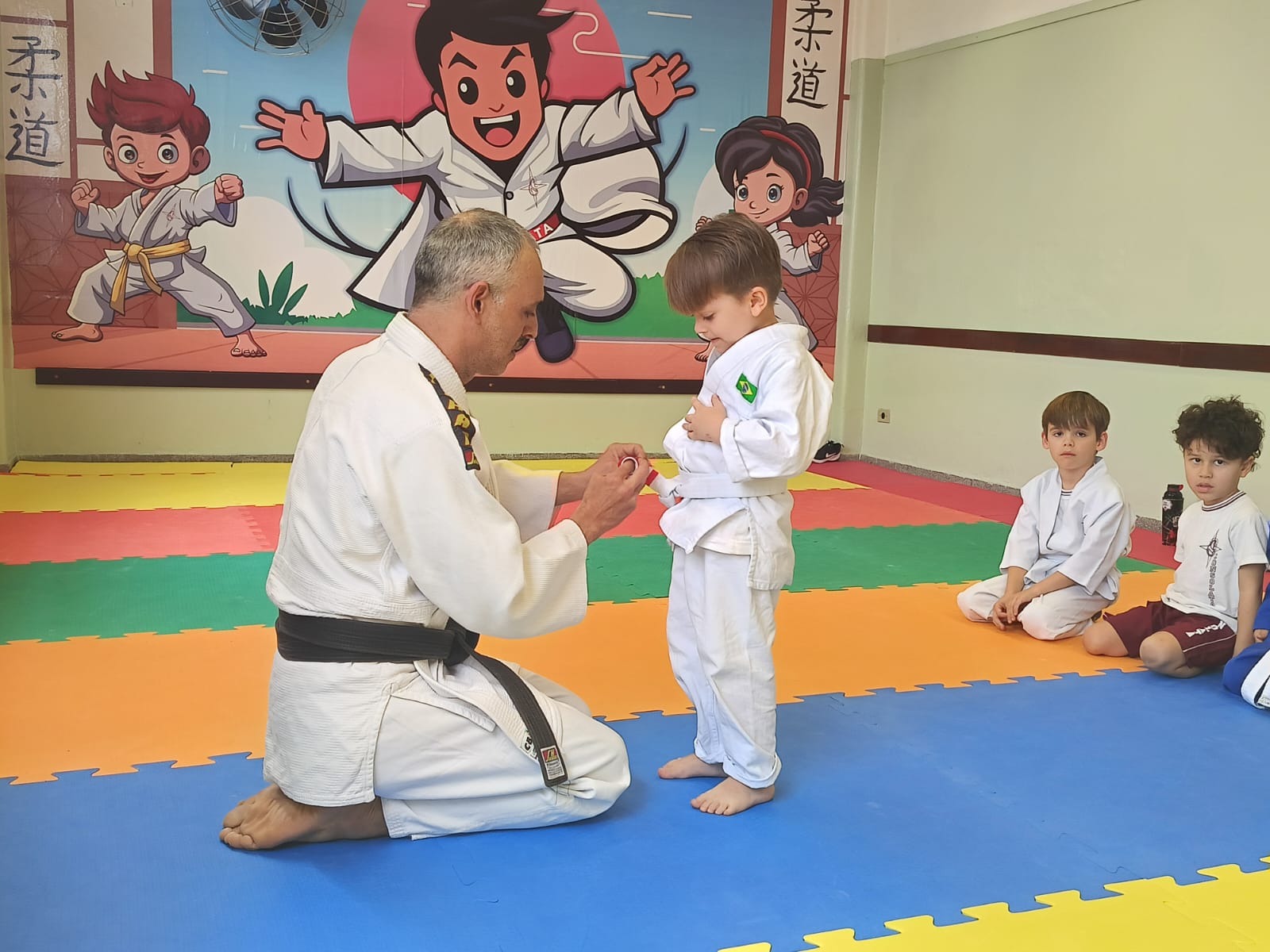 Com muita dedicação e carinho, o professor Emiliano conduz cada movimento, incentivando o respeito, a disciplina e a diversão.