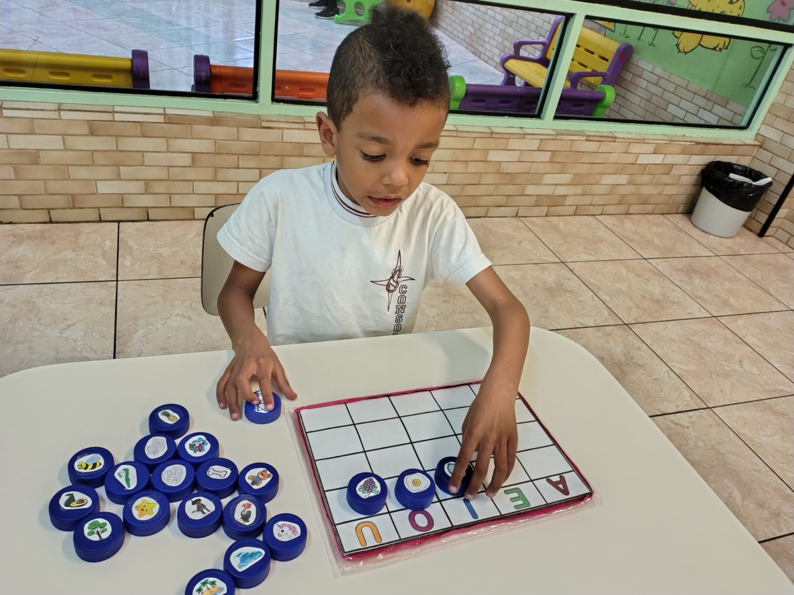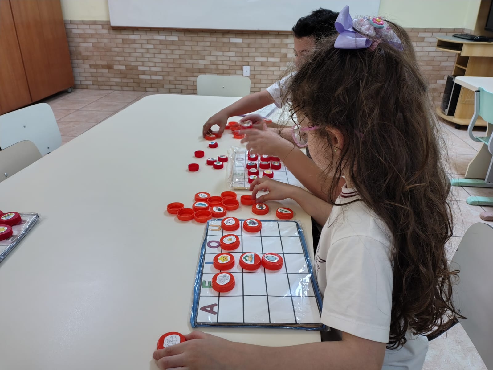 Os alunos do Infantil III A realizaram *O jogo das vogais*