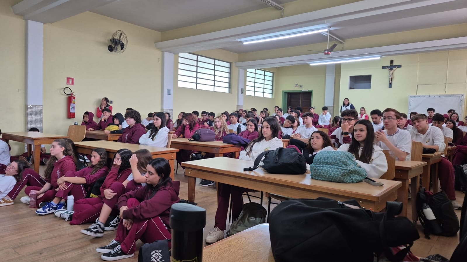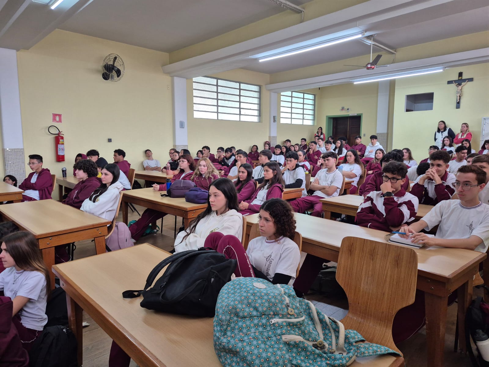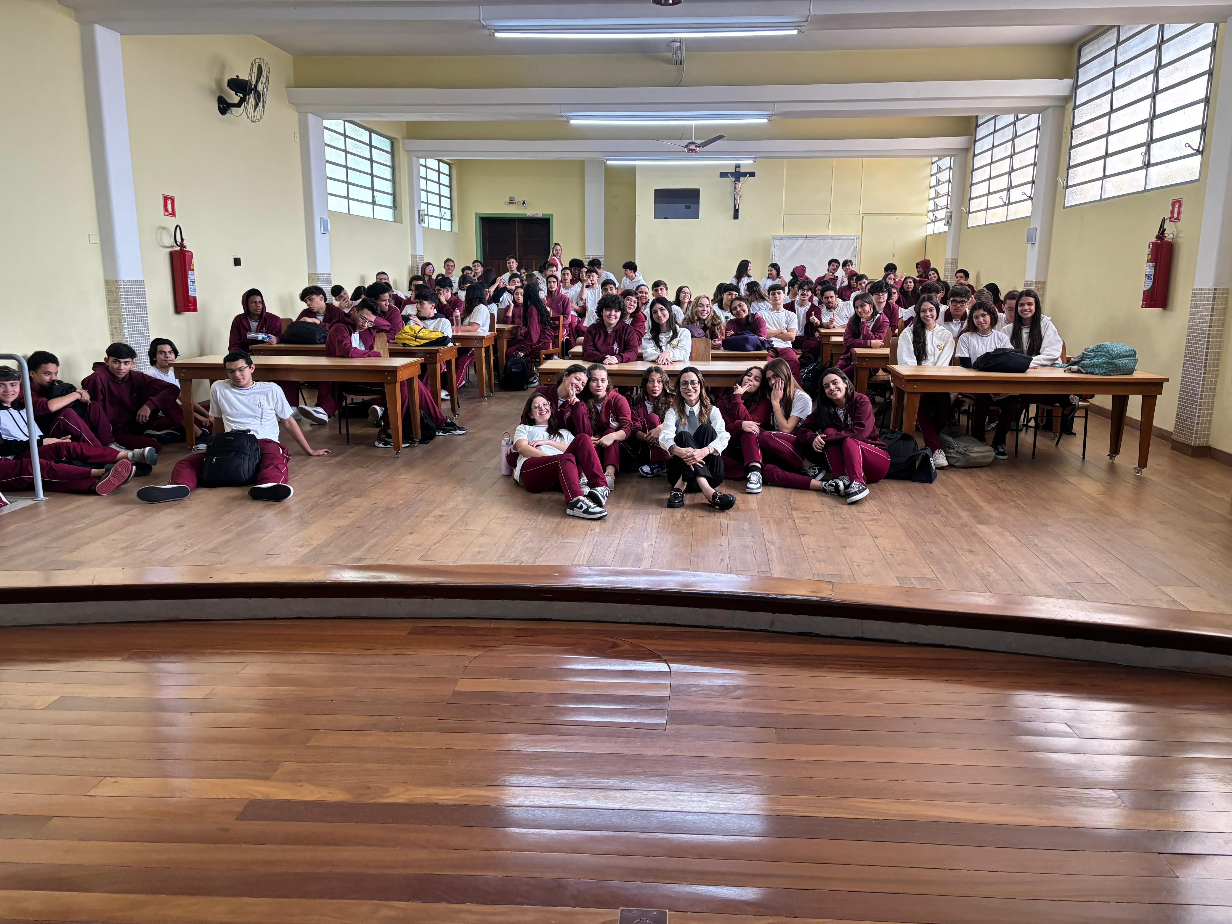 Os alunos do Ensino Médio participaram de uma palestra inspiradora sobre "Investimentos para Jovens", conduzida pela economista Gabriela Nogueira.