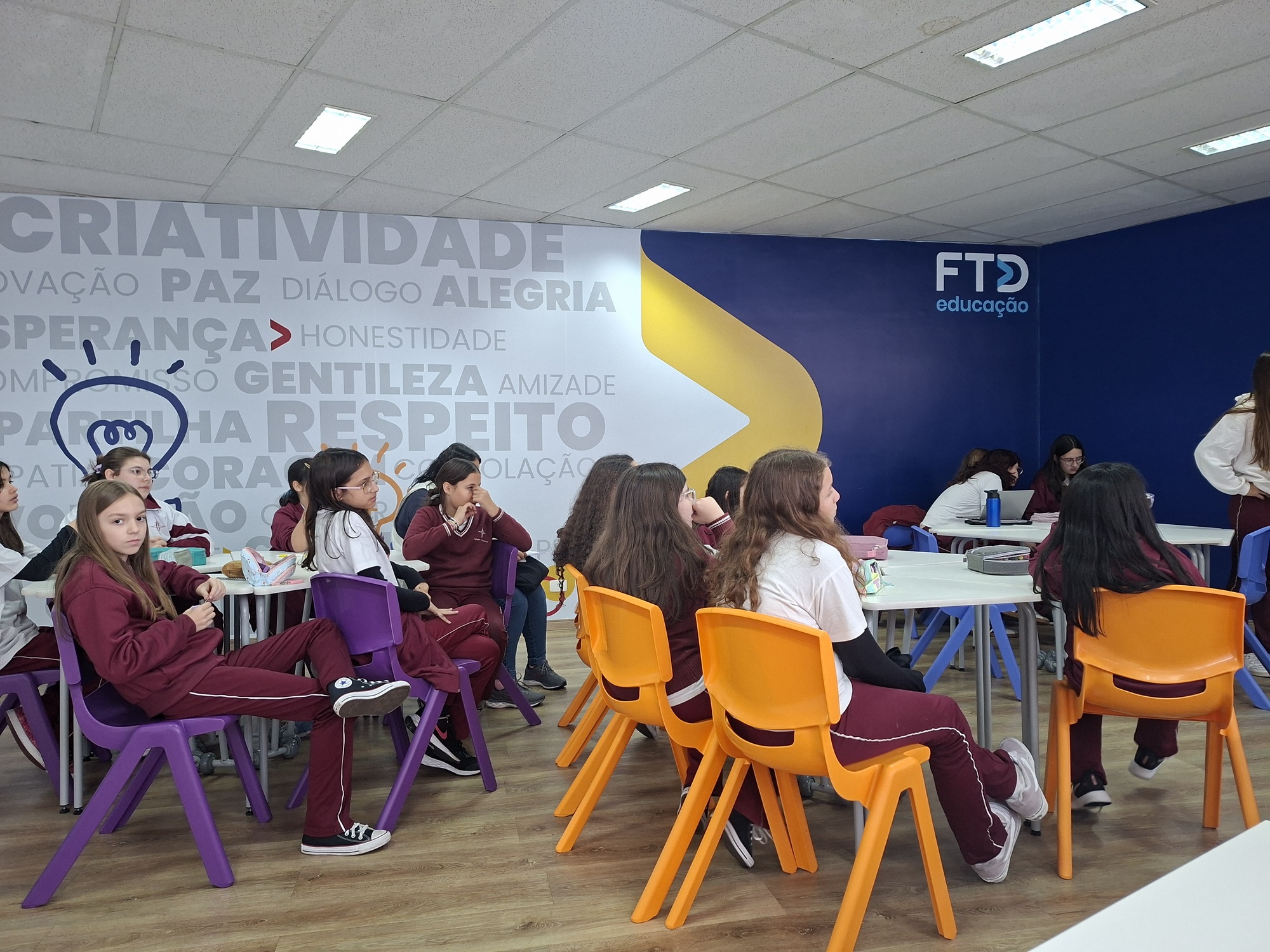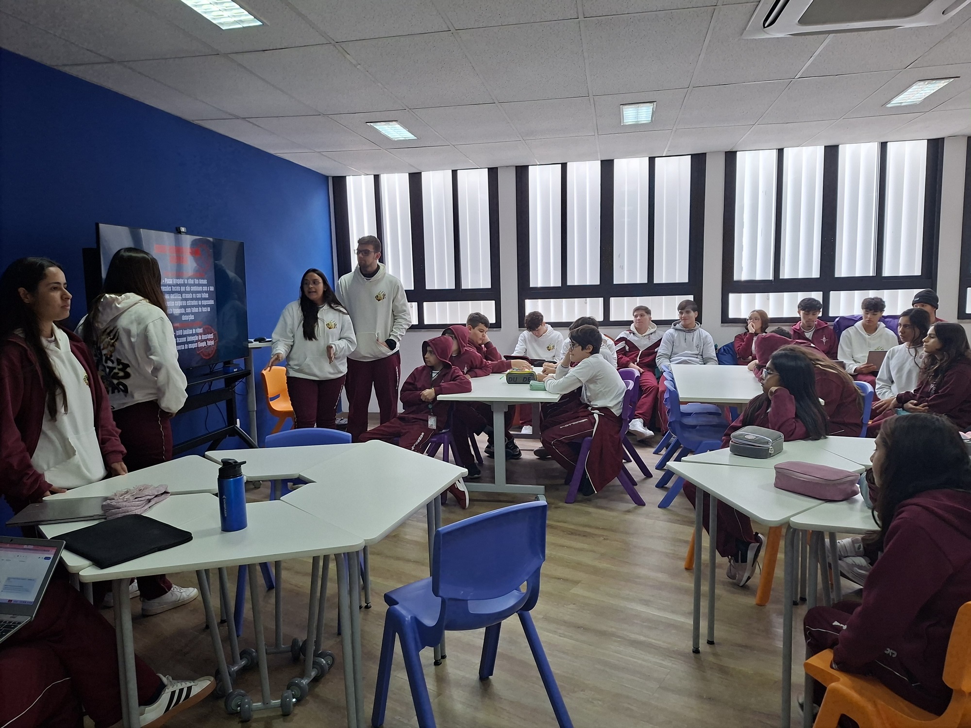 Sob a orientação do professor João, os estudantes da 3ª série B compartilharam seus conhecimentos com a turma do 6ºA em um encontro especial da disciplina de Educação Digital.