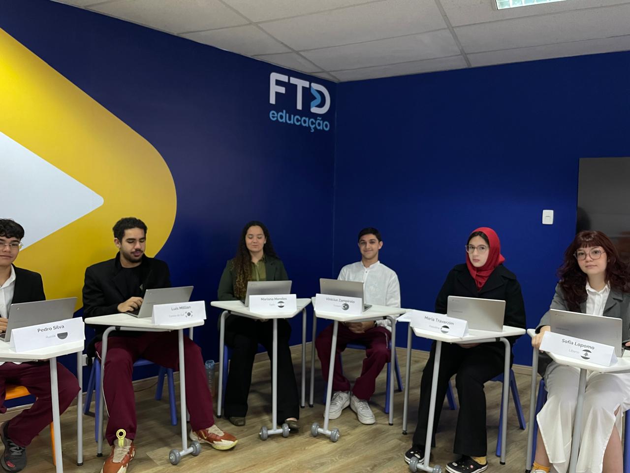 Os estudantes da 3ª série B, sob a orientação do professor João, se reuniram para uma nova simulação da ONU nas aulas de Geografia.