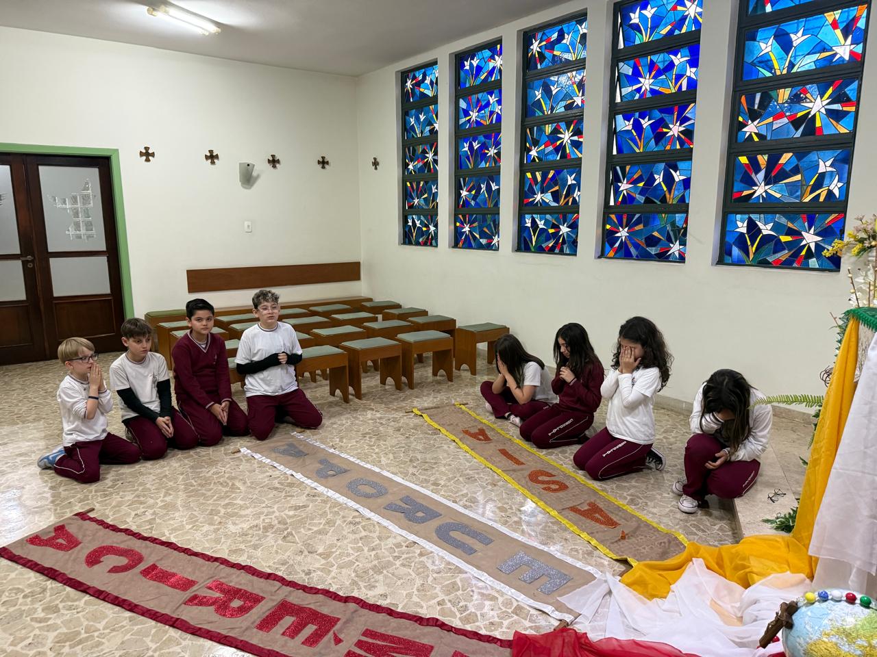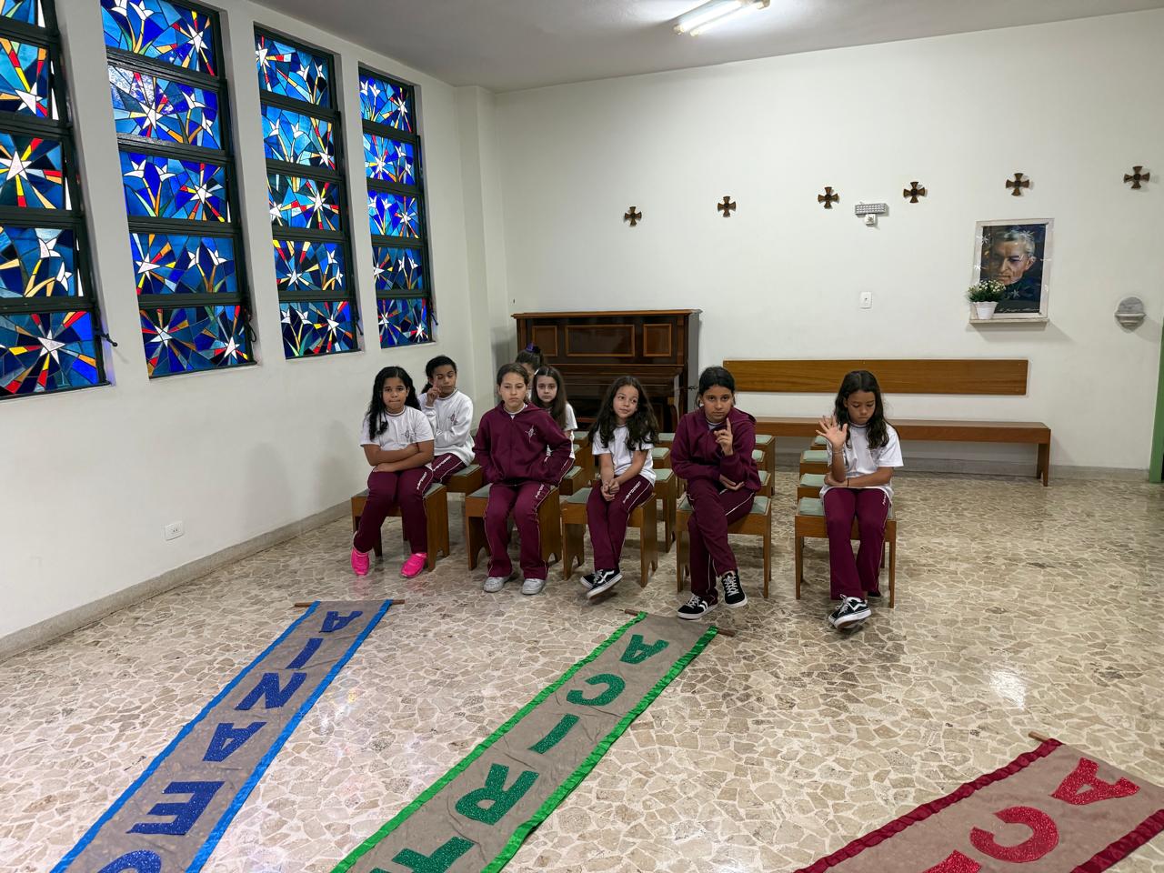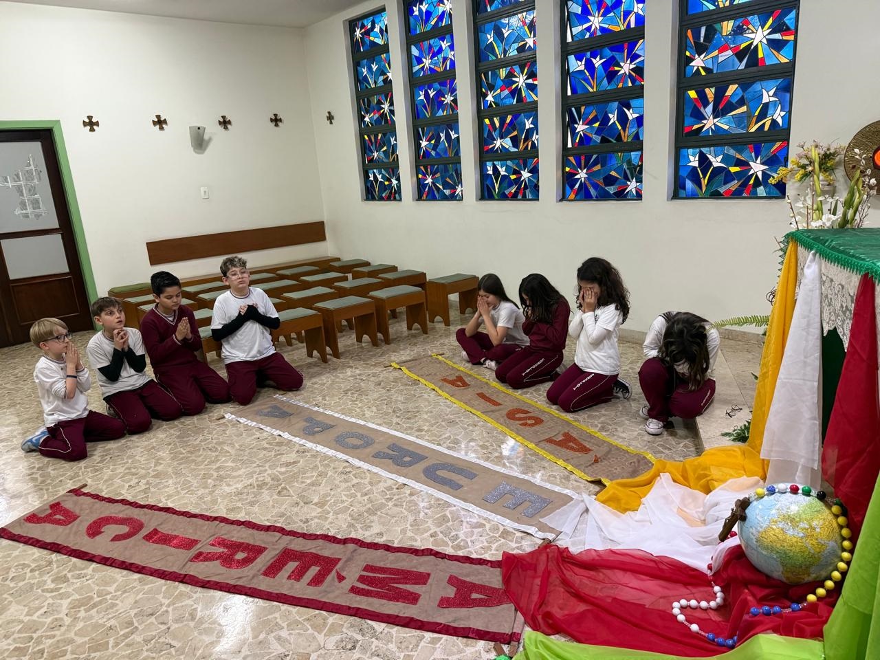 Durante a aula de Ensino Religioso, os alunos dos 4ºs anos participaram de um profundo momento de espiritualidade e oração, refletindo sobre a fé, o amor e a presença de Deus em suas vidas.