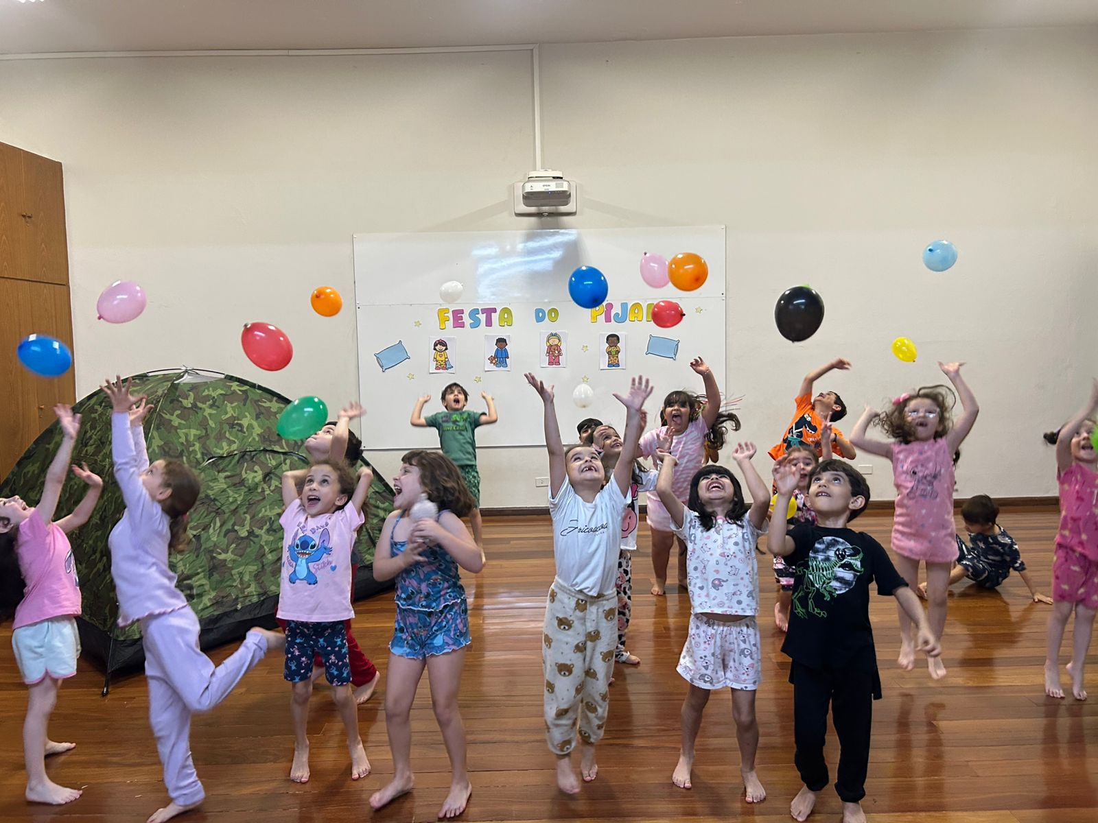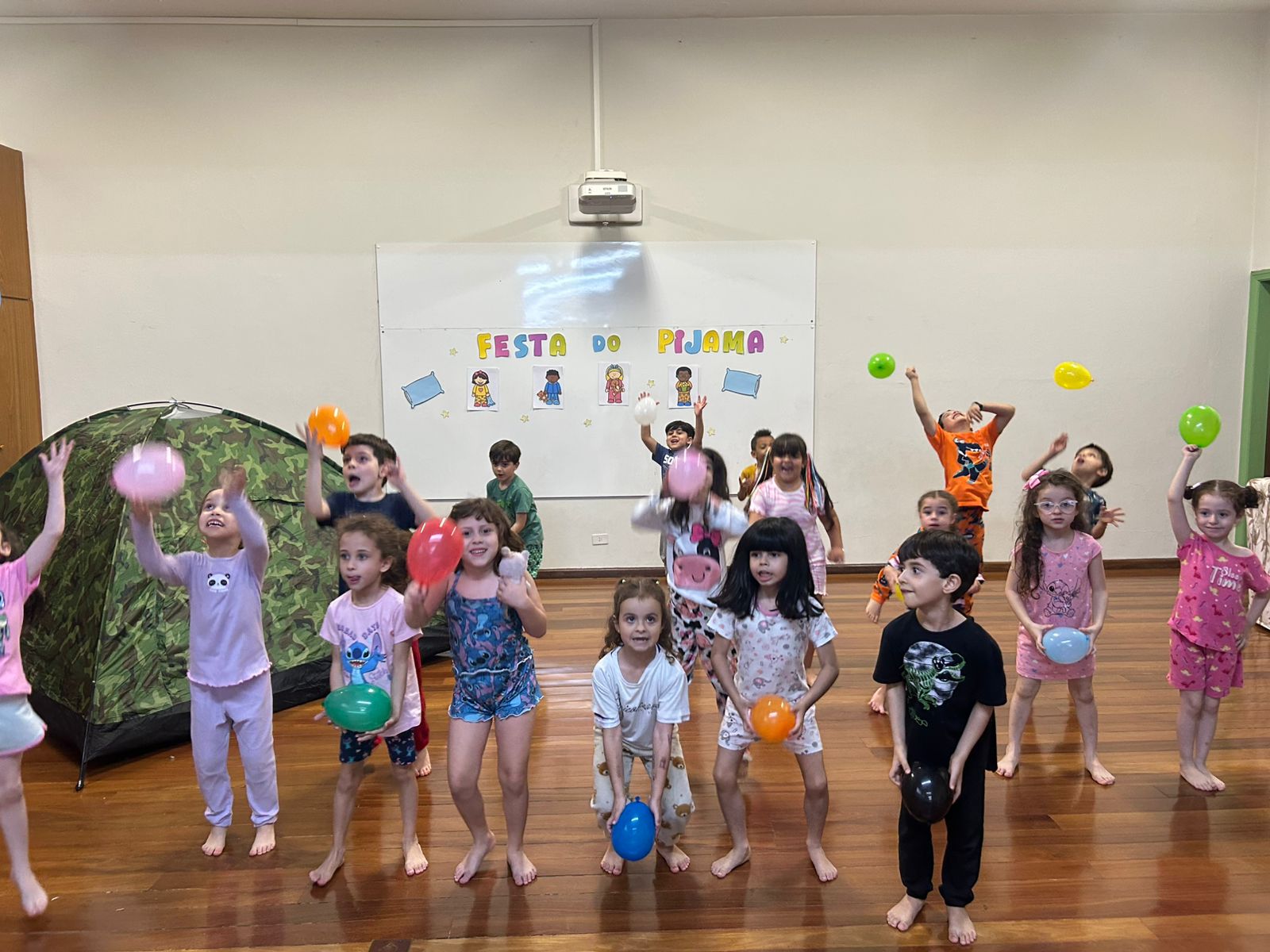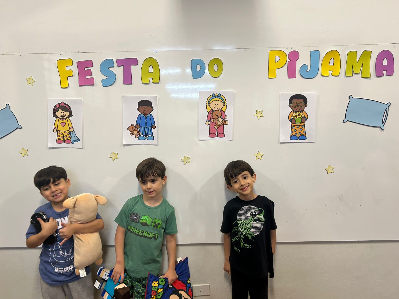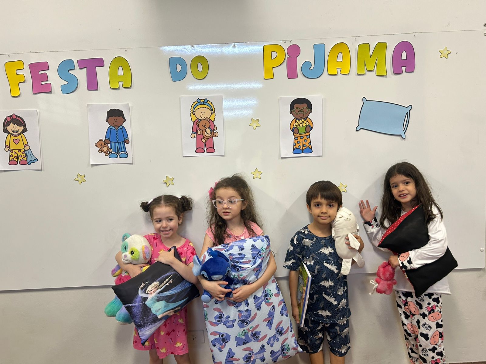 O grupo do Infantil III participou da "Tarde do Pijama", uma atividade especial dividida em quatro momentos: visita à casa das irmãs fortalecendo vínculos afetivos; culinária com preparação de pizzas, desenvolvendo habilidades motoras e valorizando a cultura italiana; orientação lúdica sobre higiene bucal; e uma baladinha na cabana para celebrar a amizade com música e brincadeiras. Foi uma tarde com muitas cores, sabores e aprendizados.