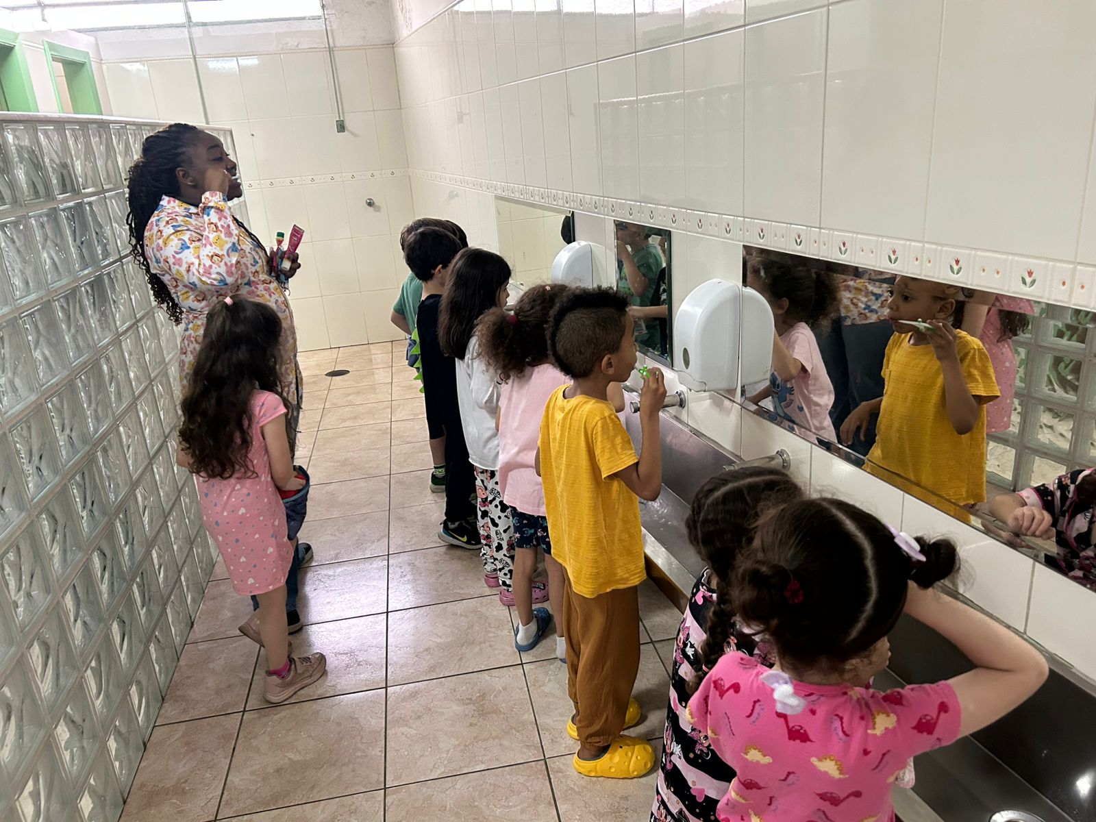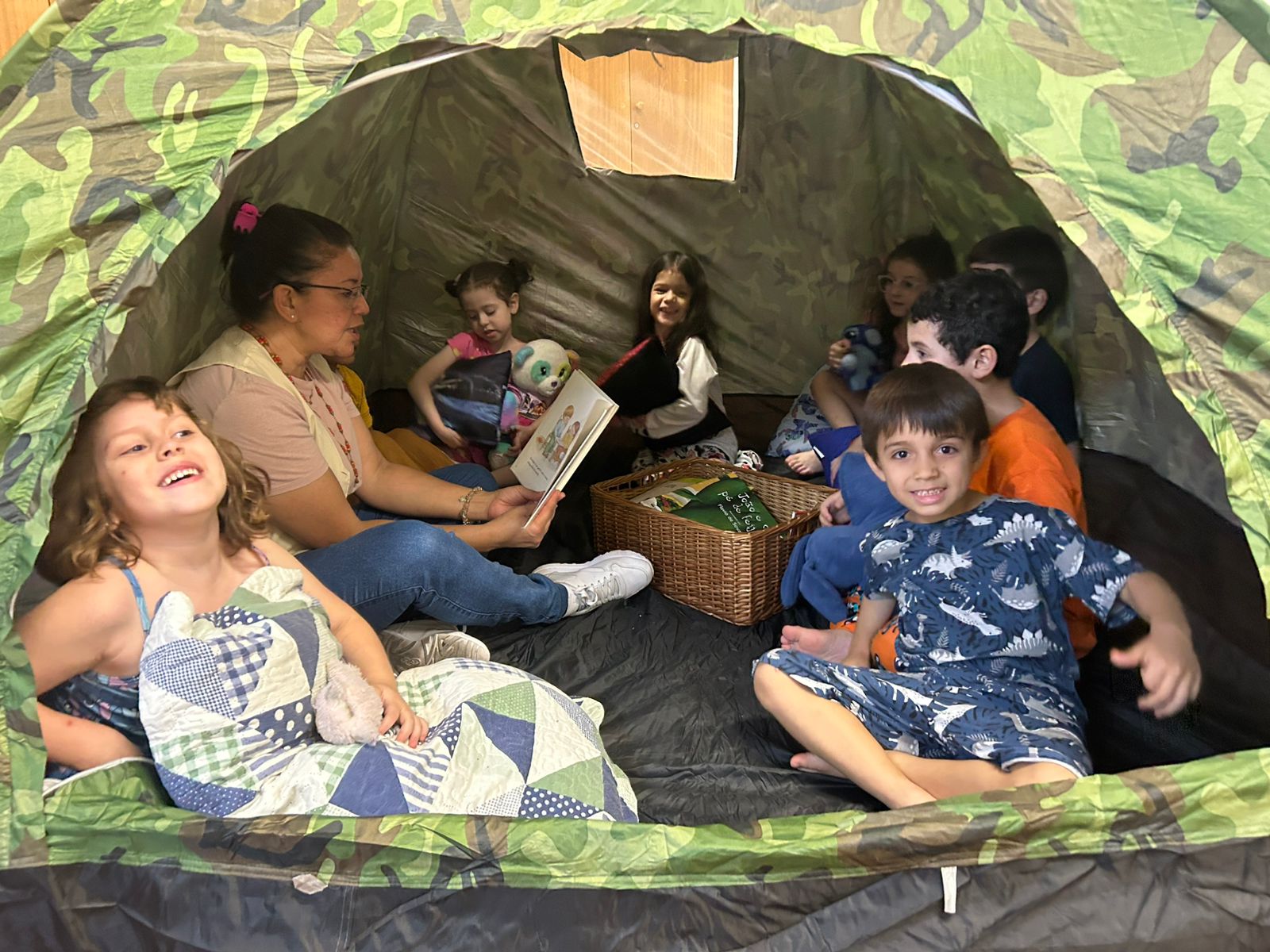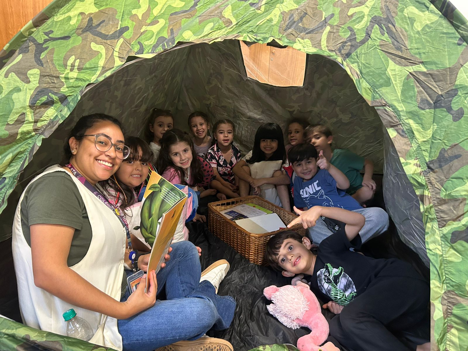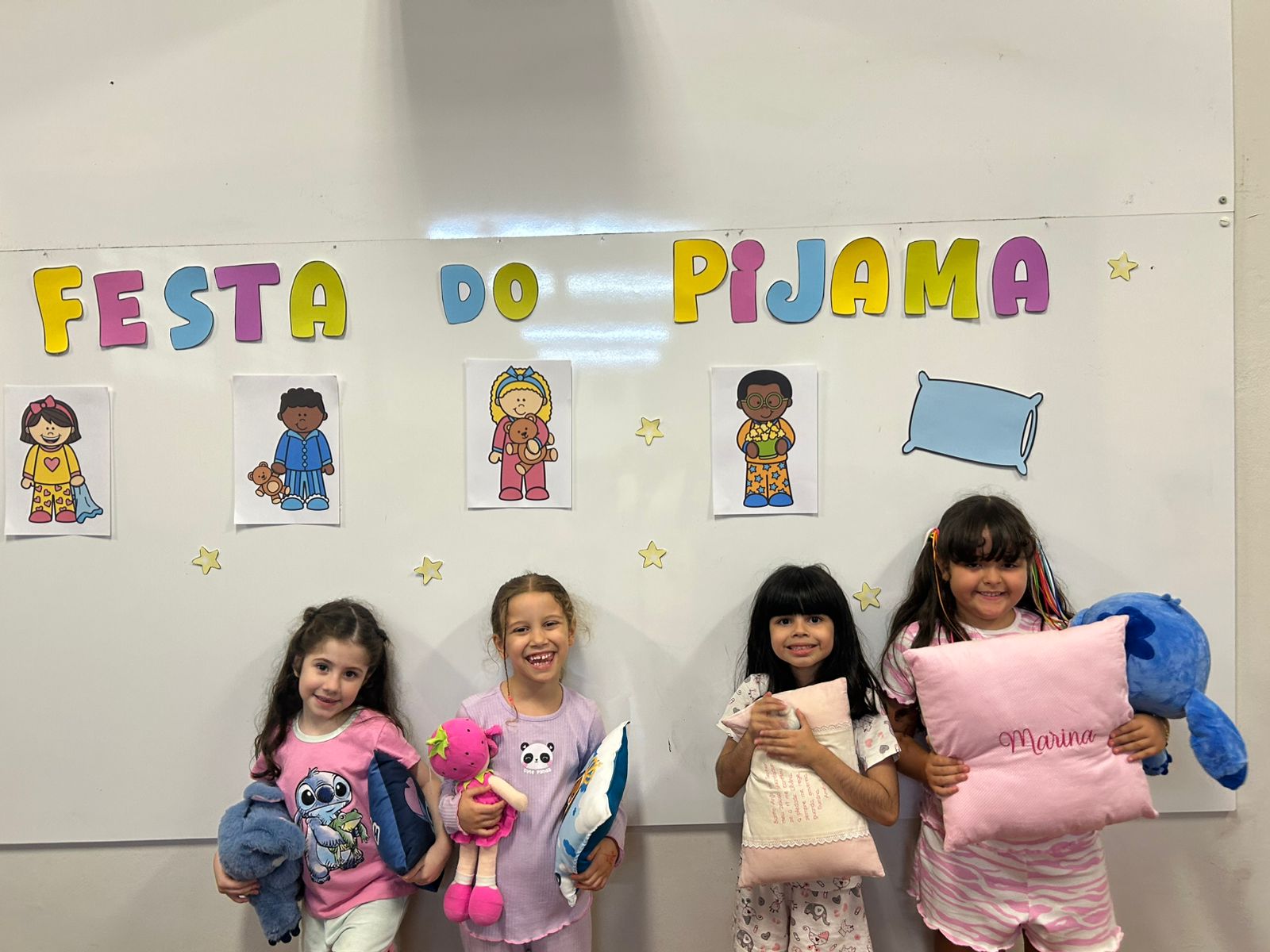 O grupo do Infantil III participou da "Tarde do Pijama", uma atividade especial dividida em quatro momentos: visita à casa das irmãs fortalecendo vínculos afetivos; culinária com preparação de pizzas, desenvolvendo habilidades motoras e valorizando a cultura italiana; orientação lúdica sobre higiene bucal; e uma baladinha na cabana para celebrar a amizade com música e brincadeiras. Foi uma tarde com muitas cores, sabores e aprendizados.