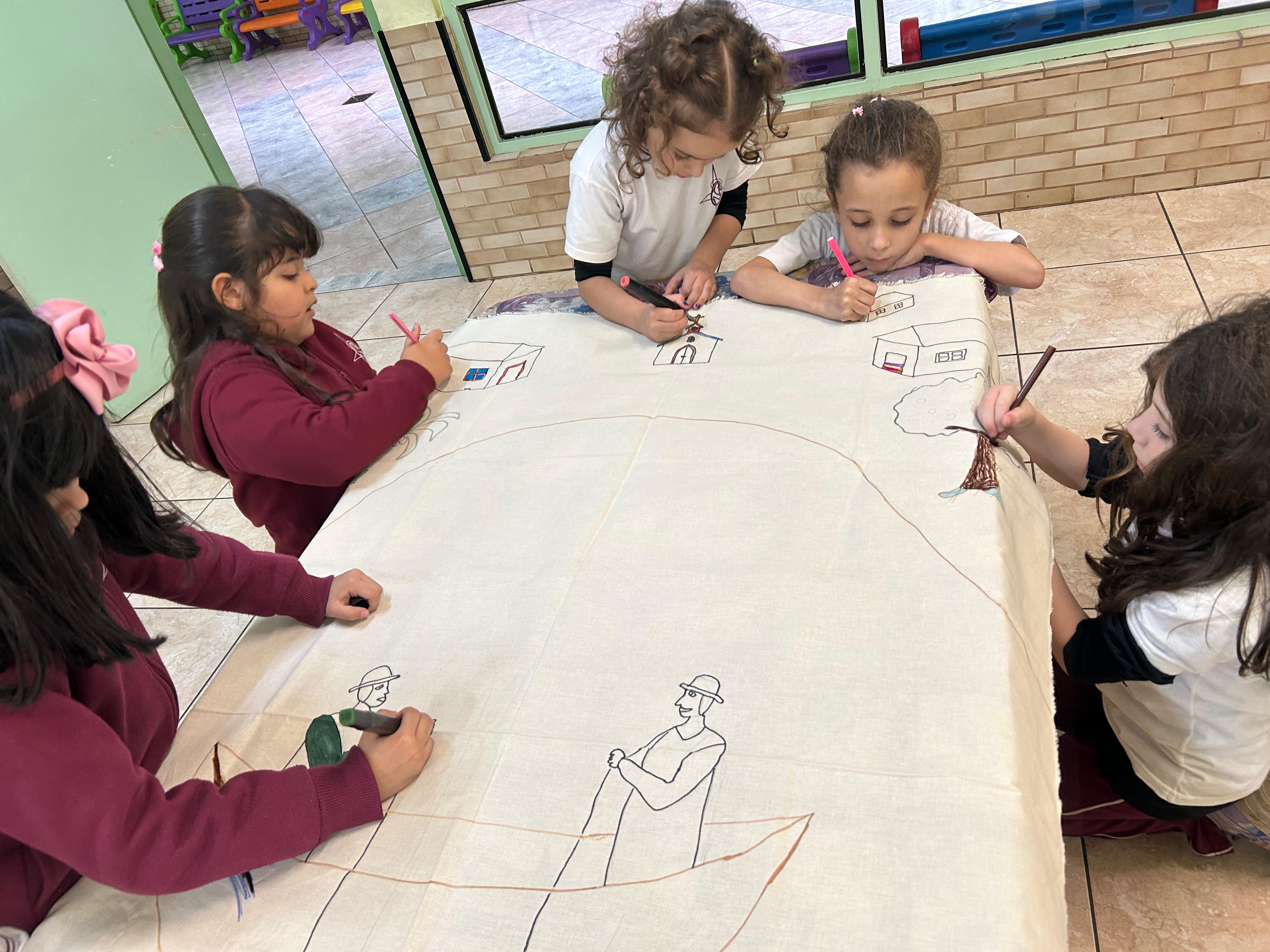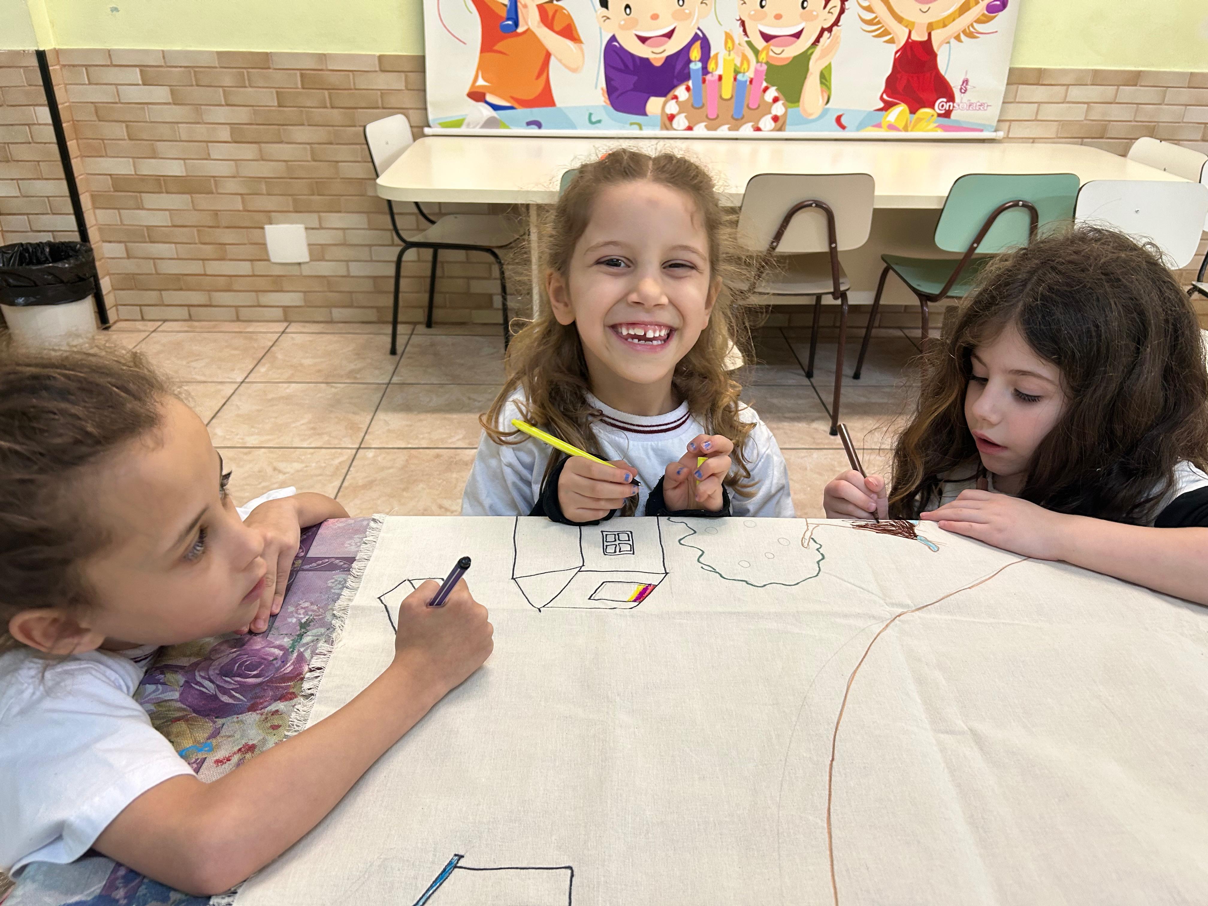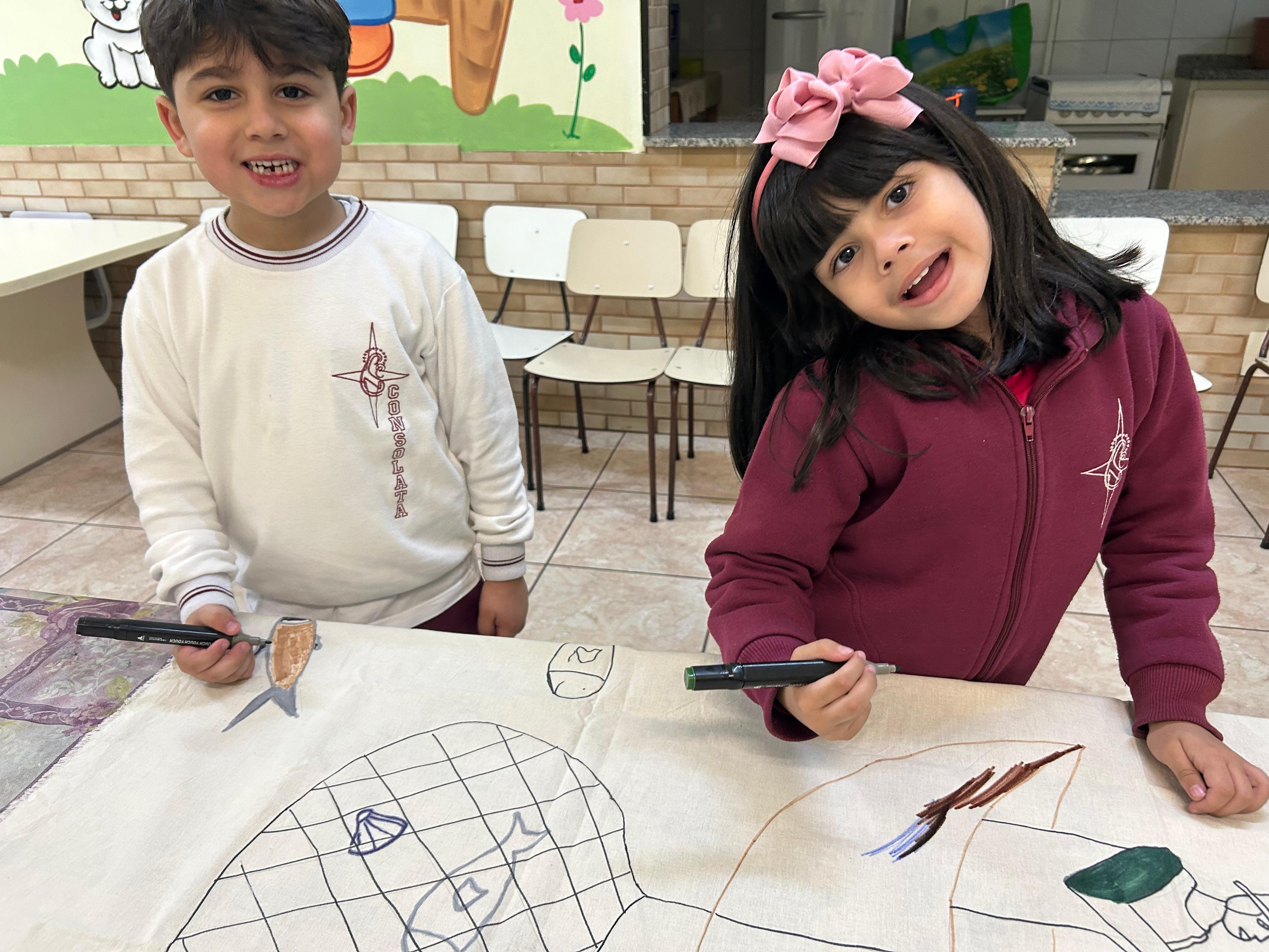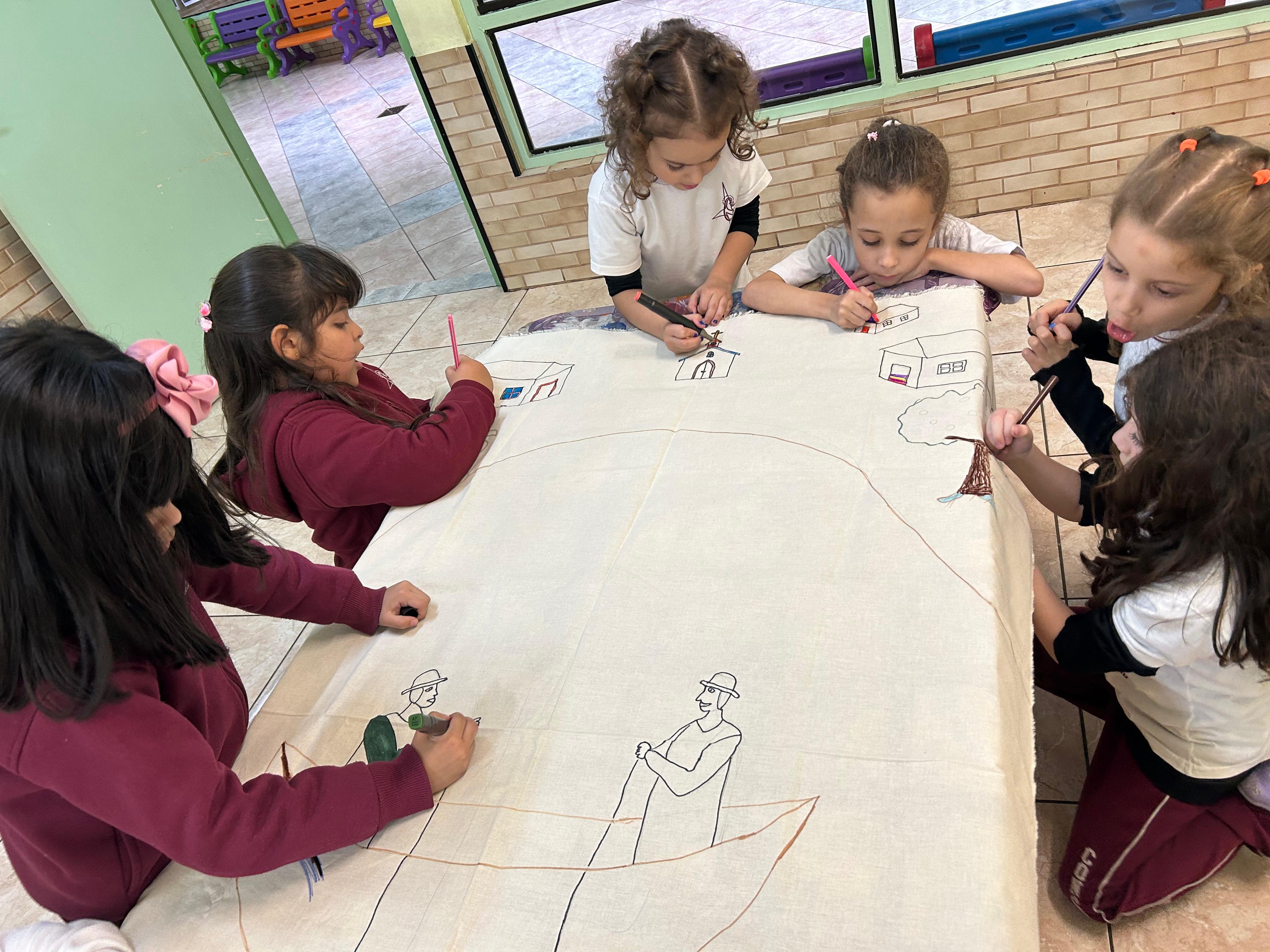 Com muita criatividade e cores, os alunos do infantil 3B se inspiraram na arte naïf da artista Lúcia Buccini.