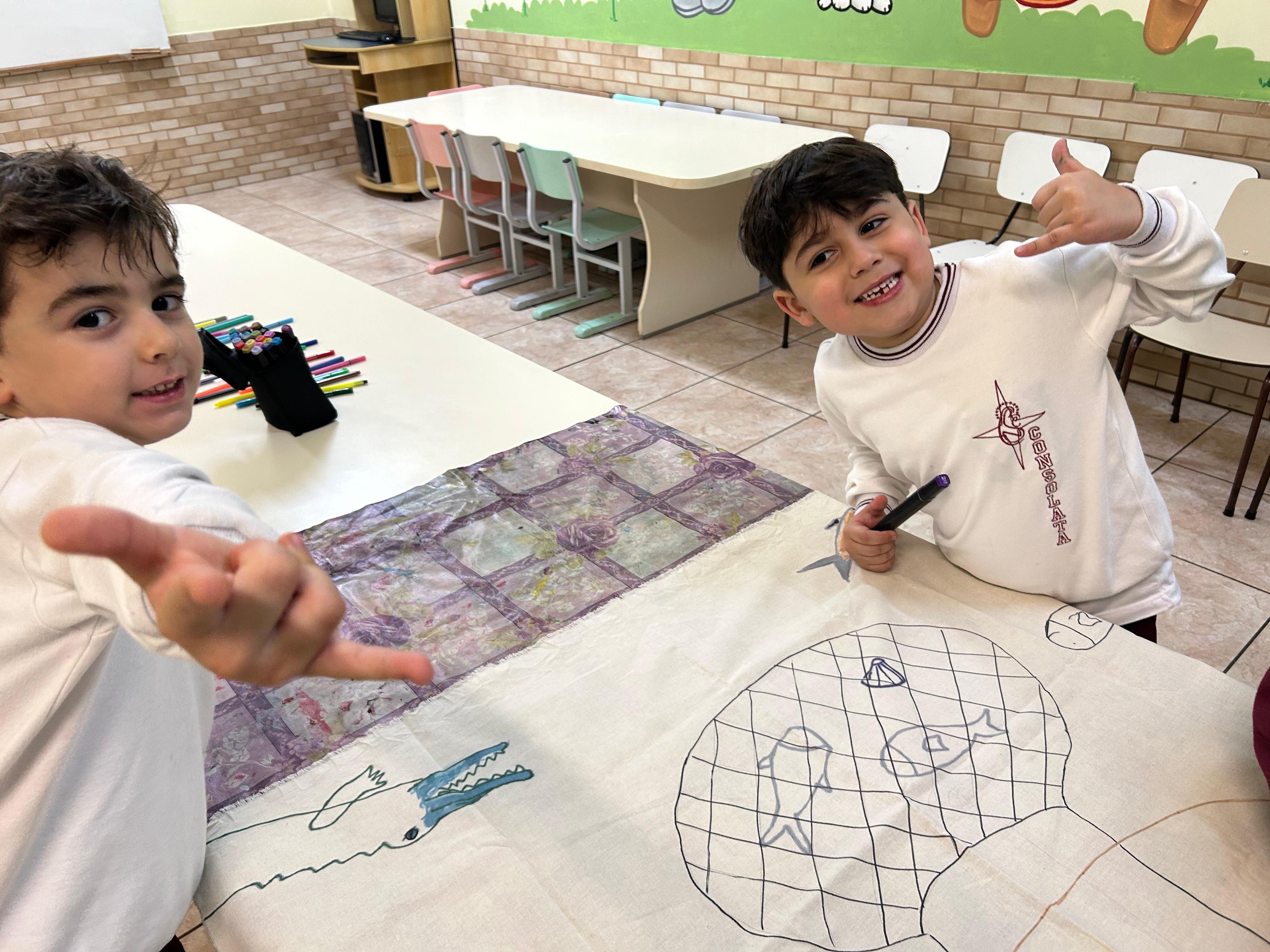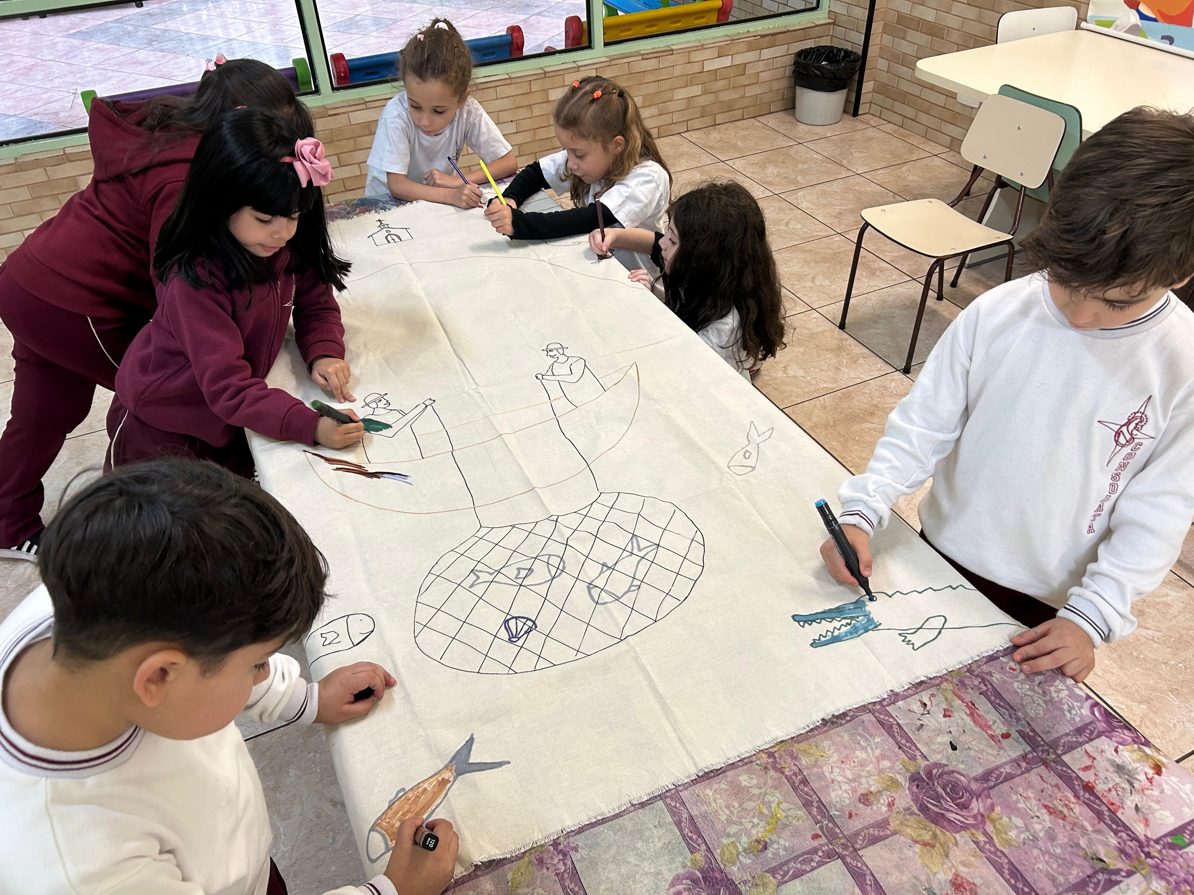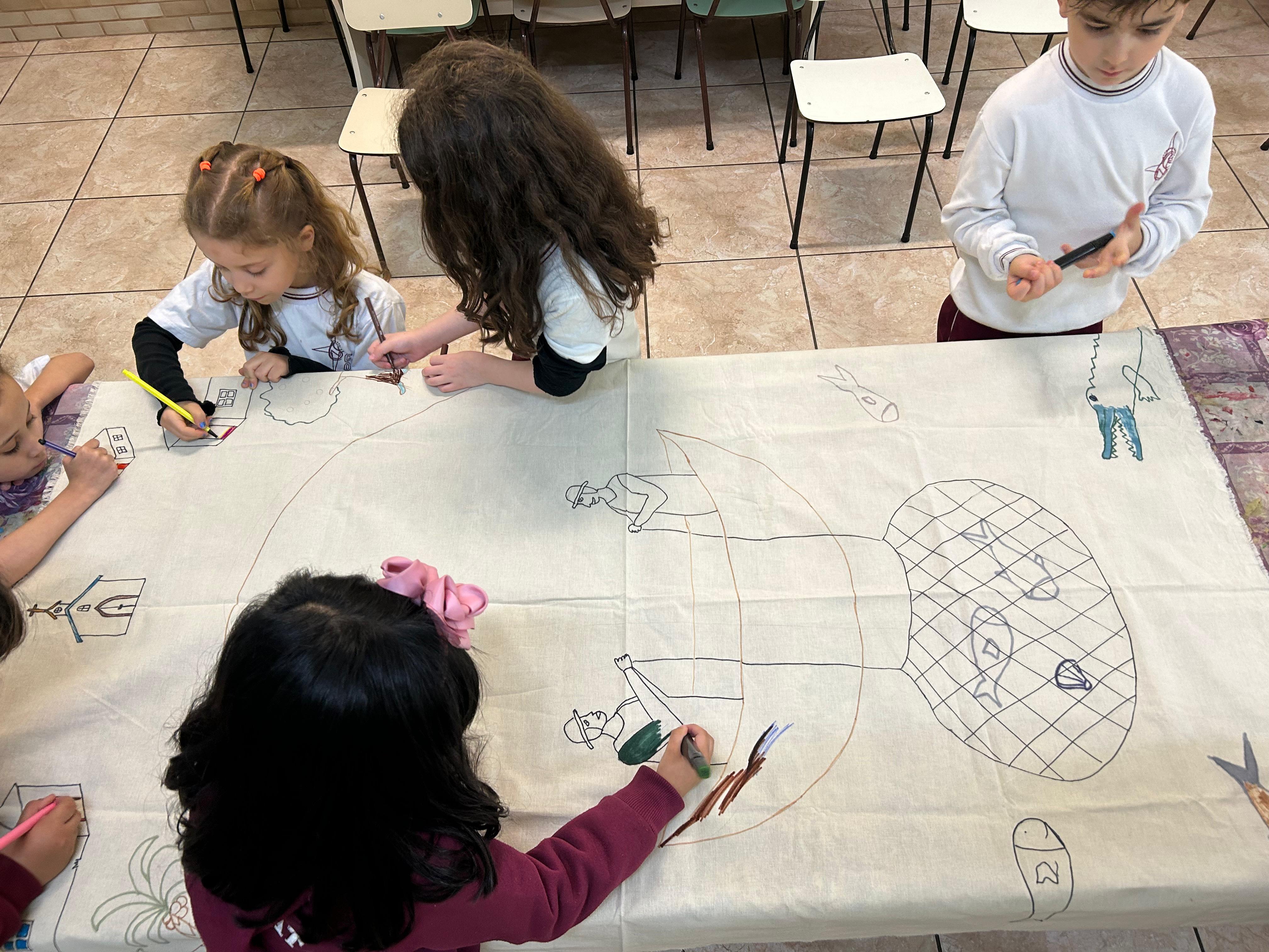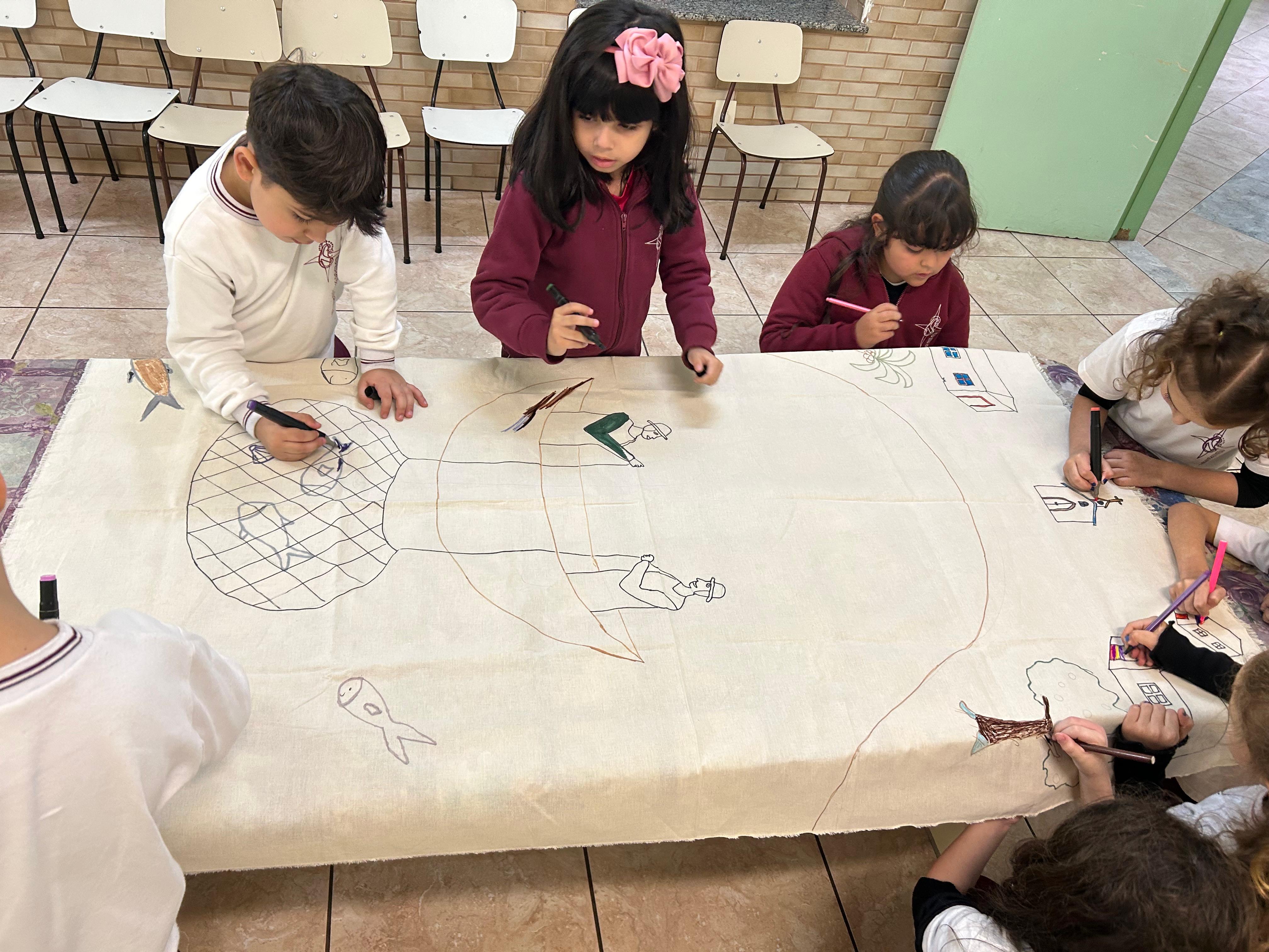 Com muita criatividade e cores, os alunos do infantil 3B se inspiraram na arte naïf da artista Lúcia Buccini.