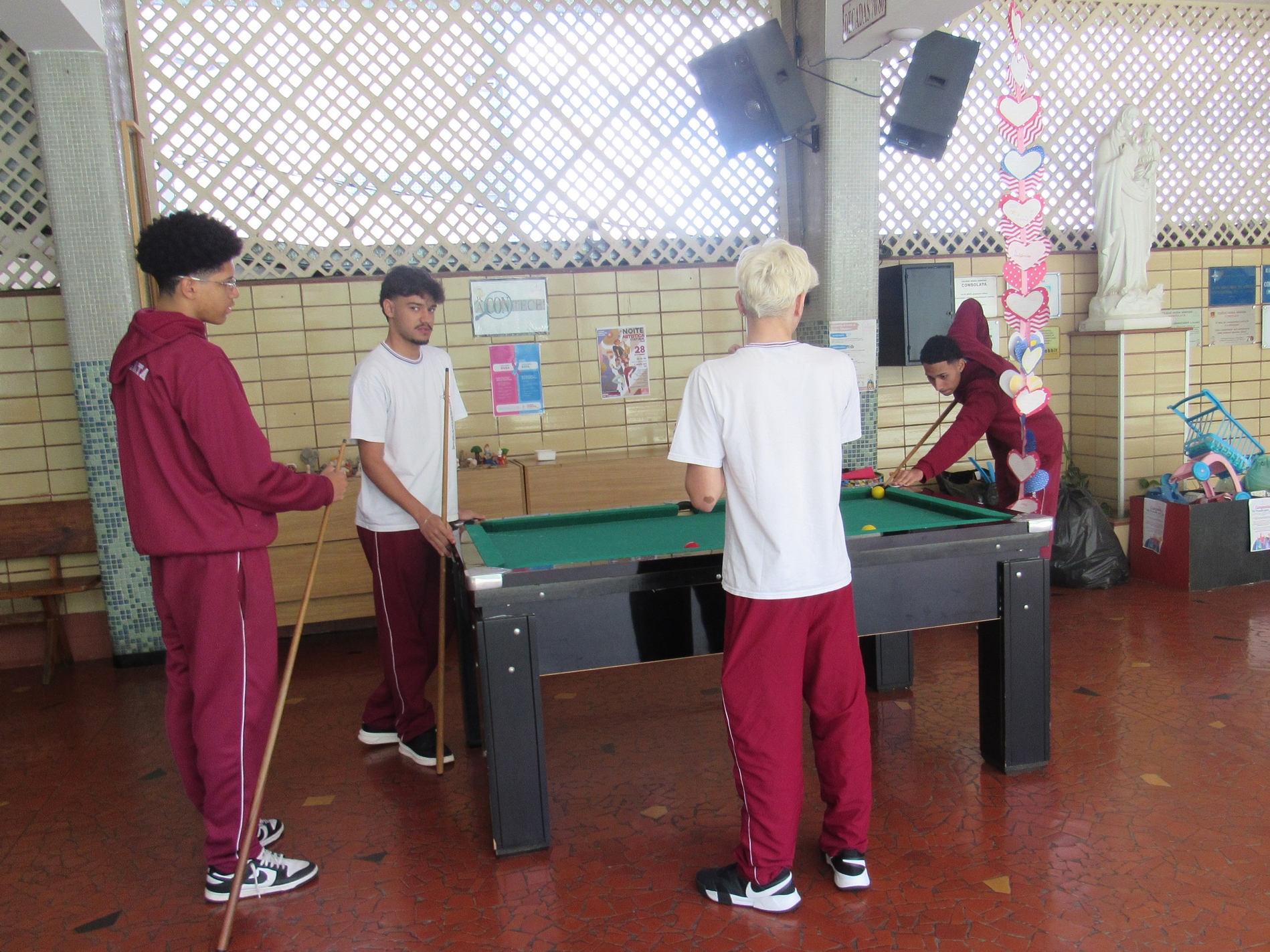 Os jogos de mesa como: pebolim, sinuca, cornhole, xadrez, dama, entre outros, também contribuíram como incentivo e forma saudável de distração.