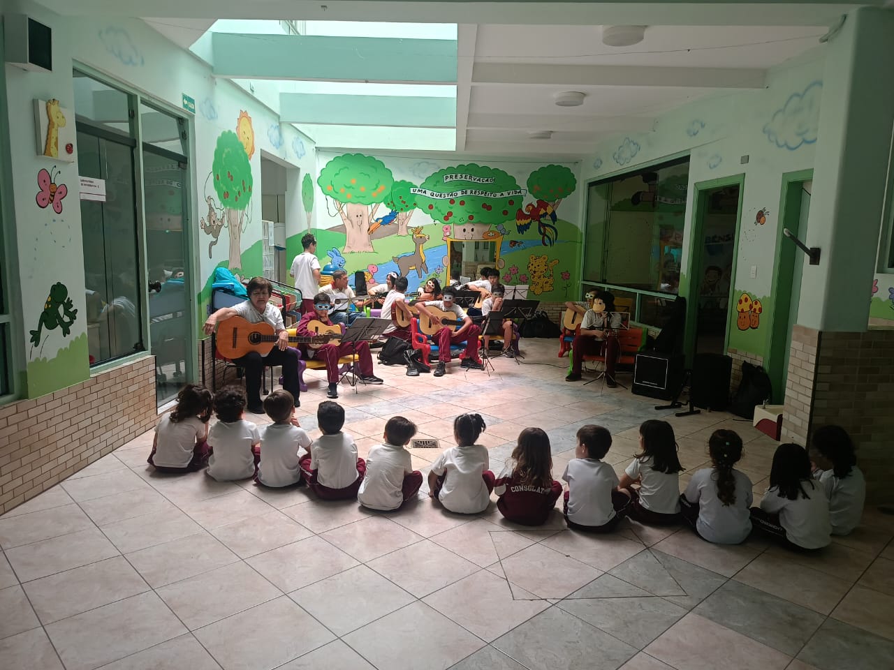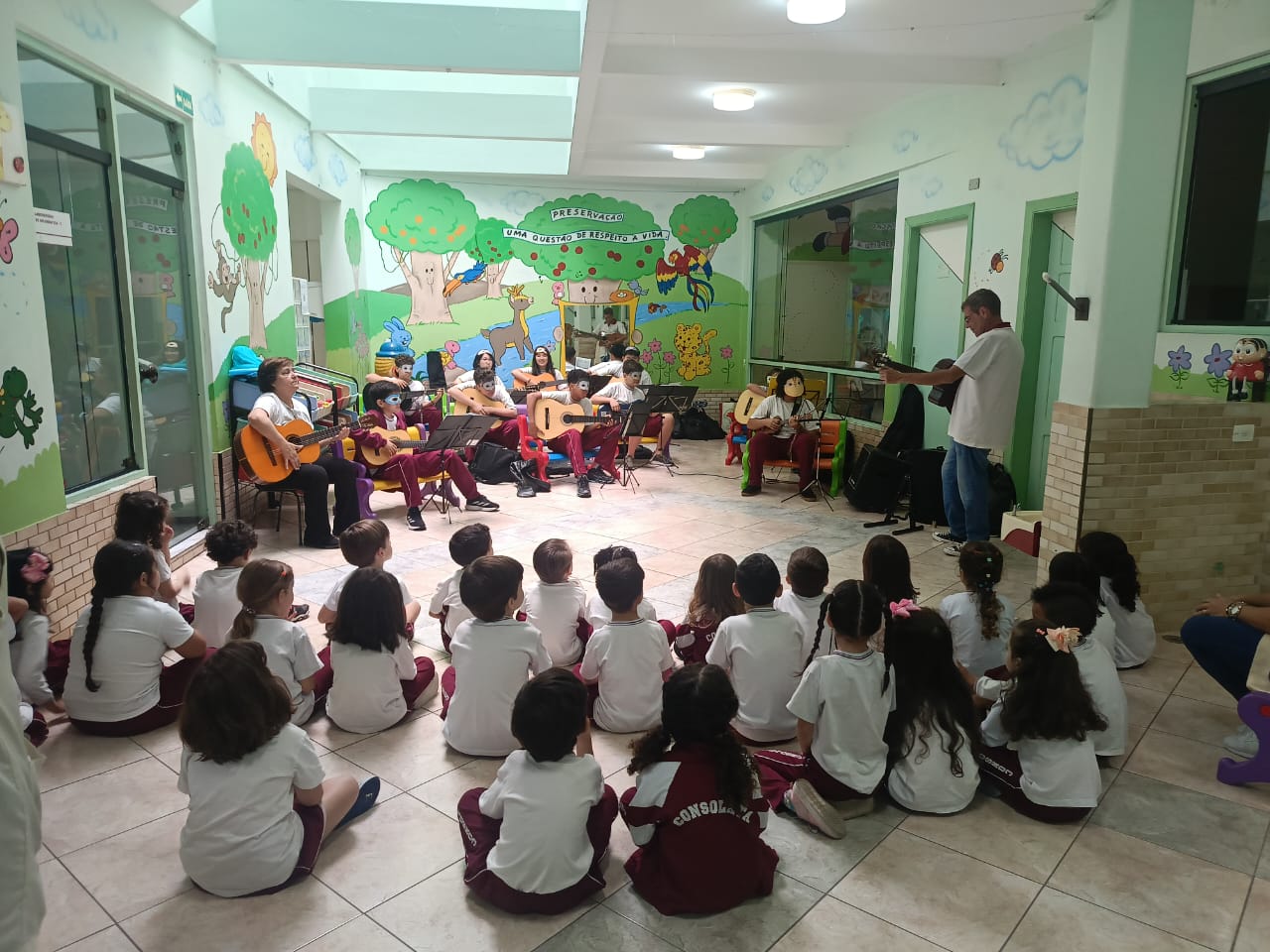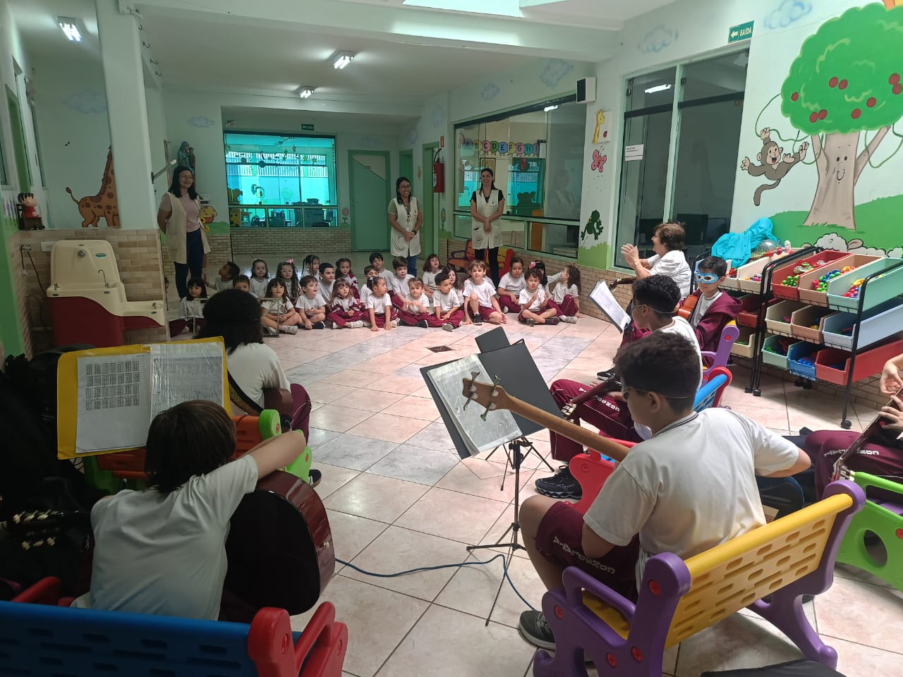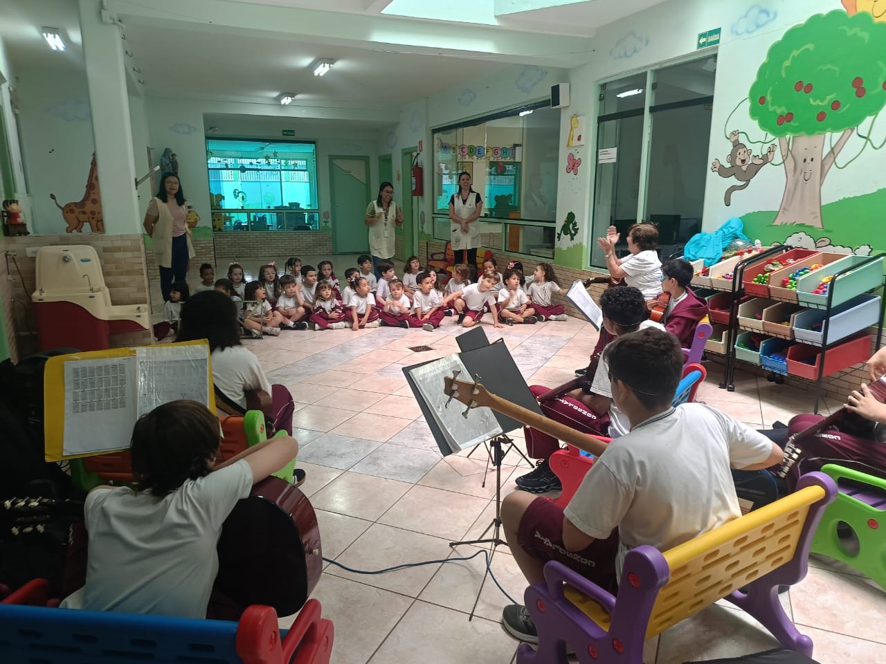 O Professor Vinícius, junto com a turma de violão, levou alegria e música para os alunos da Educação Infantil, resgatando brincadeiras tradicionais e promovendo momentos de integração, ritmo e movimento. Entre palmas, sorrisos e canções, as crianças aprenderam sobre cultura popular de forma leve, divertida e repleta de encantamento.