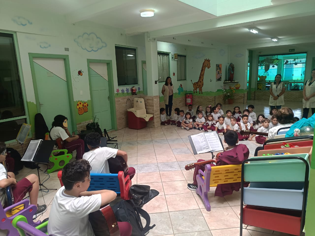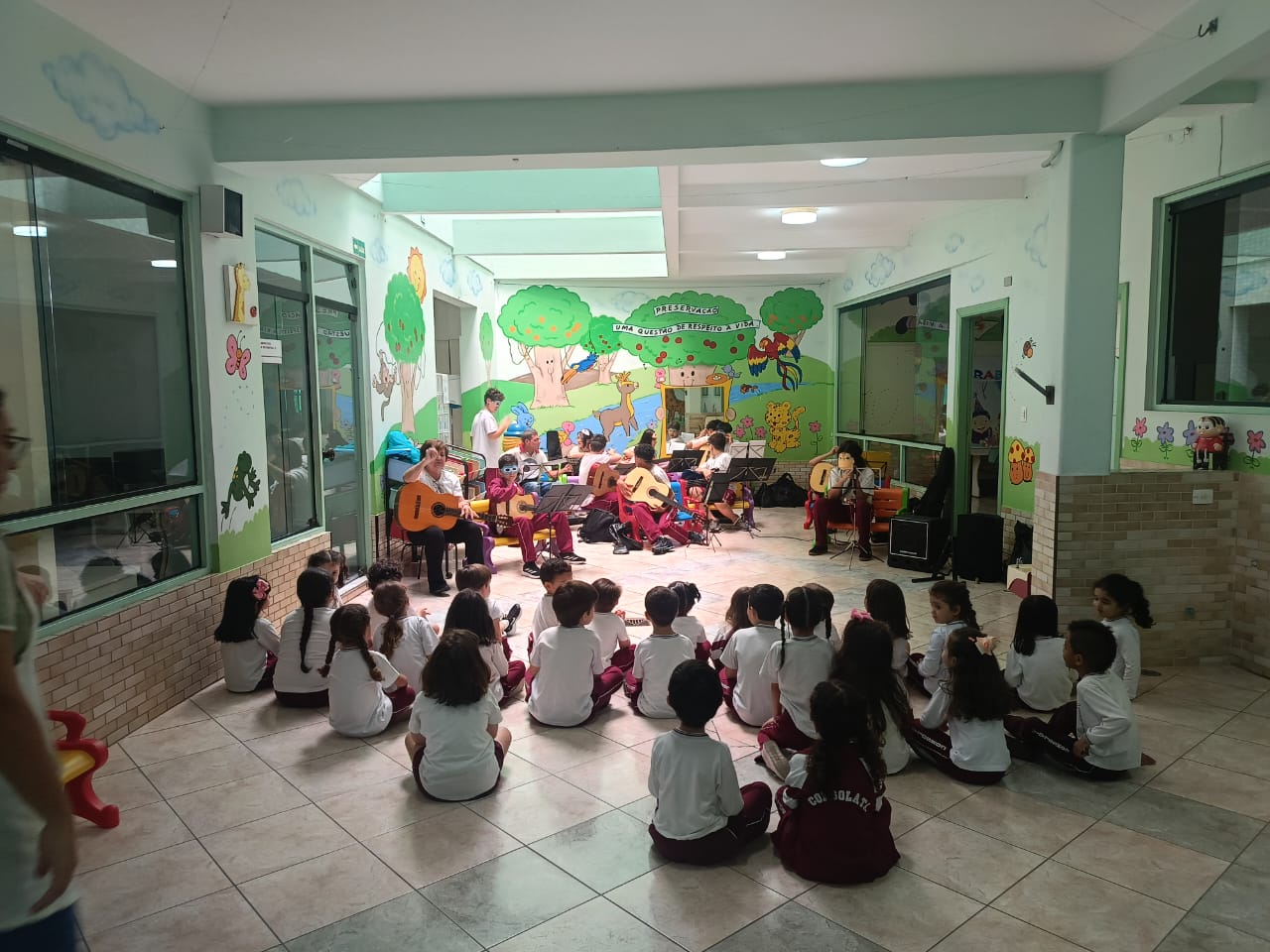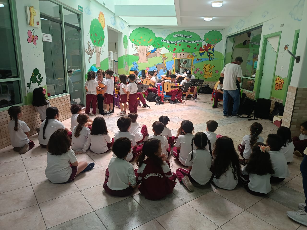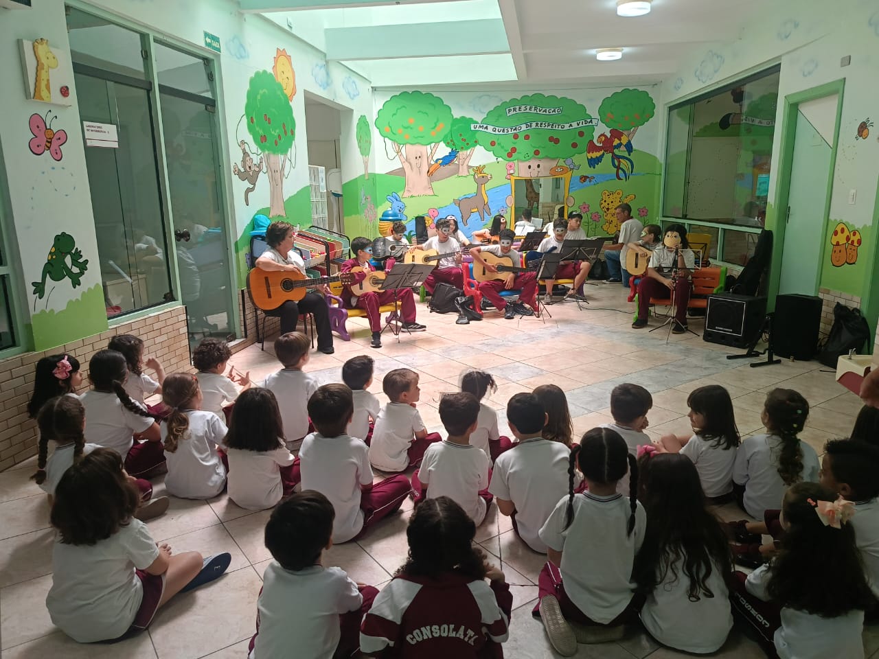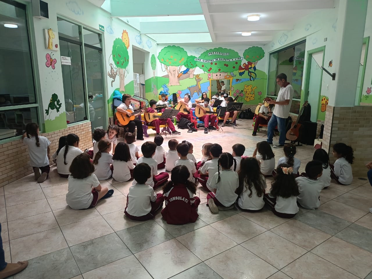 O Professor Vinícius, junto com a turma de violão, levou alegria e música para os alunos da Educação Infantil, resgatando brincadeiras tradicionais e promovendo momentos de integração, ritmo e movimento. Entre palmas, sorrisos e canções, as crianças aprenderam sobre cultura popular de forma leve, divertida e repleta de encantamento.