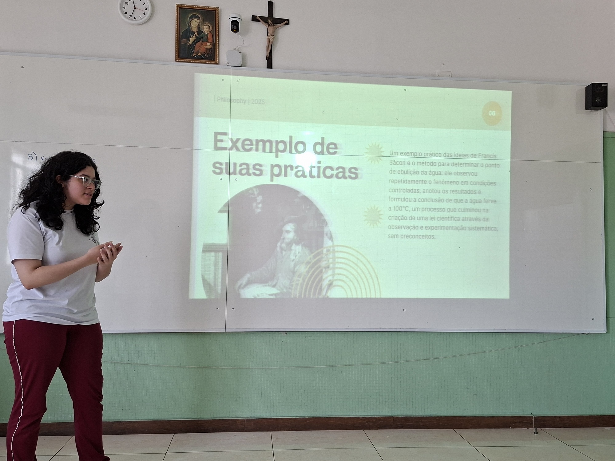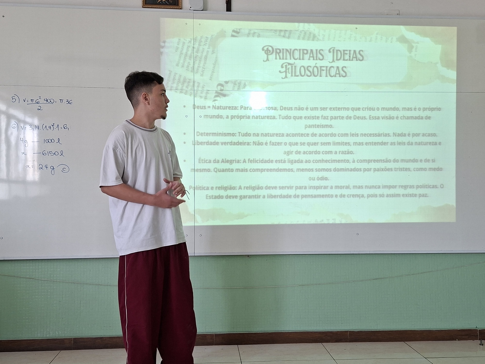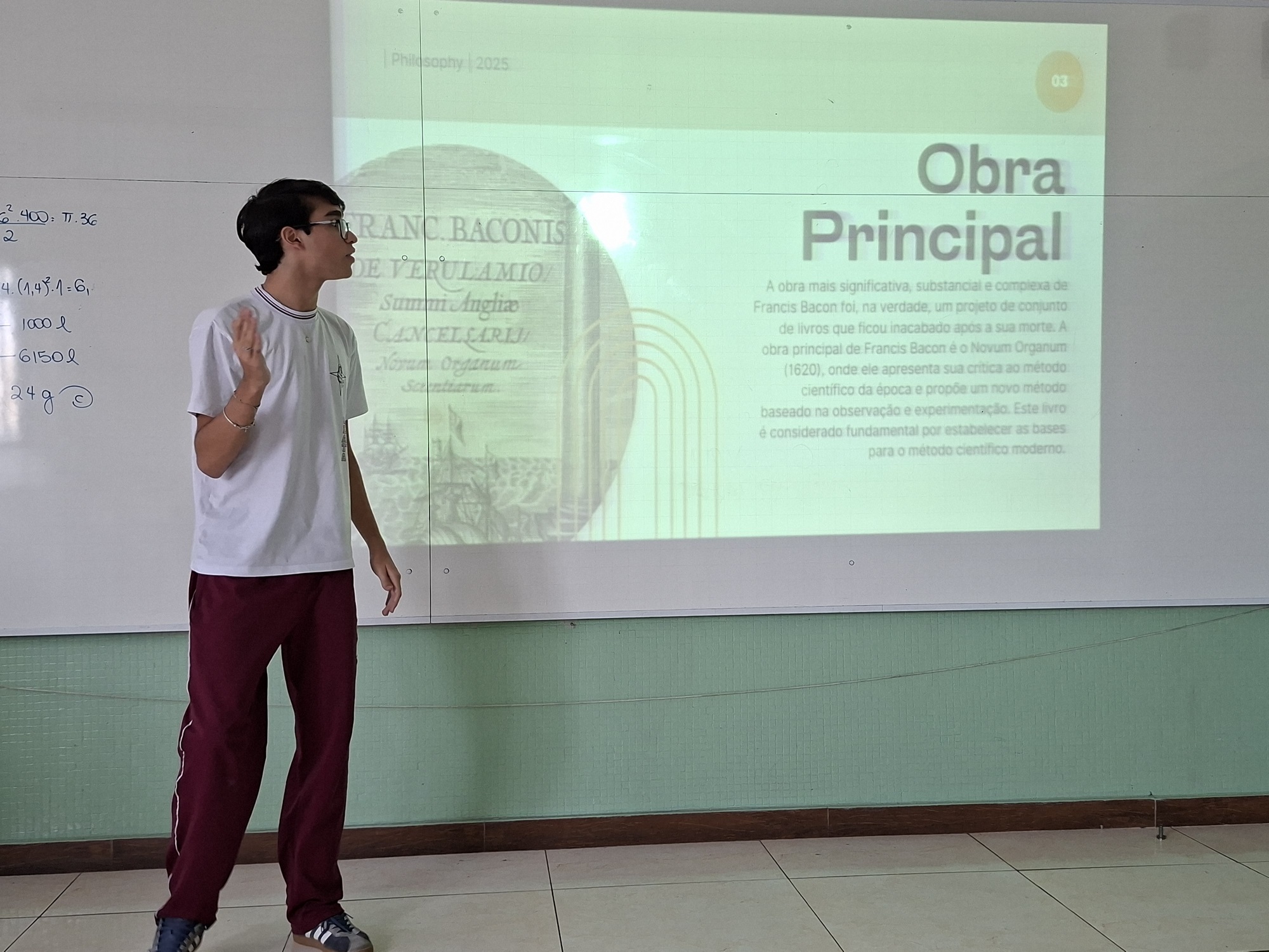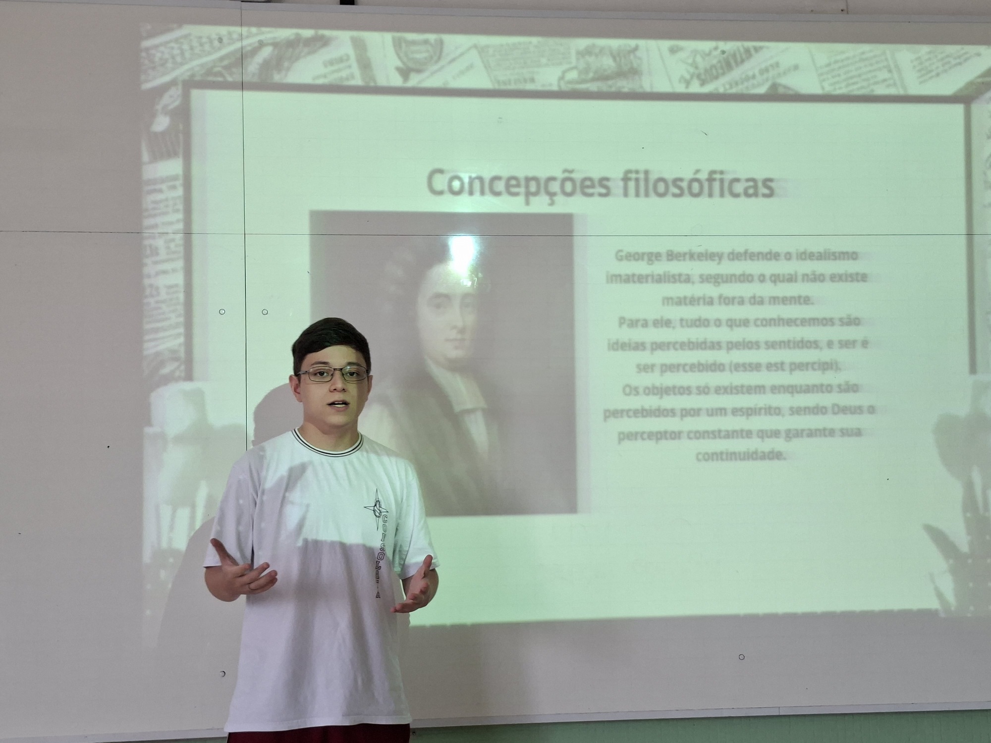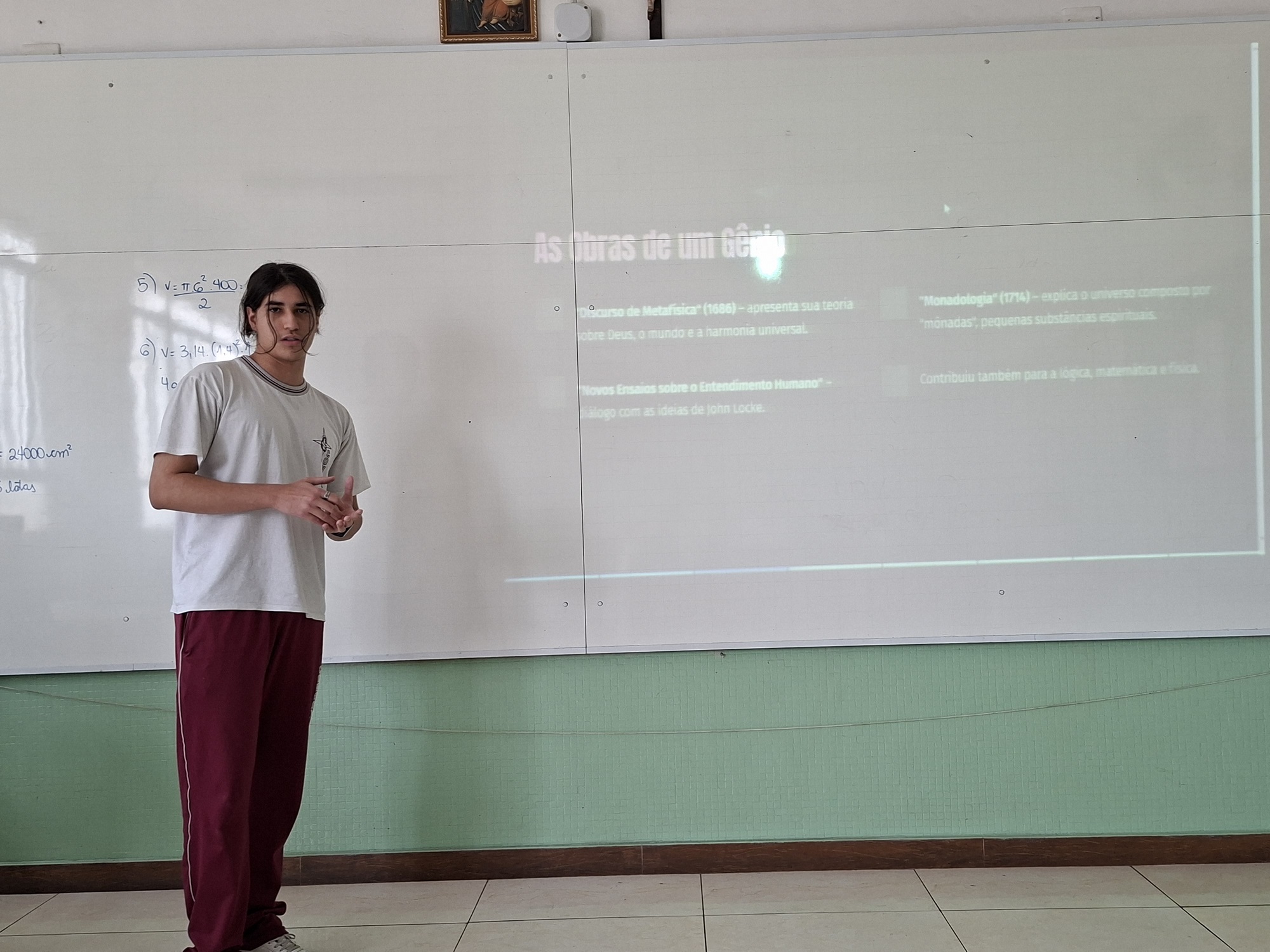 Os estudantes da 2ª Série B do Ensino Médio, orientados pelo professor João, protagonizaram seminários instigantes nas aulas de Filosofia, Tecnologia e Inovação.