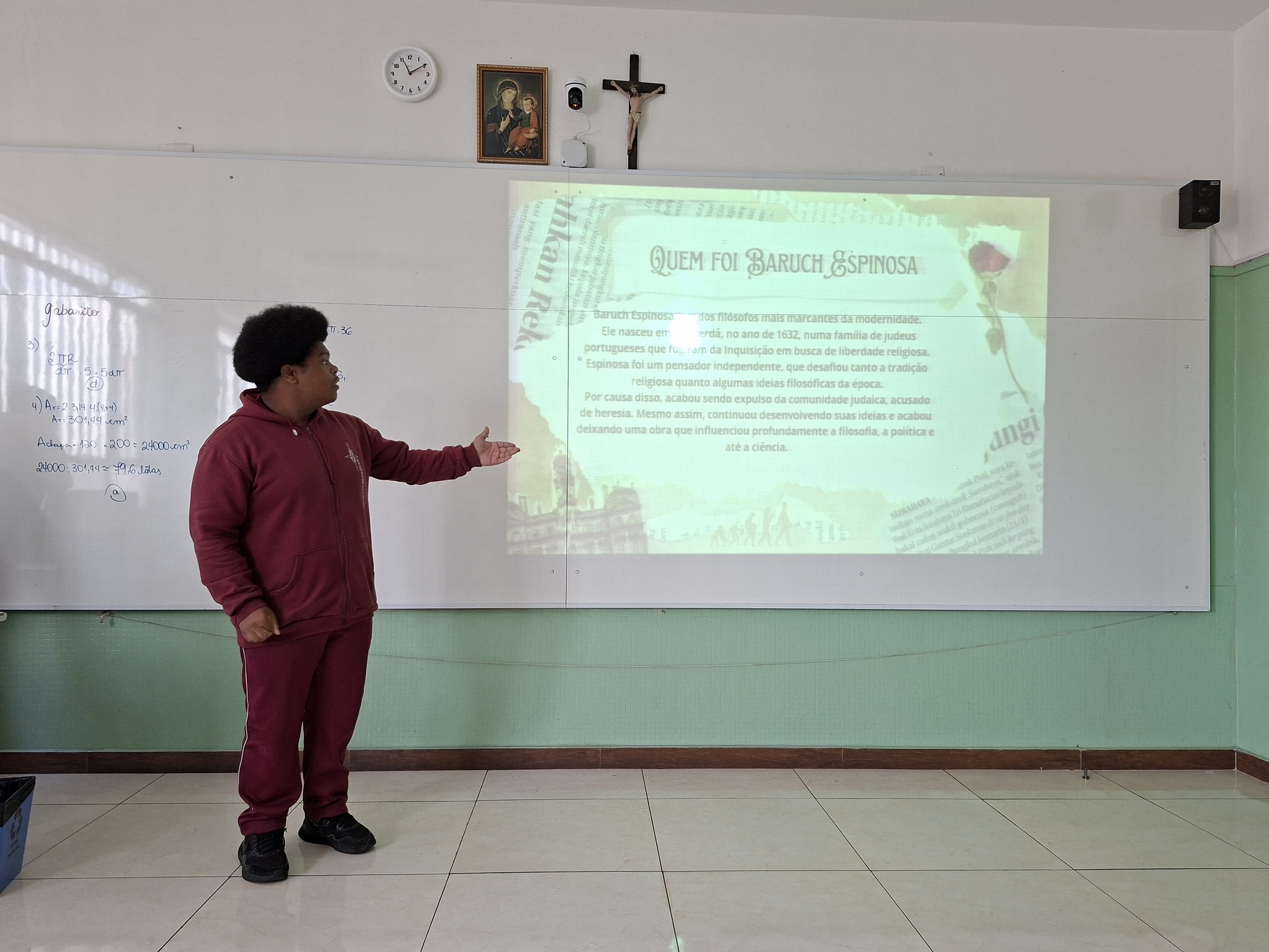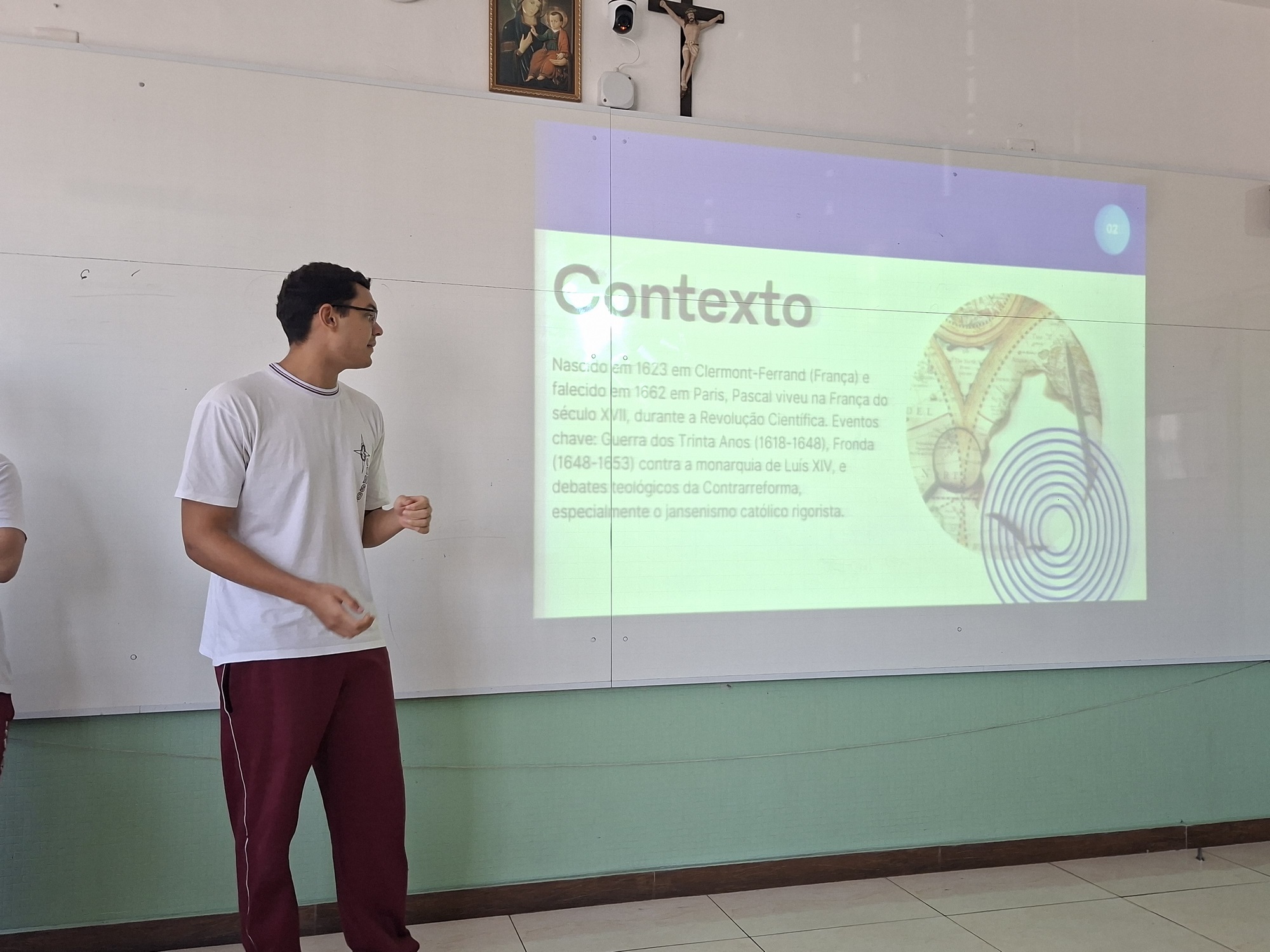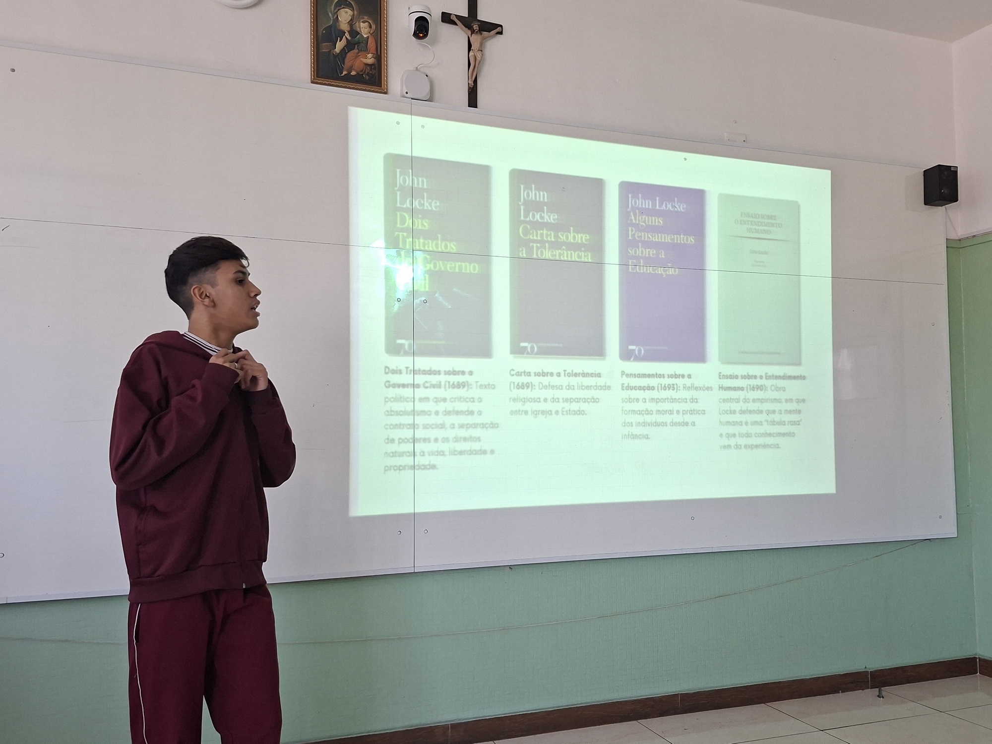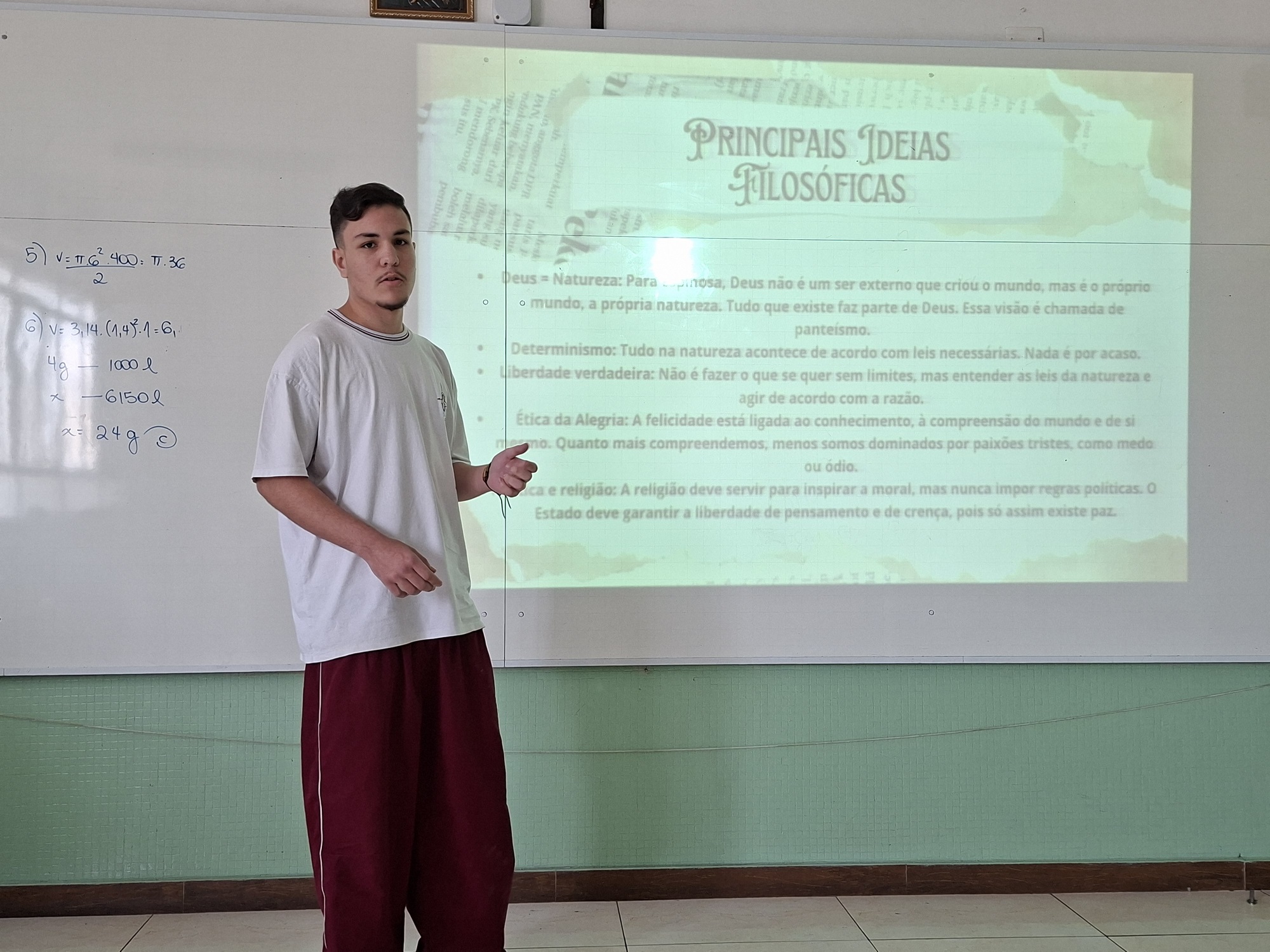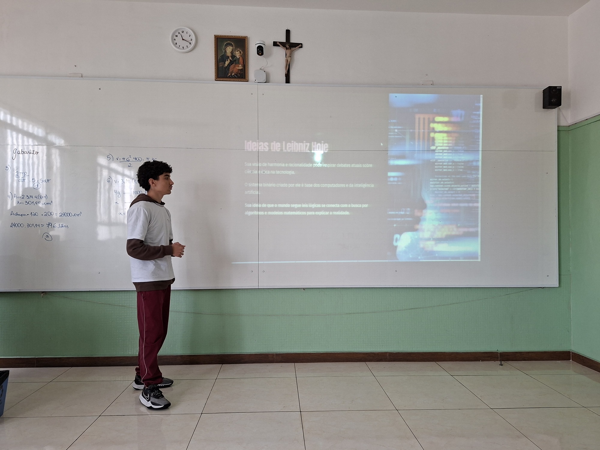 Os estudantes da 2ª Série B do Ensino Médio, orientados pelo professor João, protagonizaram seminários instigantes nas aulas de Filosofia, Tecnologia e Inovação.