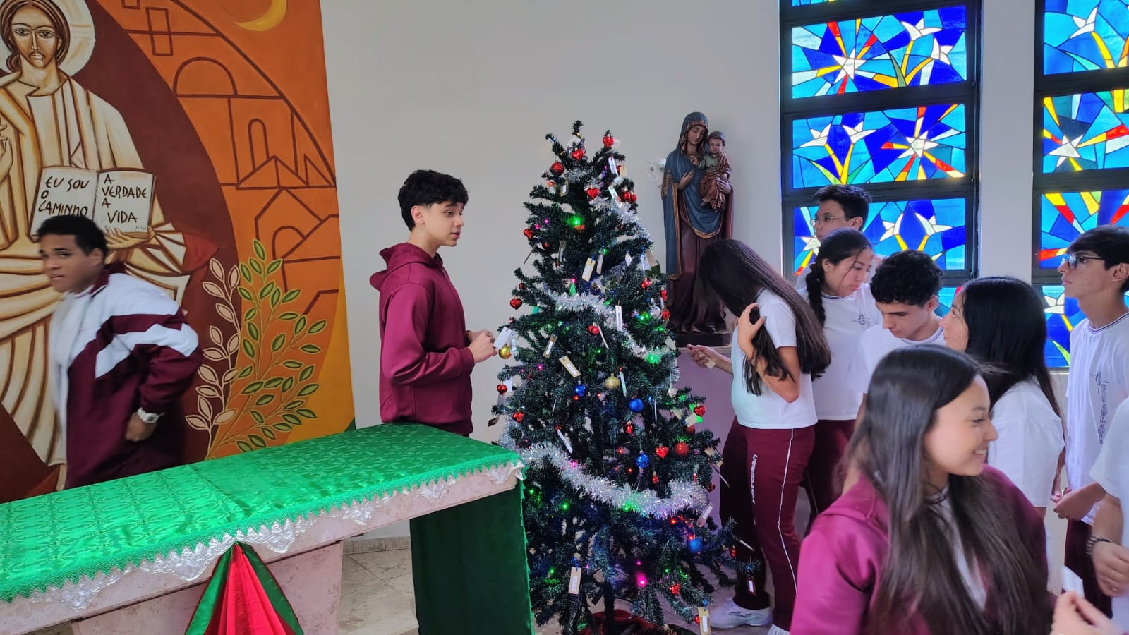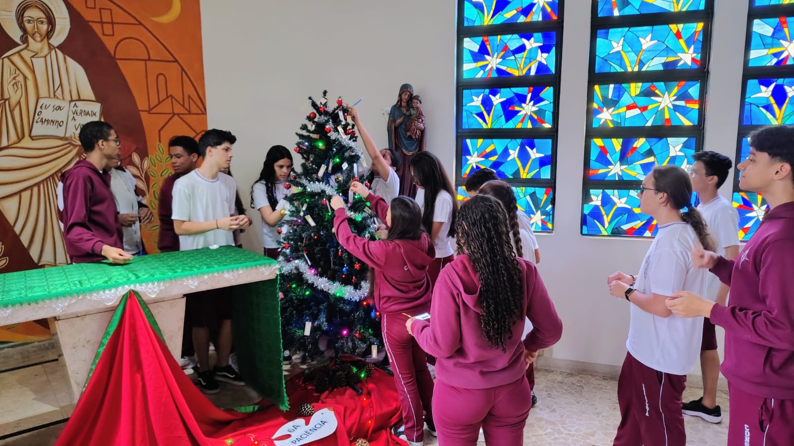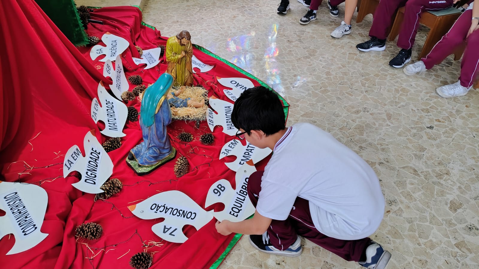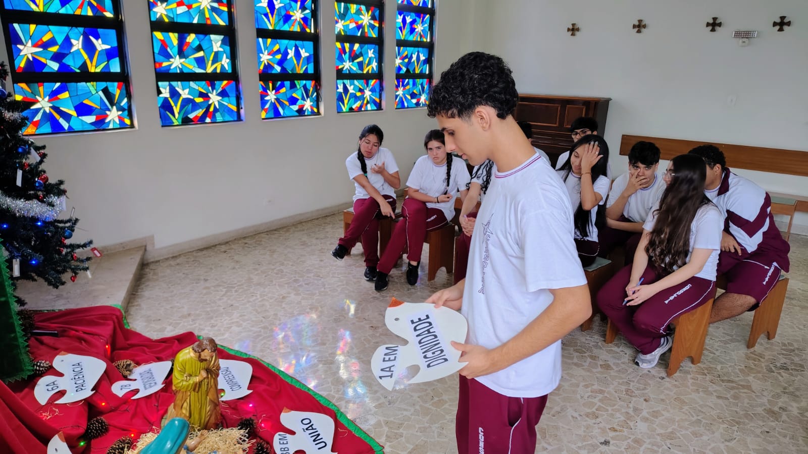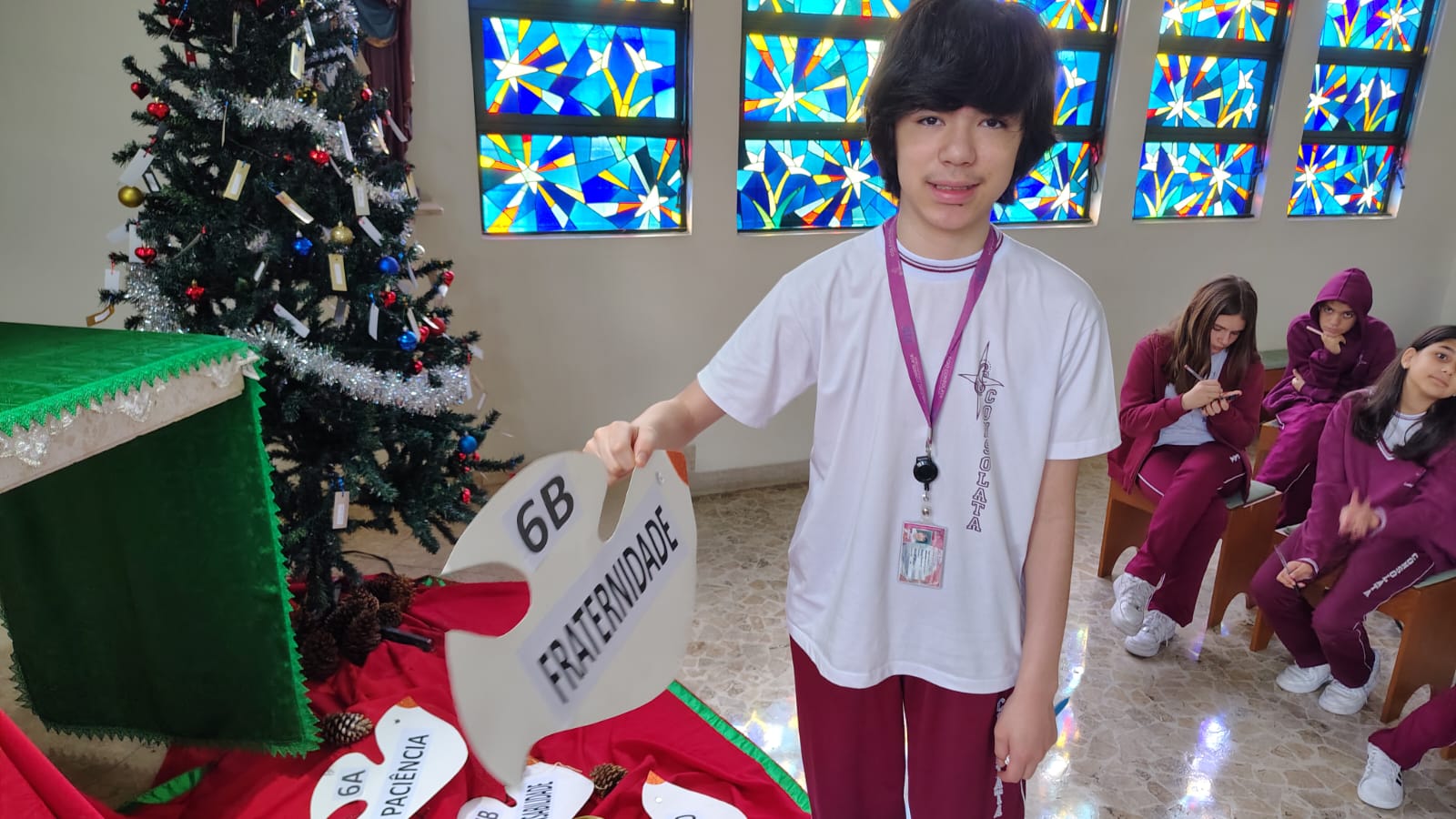 Principalmente quando temos vários motivos que nos faz parar e refletir em tudo que acontece na nossa vida. Neste final de semestre, todas as turmas do Ensino Fundamental 2 e Ensino Médio, vivenciaram um momento de ação de graças, agradecendo a Deus por tudo que aconteceu durante o ano letivo. Uma celebração marcada por simbolismos e memórias, a começar pelas virtudes escolhidas no início do ano e vivenciadas no seu decorrer, os acontecimentos que os estudantes levarão para vida e para terminar foi lembrado o significado dos desejos de Natal e a importância de prepararmos bem o nosso coração para receber o menino Jesus. De graça recebemos para sempre agradecer a Deus pelas suas maravilhas. Que tenhamos um santo Natal e digamos, obrigado Senhor.
