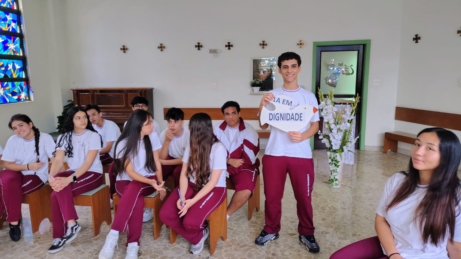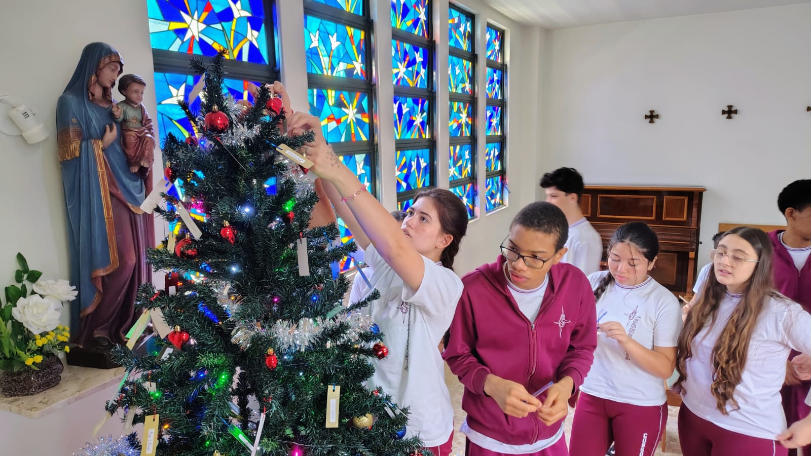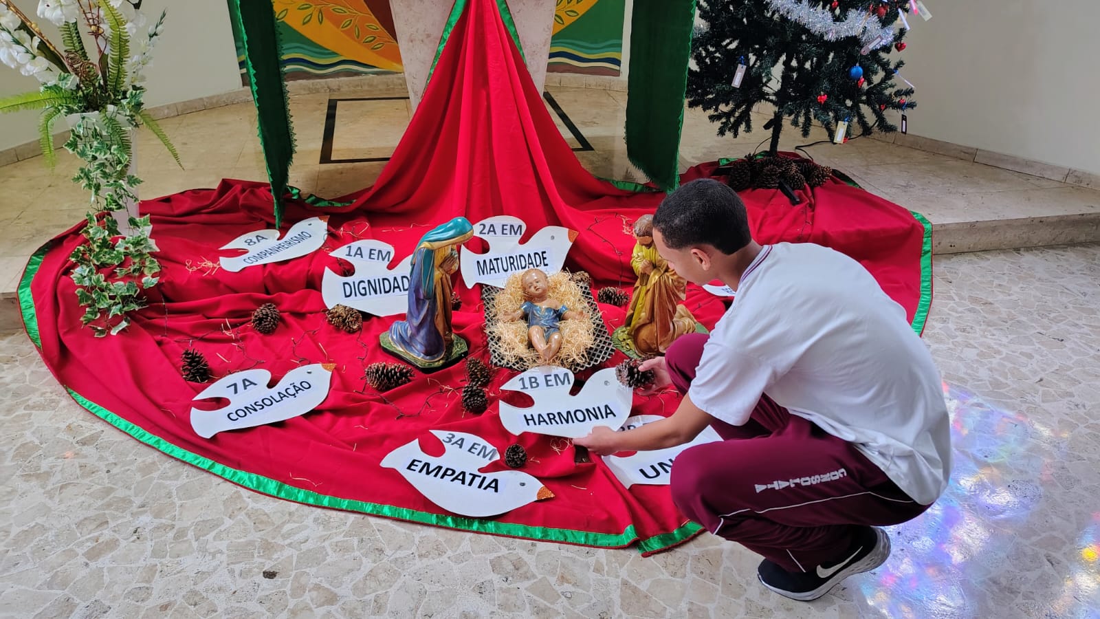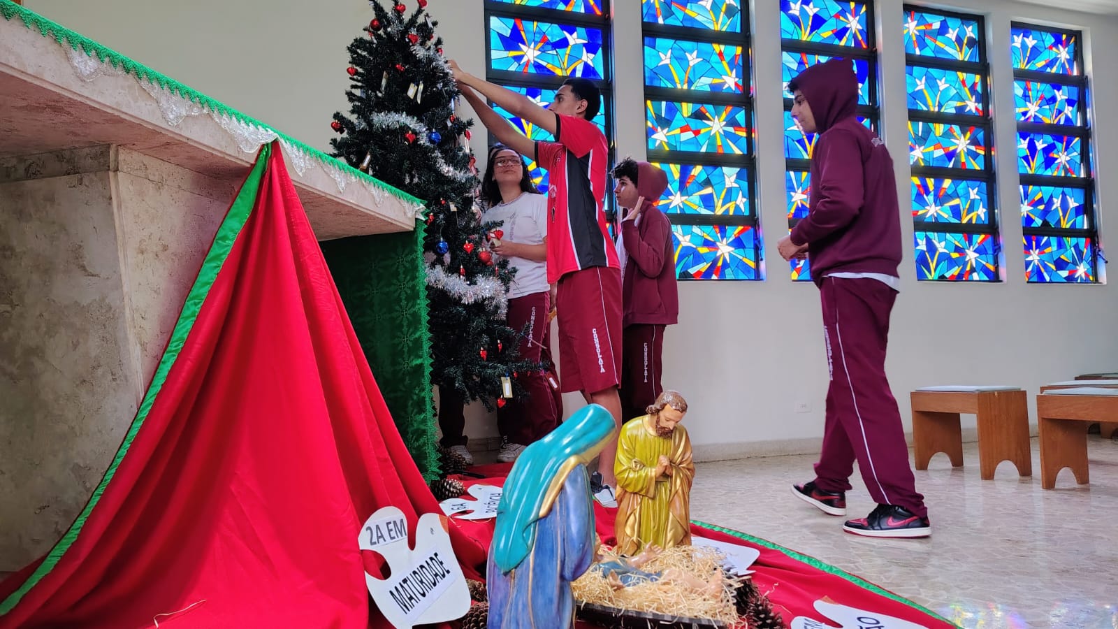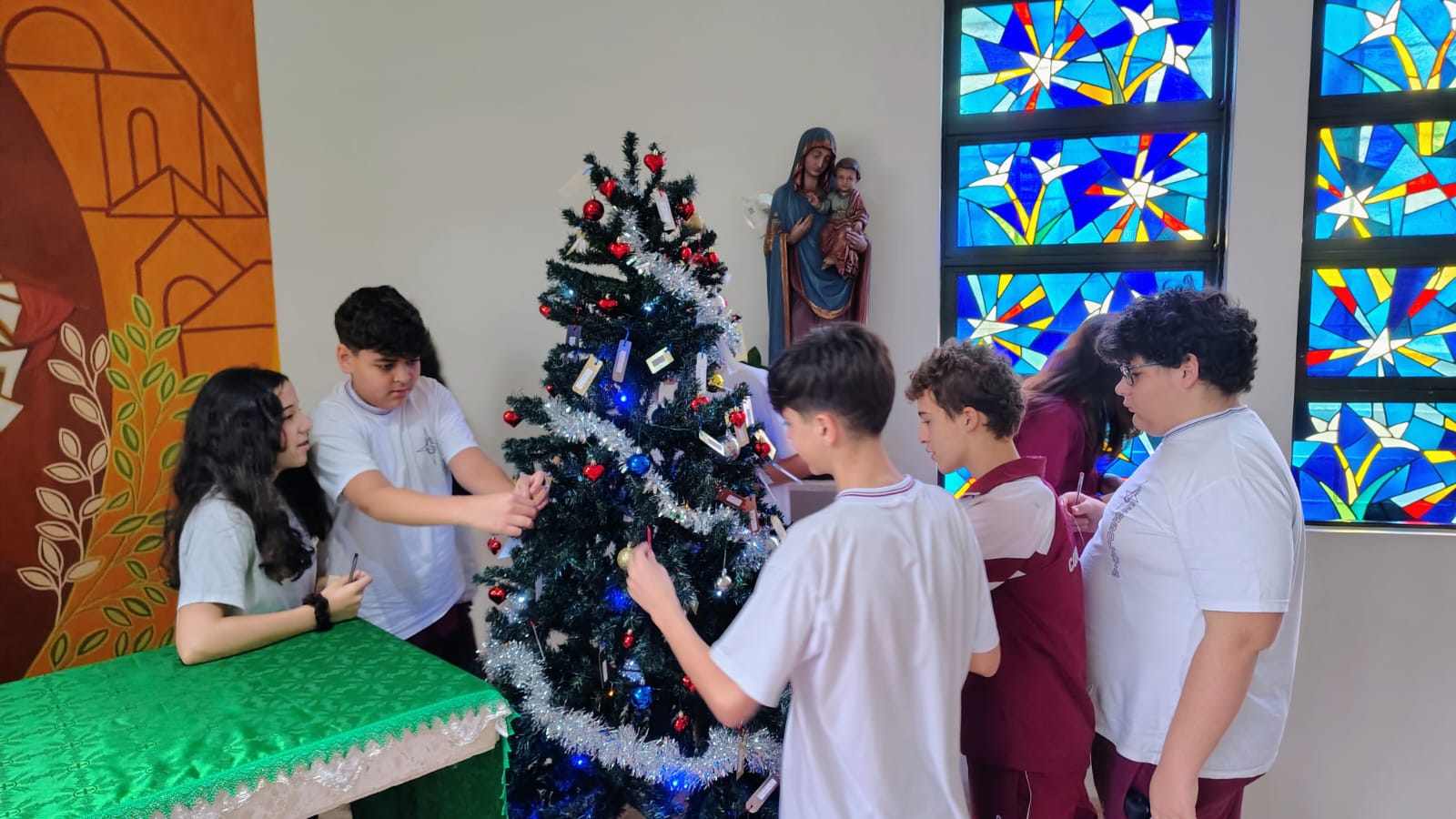 Principalmente quando temos vários motivos que nos faz parar e refletir em tudo que acontece na nossa vida. Neste final de semestre, todas as turmas do Ensino Fundamental 2 e Ensino Médio, vivenciaram um momento de ação de graças, agradecendo a Deus por tudo que aconteceu durante o ano letivo. Uma celebração marcada por simbolismos e memórias, a começar pelas virtudes escolhidas no início do ano e vivenciadas no seu decorrer, os acontecimentos que os estudantes levarão para vida e para terminar foi lembrado o significado dos desejos de Natal e a importância de prepararmos bem o nosso coração para receber o menino Jesus. De graça recebemos para sempre agradecer a Deus pelas suas maravilhas. Que tenhamos um santo Natal e digamos, obrigado Senhor.