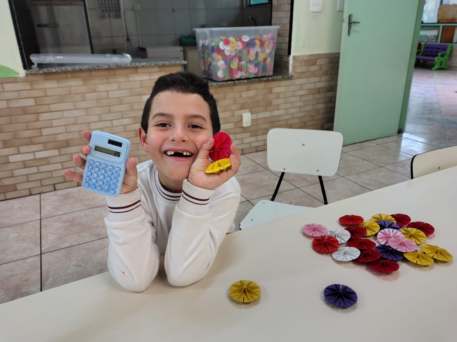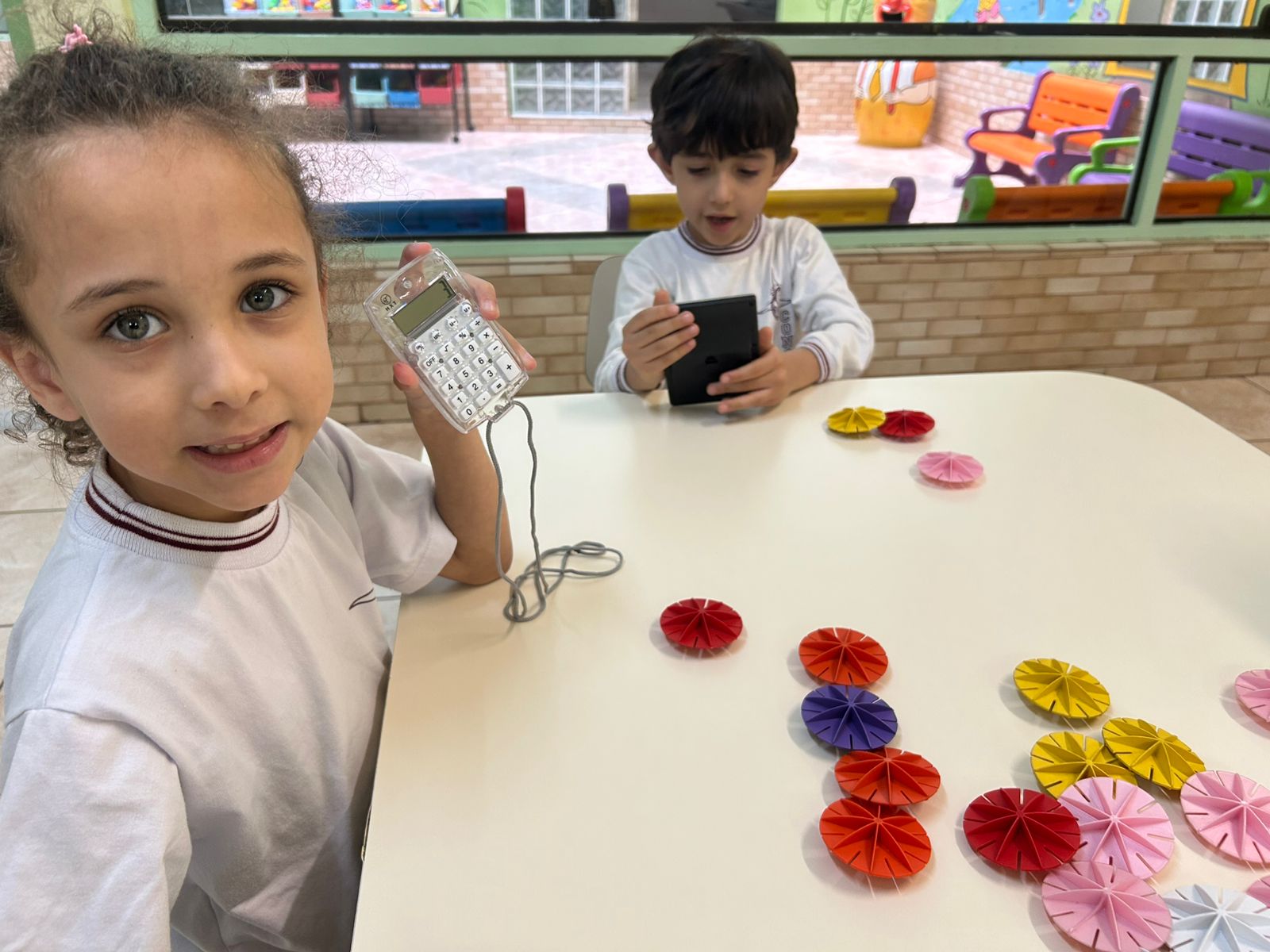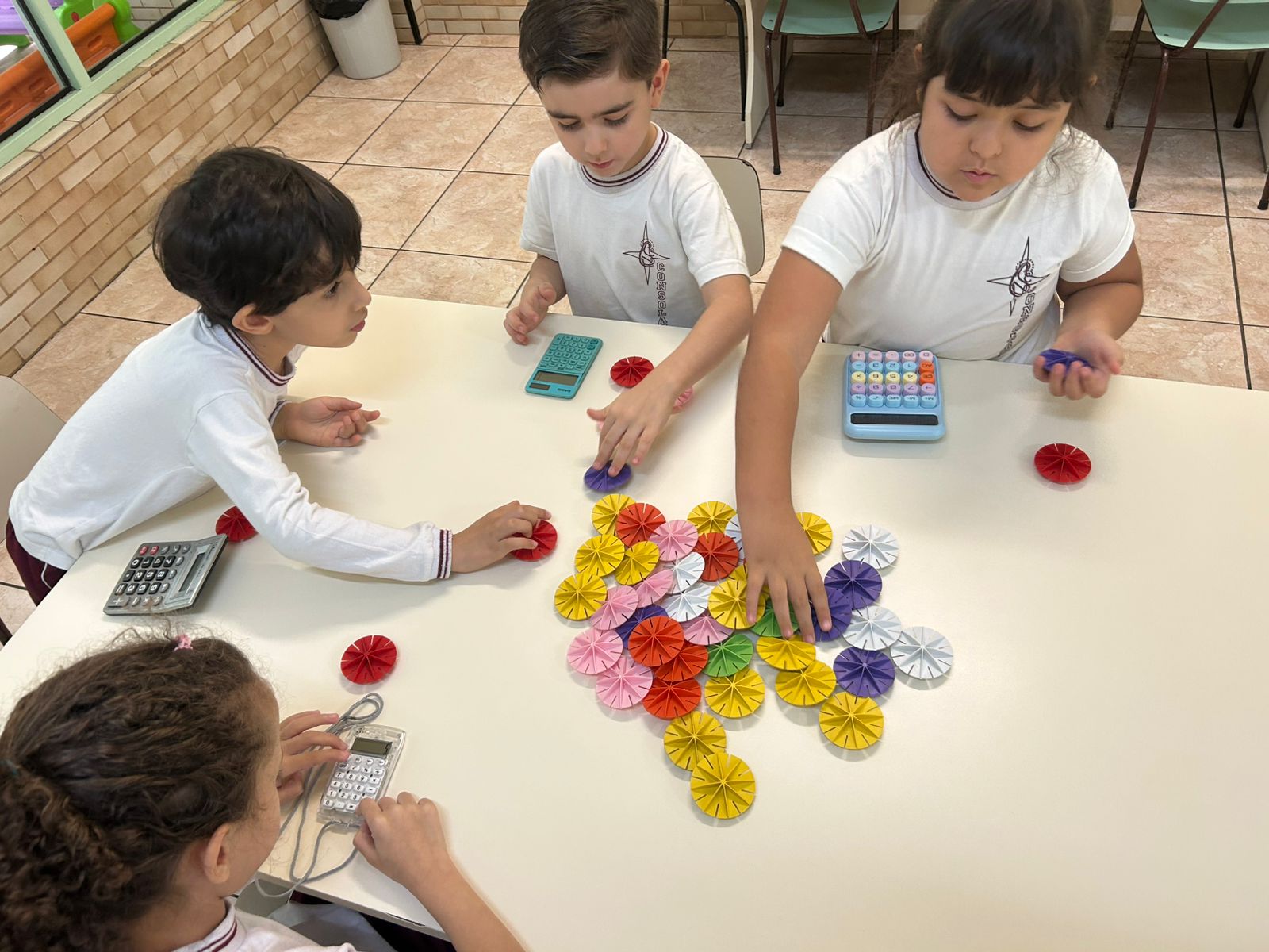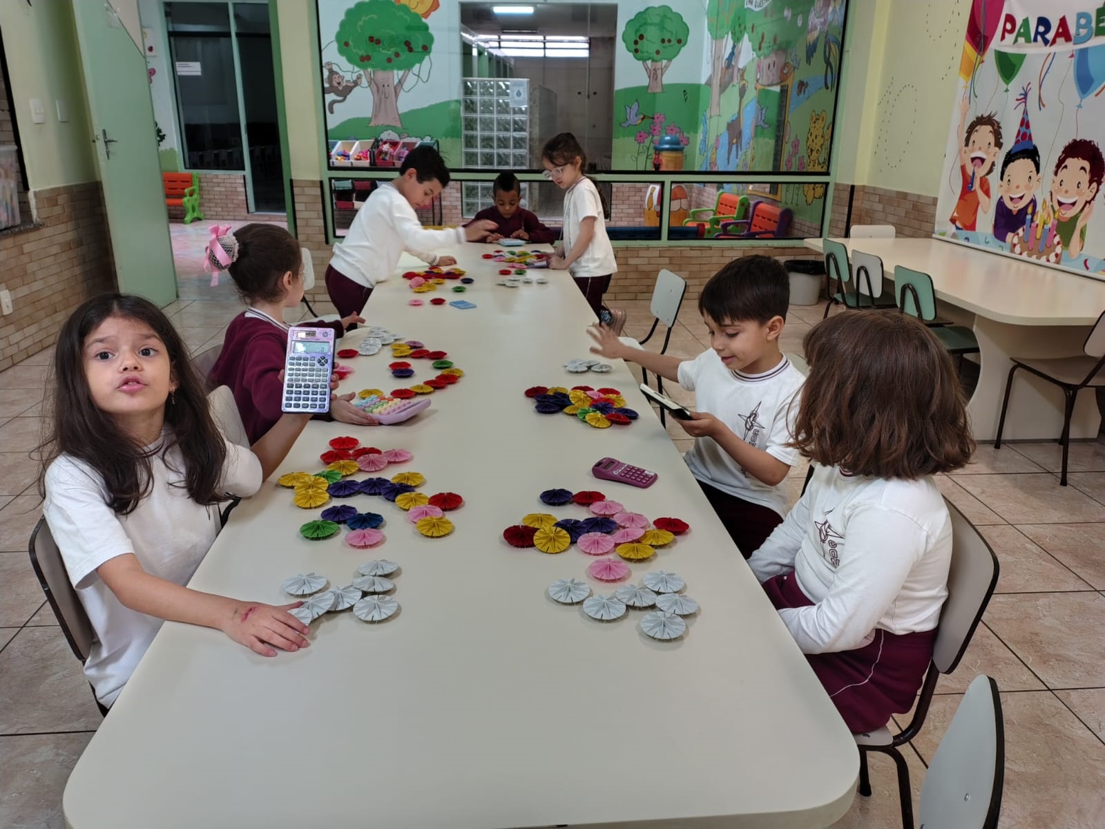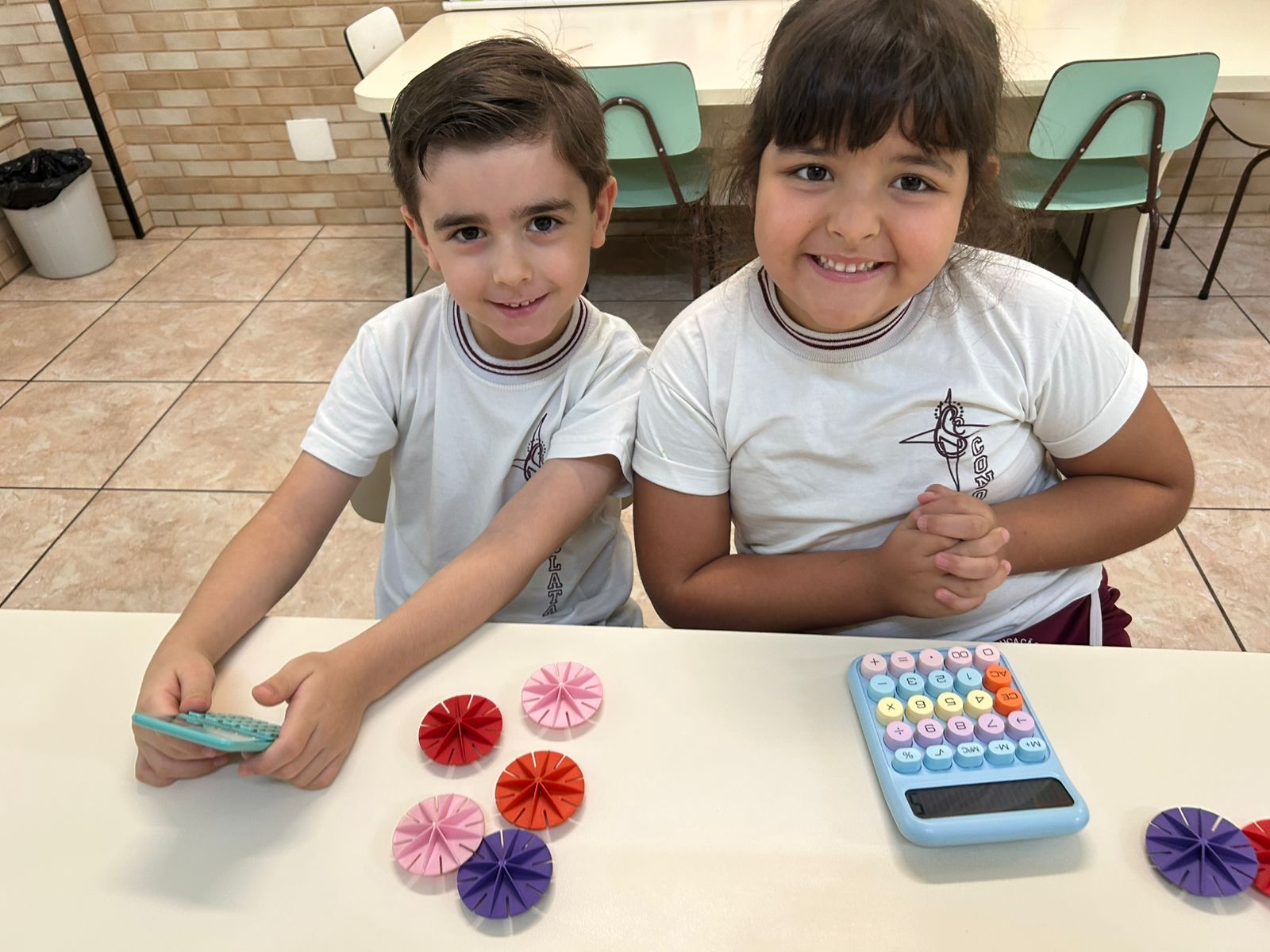 O Infantil 3, explorou as somas simples de um jeitinho diferente: usando pecinhas, contando com os amigos e registrando tudo na calculadora!