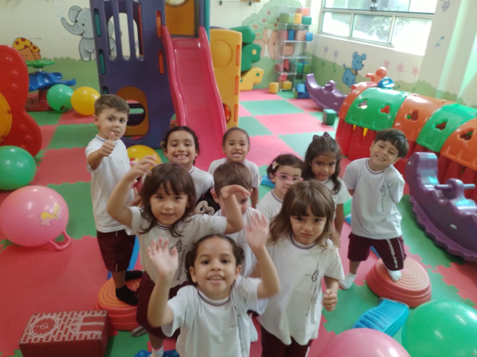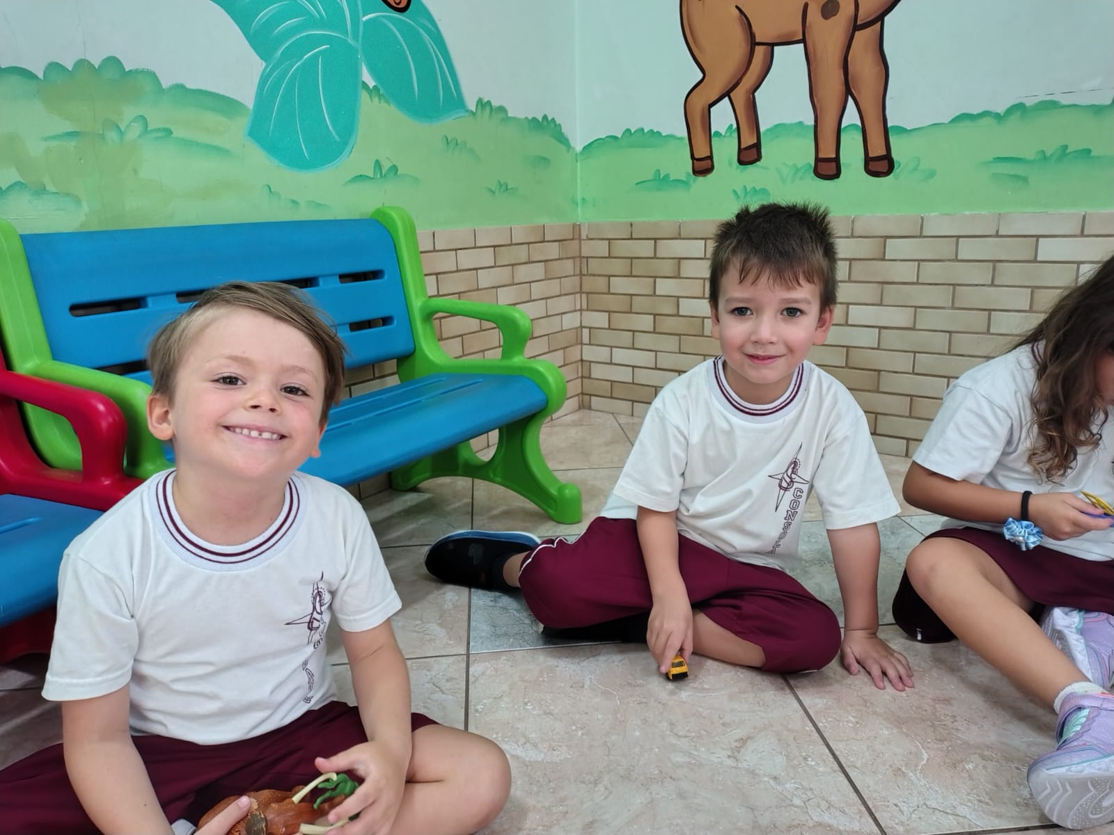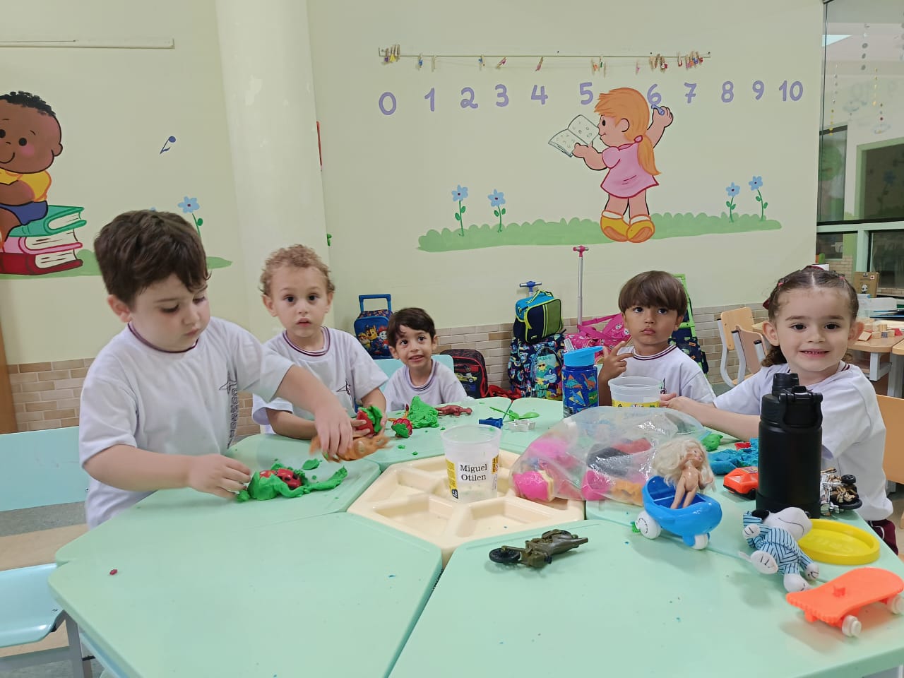 Os alunos da educação infantil chegaram ao colégio com muita energia e disposição.