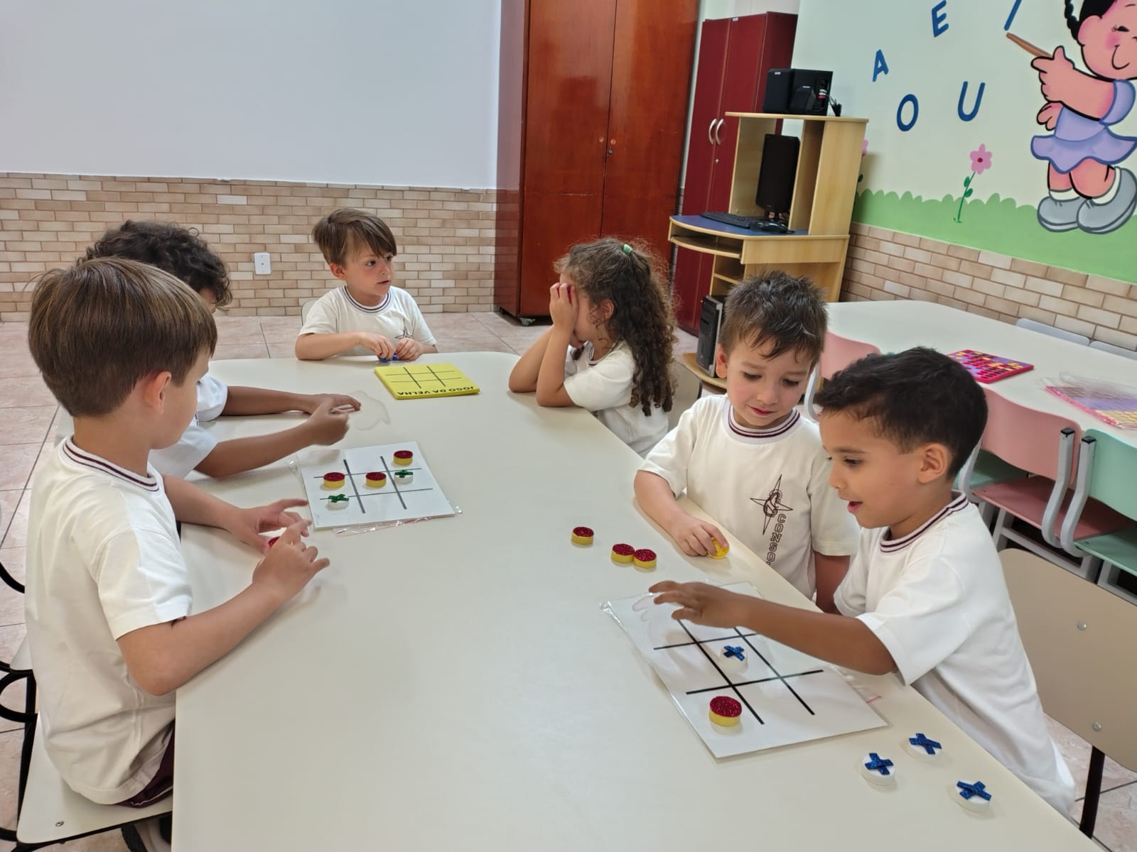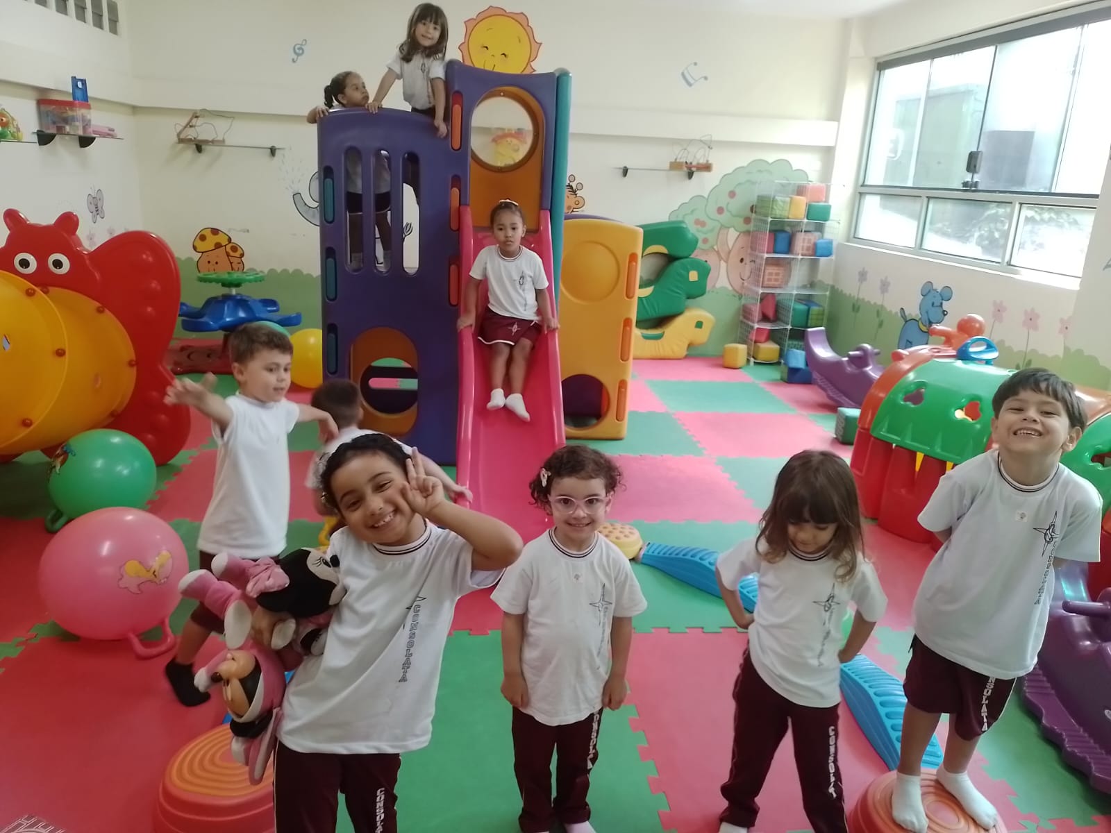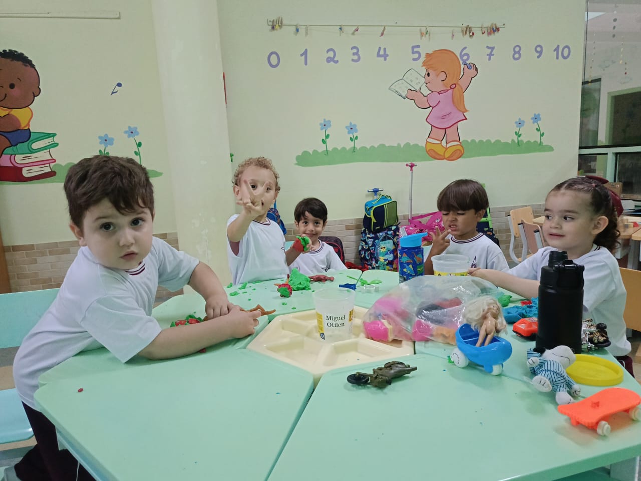 Os alunos da educação infantil chegaram ao colégio com muita energia e disposição.