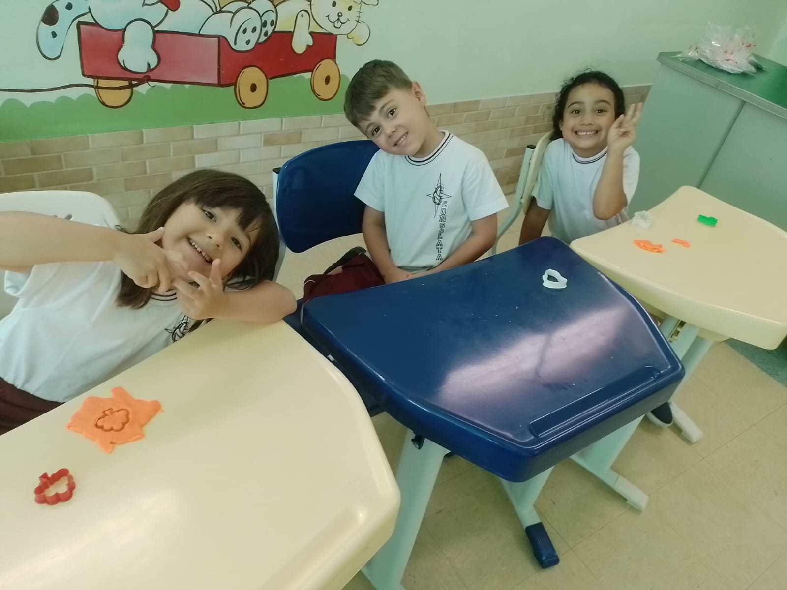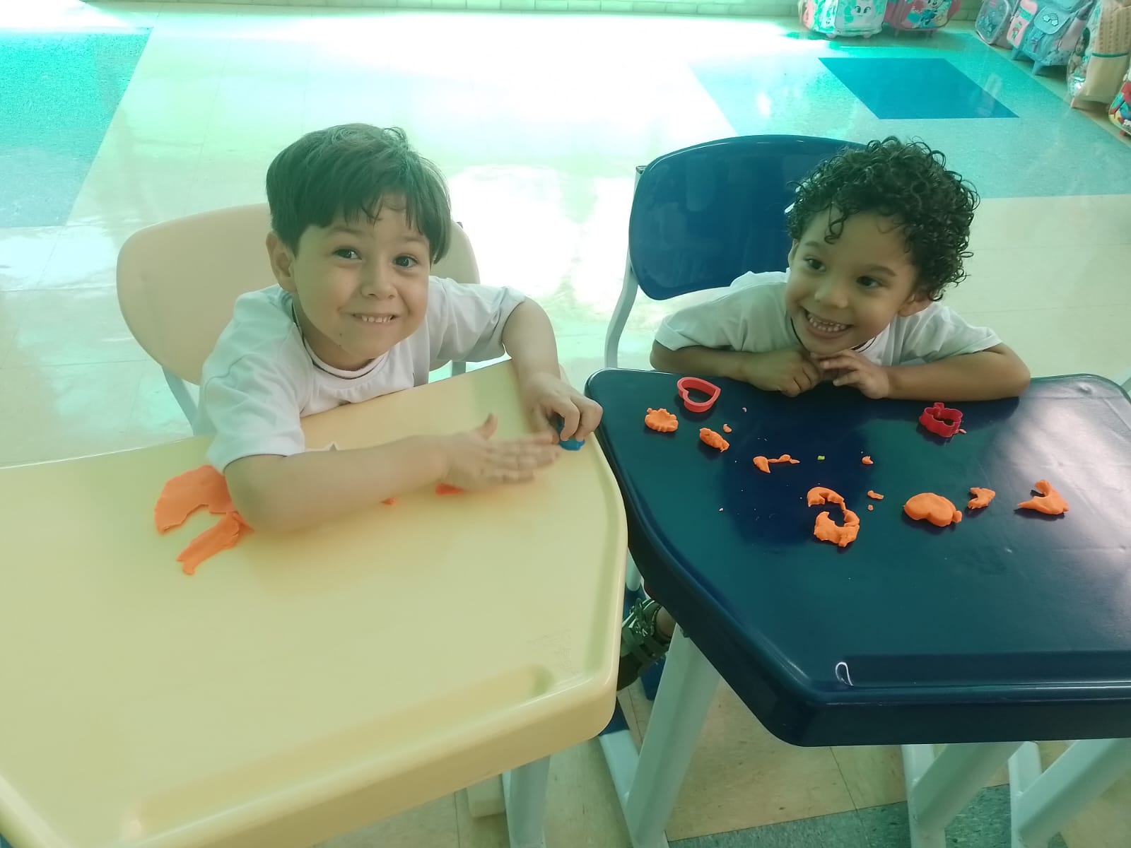 Nesse momento especial, promovemos muitas brincadeiras, fizemos um tour pelo colégio para que conheçam melhor o espaço e todos os amigos que nele se encontra, nos divertimos muito na brinquedoteca e na salinha com brinquedos pedagógicos, massinha e jogos.