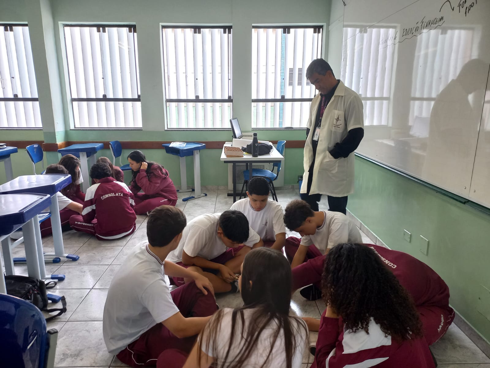 Após a conclusão da atividade, foi promovida uma roda de conversa, na qual os alunos refletiram e dialogaram sobre a importância do trabalho em equipe, da ajuda mútua e da união para alcançar objetivos em comum.