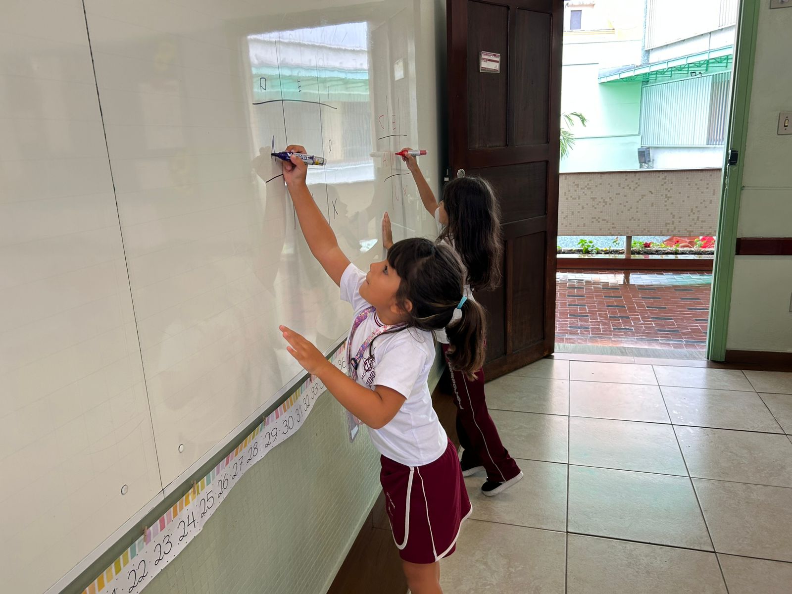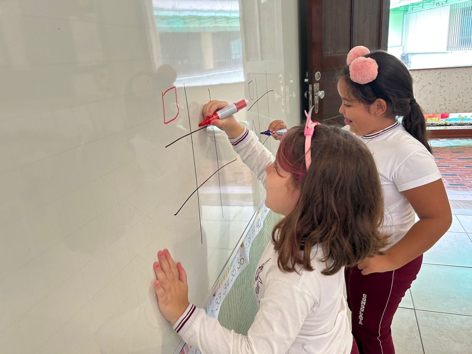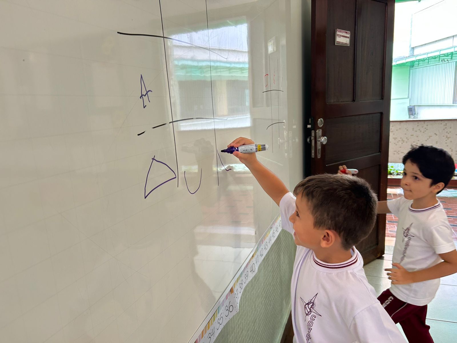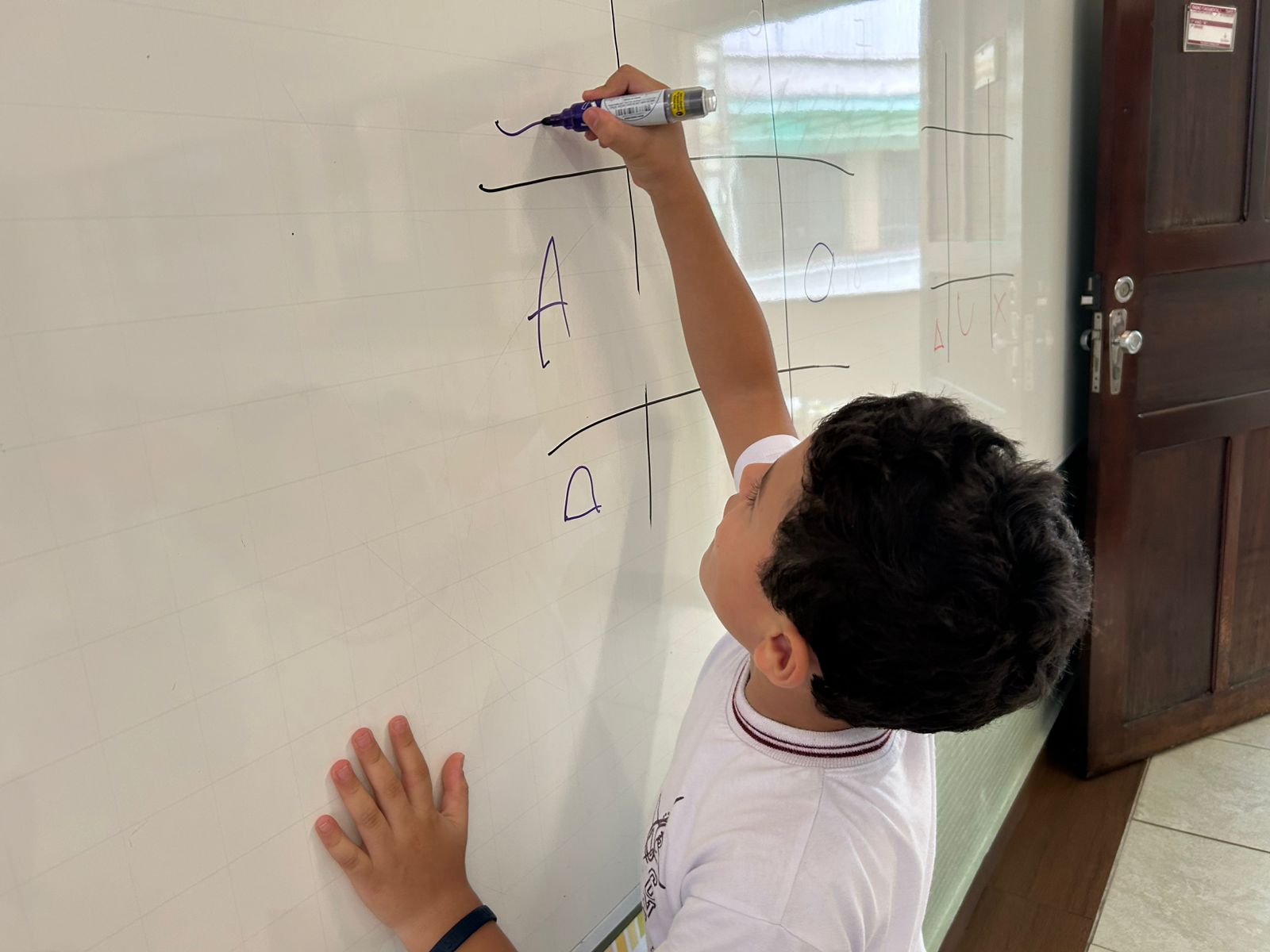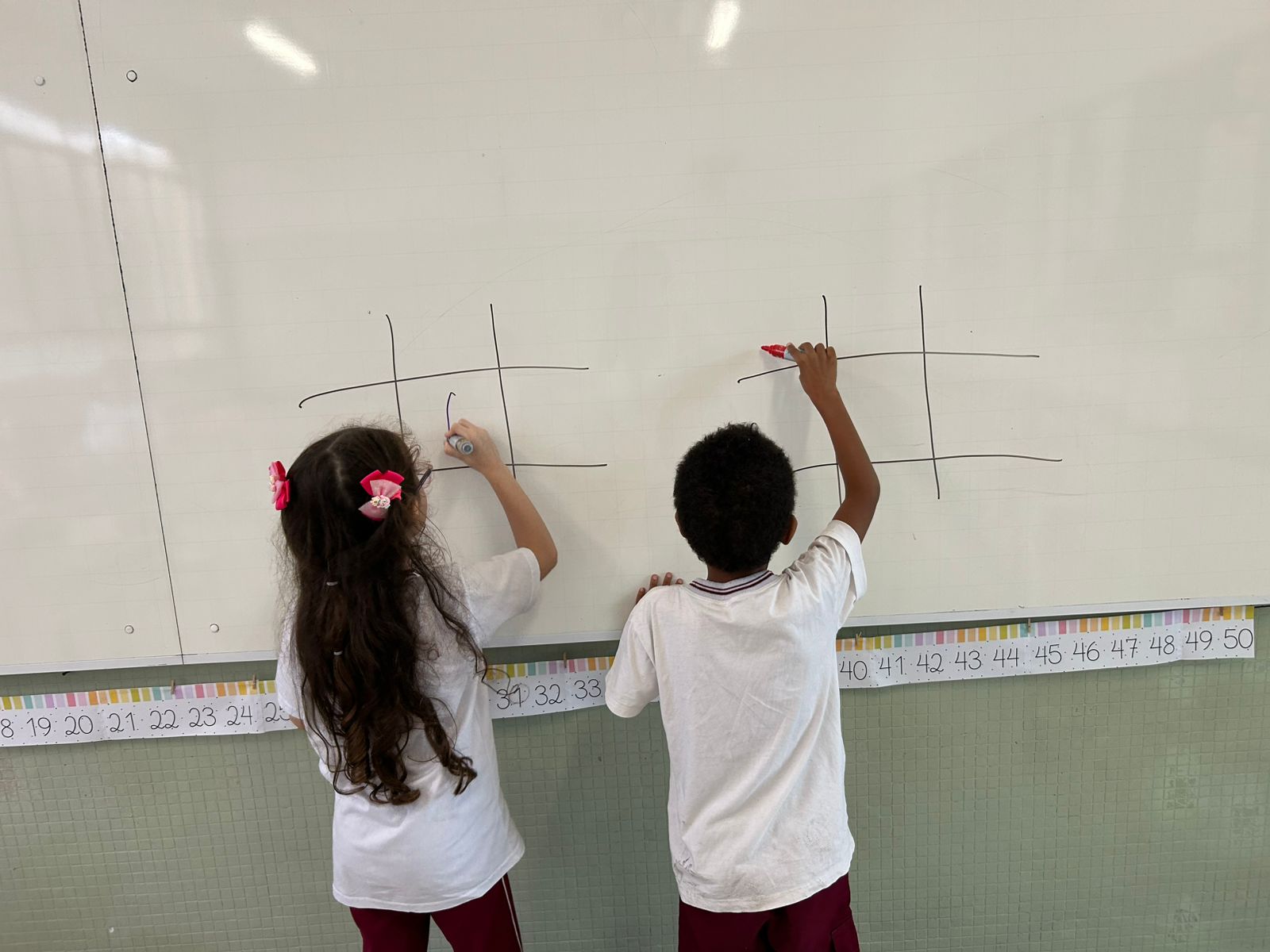 Com o jogo de memorização, os alunos do 1º ano A desenvolveram a atenção, o reconhecimento de letras e símbolos, além do raciocínio lógico, de um jeito leve, divertido e cheio de descobertas. A atividade estimulou a concentração, a interação entre os colegas e o prazer em aprender brincando, tornando o processo de aprendizagem ainda mais significativo.