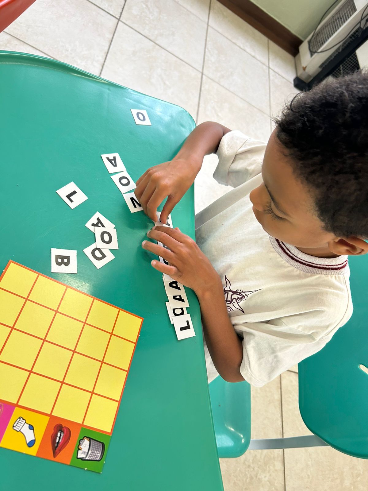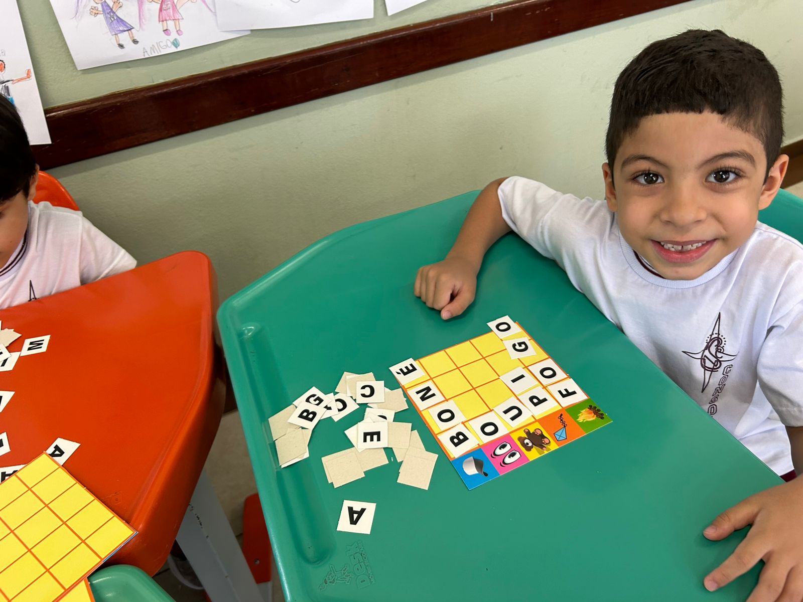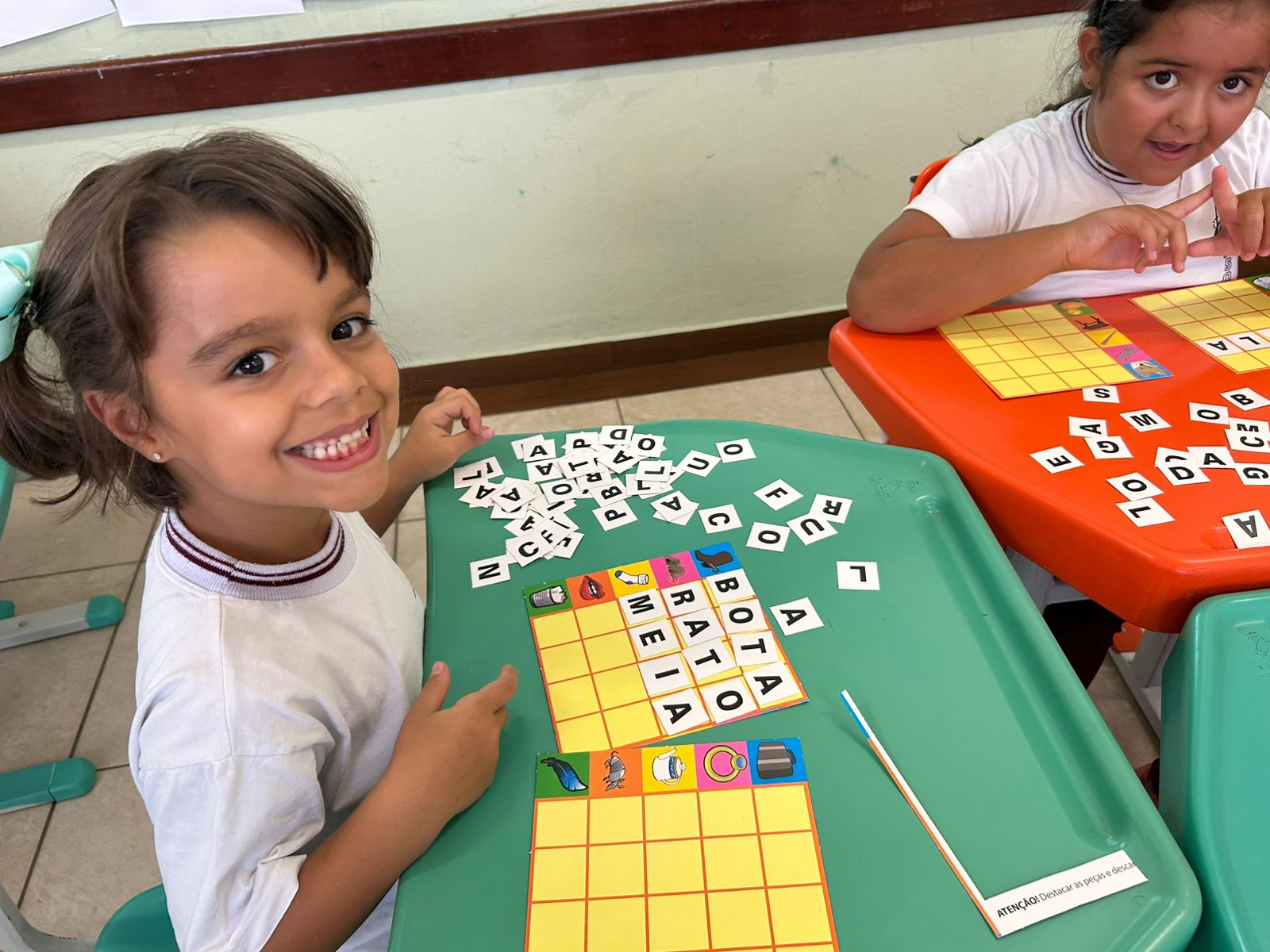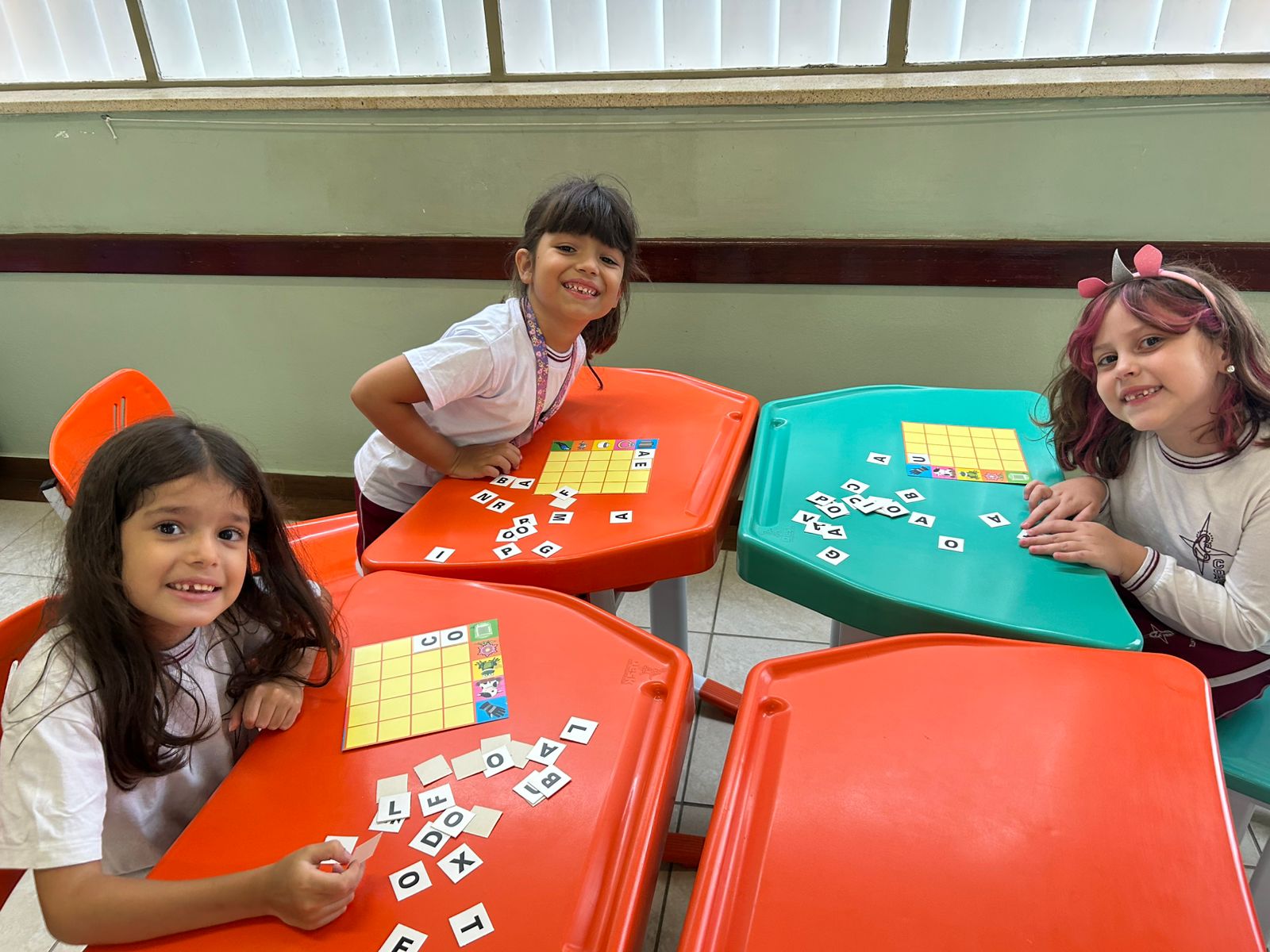 Em grupos, os alunos do 1º ano A, exploraram as letras móveis, montando palavras, trocando ideias e fortalecendo a leitura de forma lúdica e colaborativa.