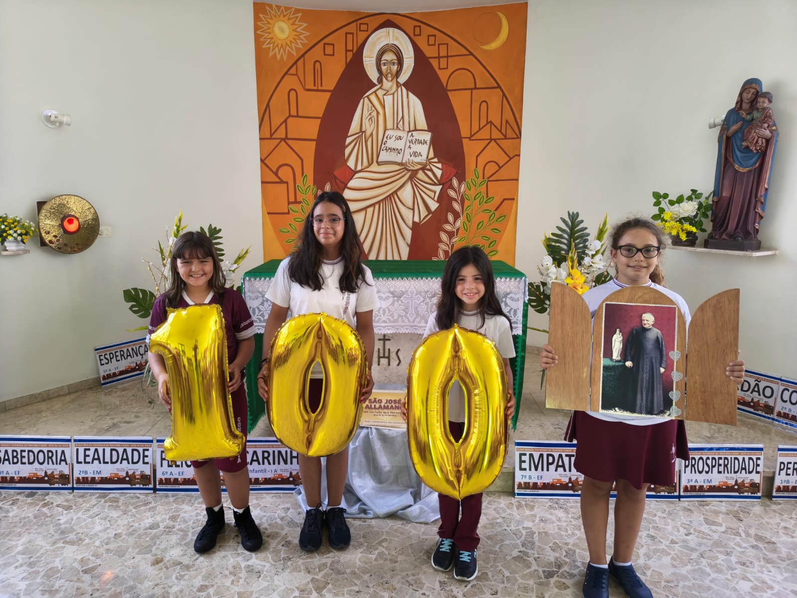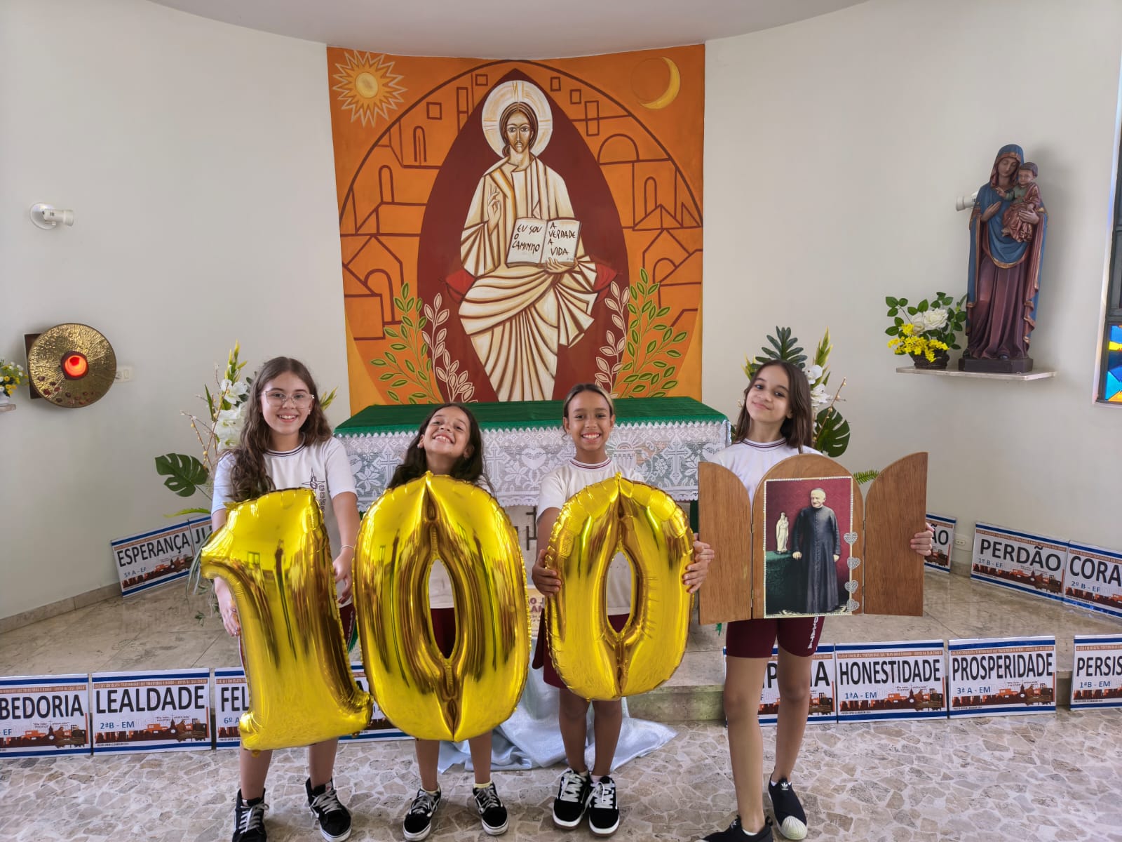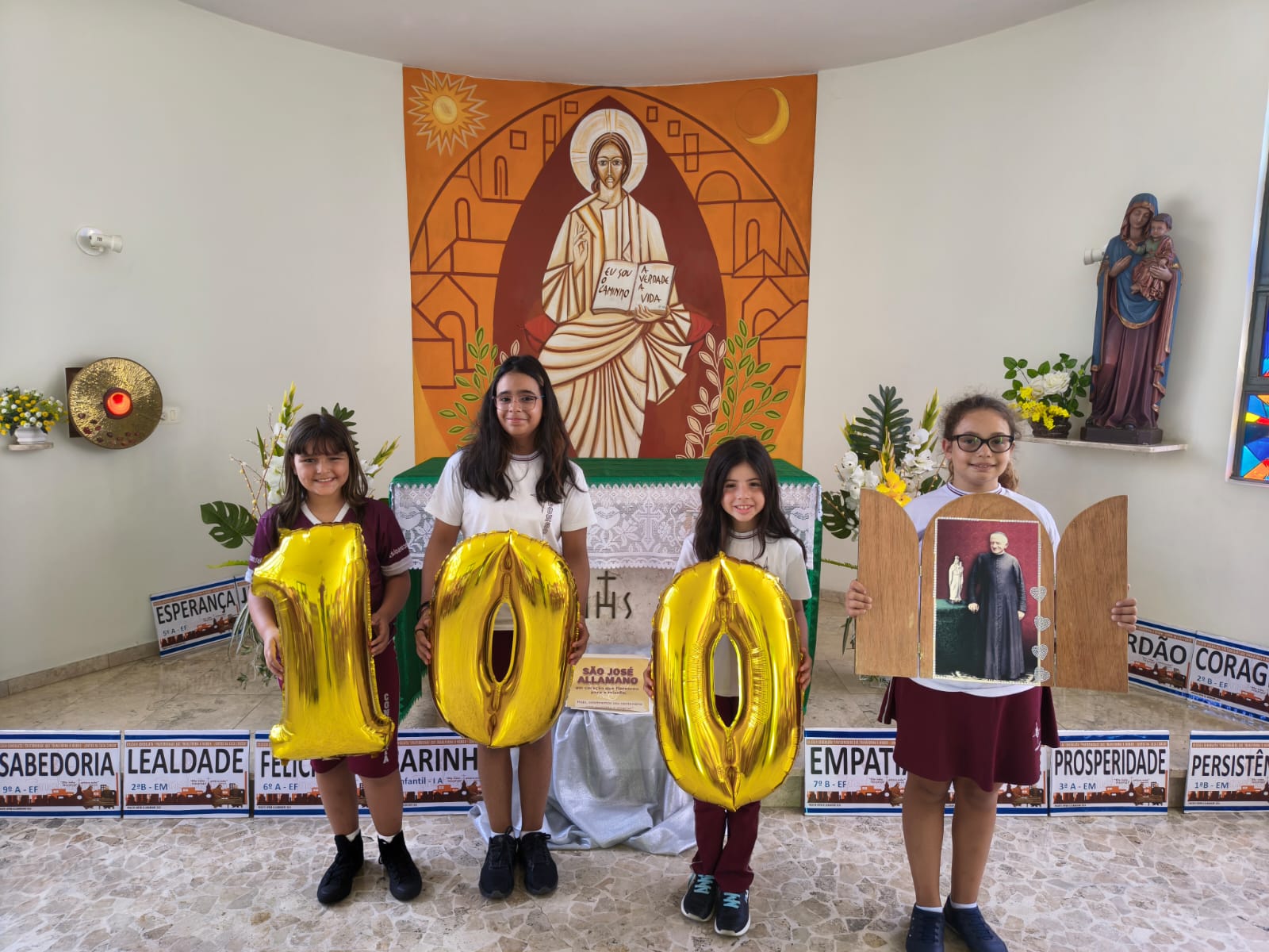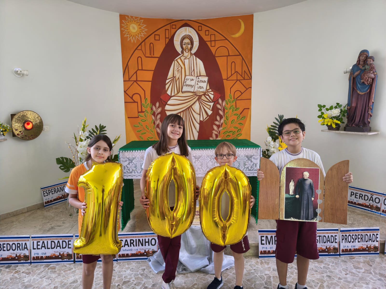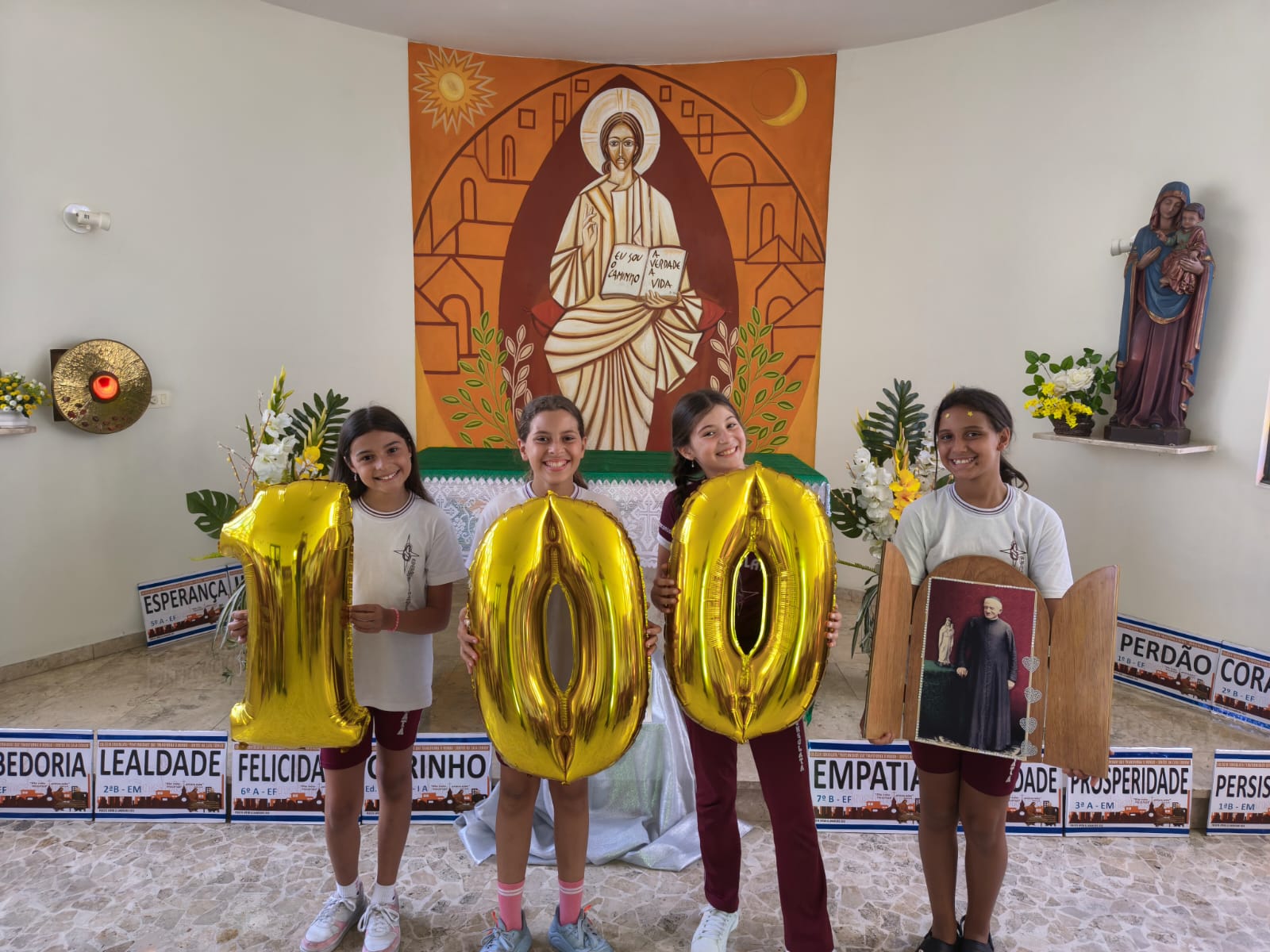 Entre silêncio, oração e partilha, os alunos do 5º ano viveram um momento especial na capela ao refletirem sobre o centenário de São José Allamano. Ao segurarem a Capelinha e o número 100, expressaram não apenas uma data histórica, mas a força de uma herança viva que continua inspirando a Família Consolata a permanecer unida na fé, na missão e no compromisso com a formação integral da pessoa humana. Que este centenário renove em cada coração o desejo de seguir além fronteiras, com coragem, esperança e espírito missionário.