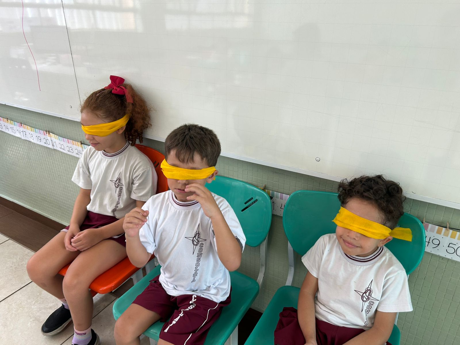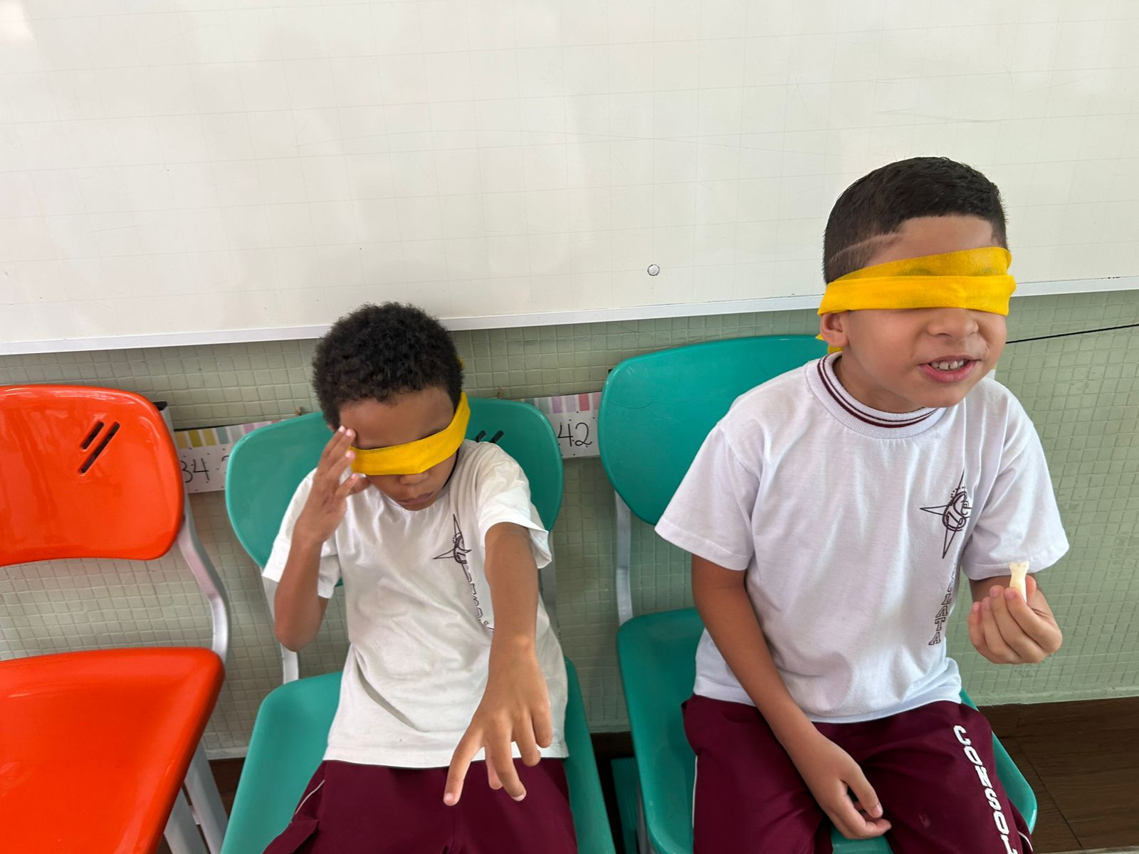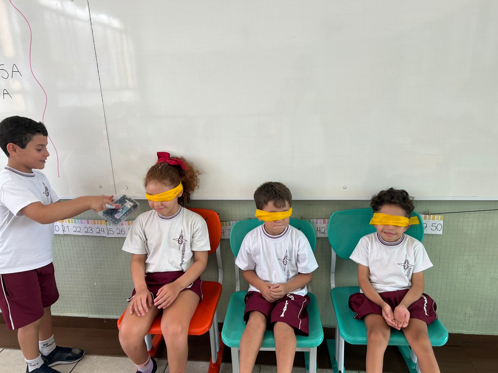 Os alunos do 1º ano A mergulharam no universo dos cinco sentidos na aula de Ciências — e, claro, aprenderam do jeito que criança aprende melhor: brincando!