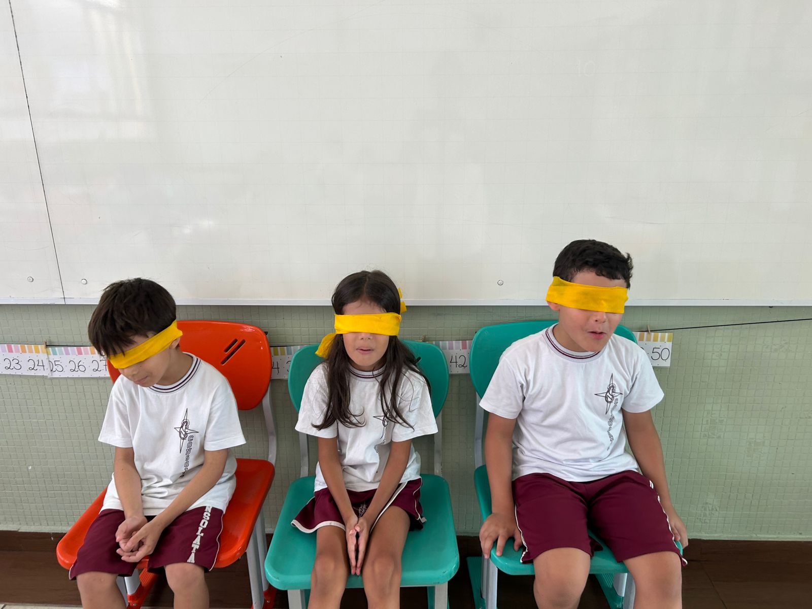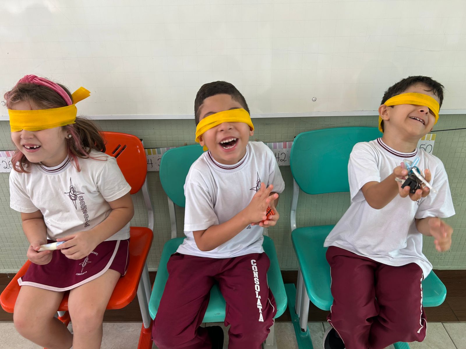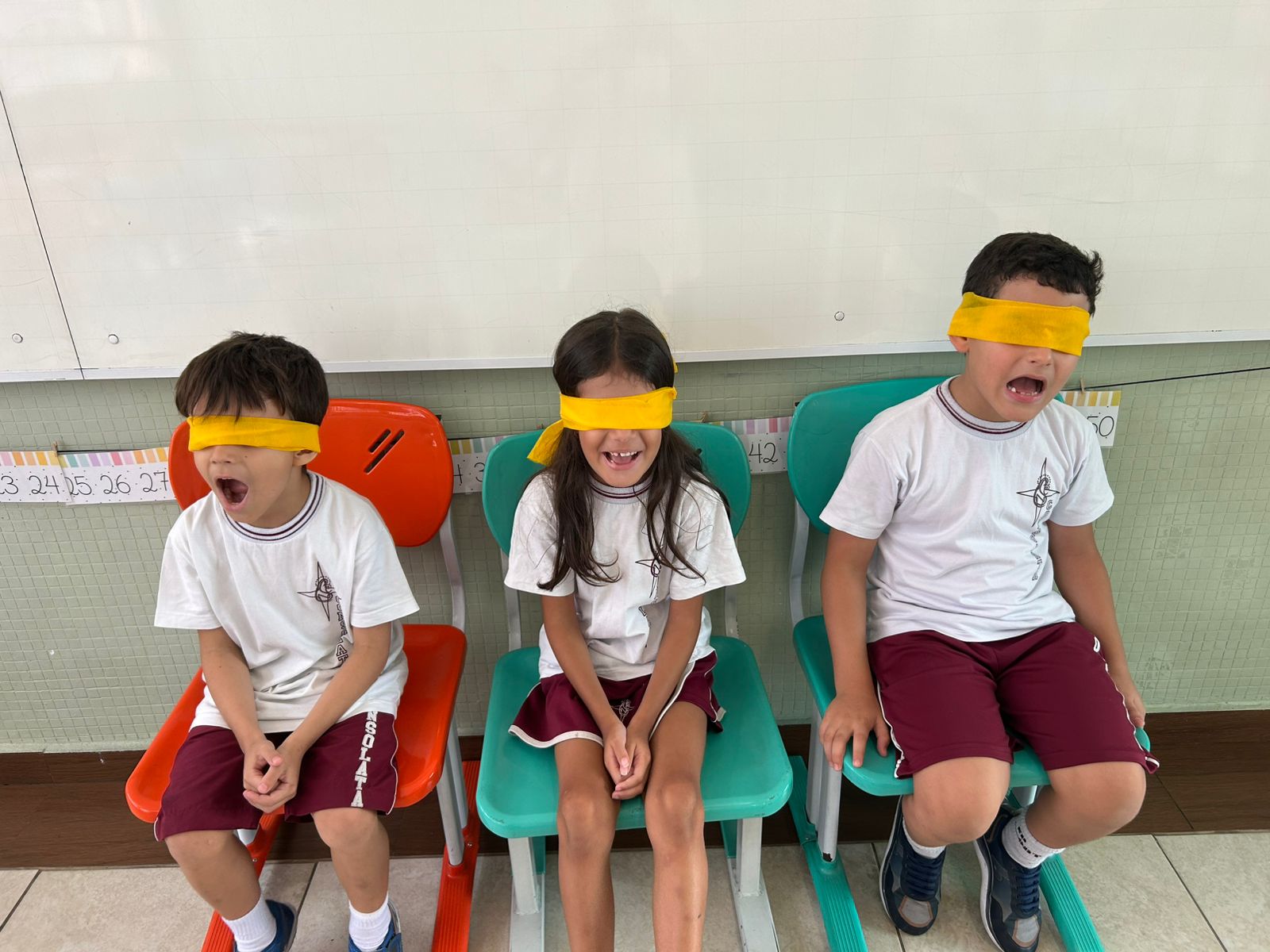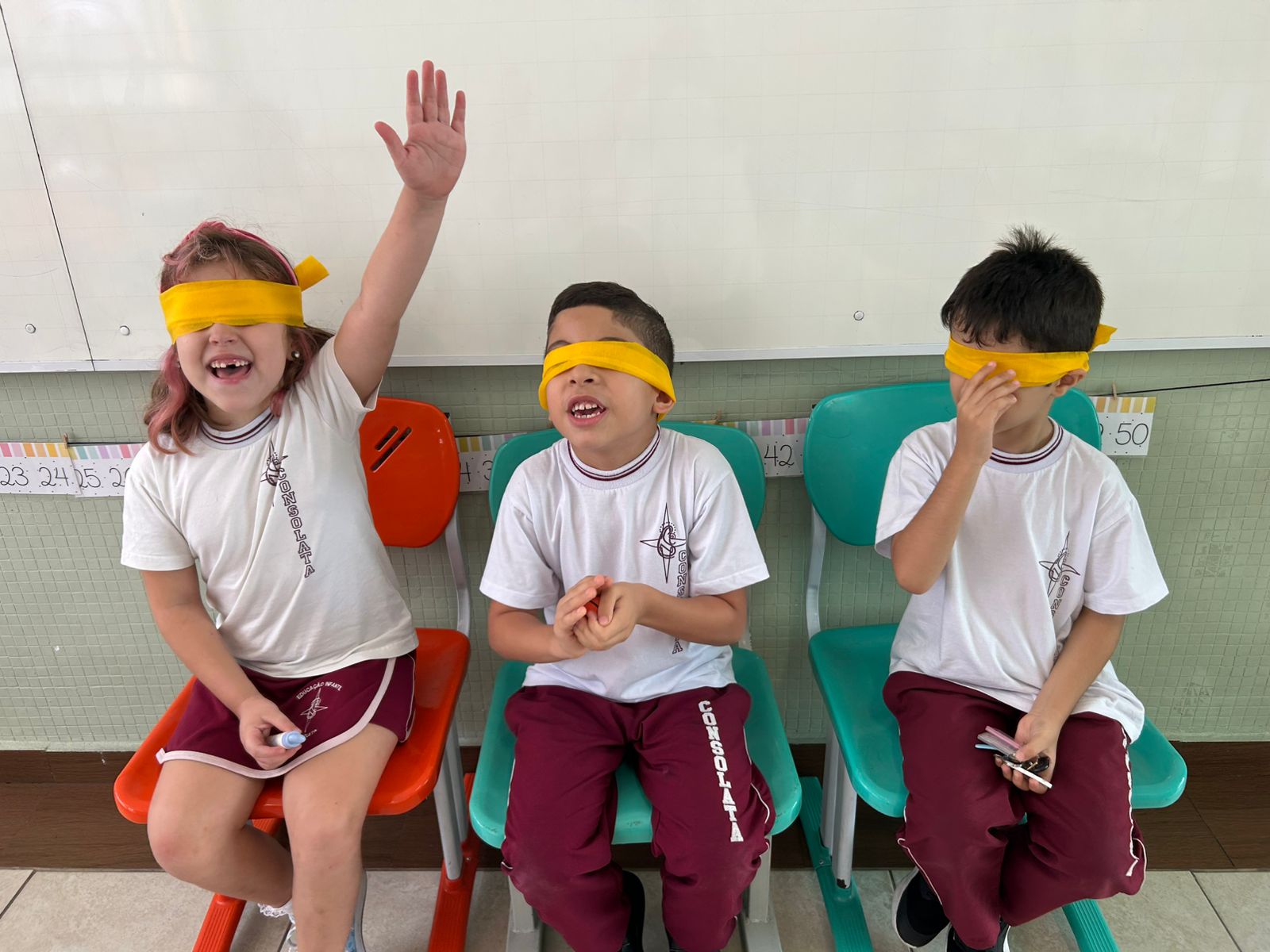 Os alunos do 1º ano A mergulharam no universo dos cinco sentidos na aula de Ciências — e, claro, aprenderam do jeito que criança aprende melhor: brincando!
