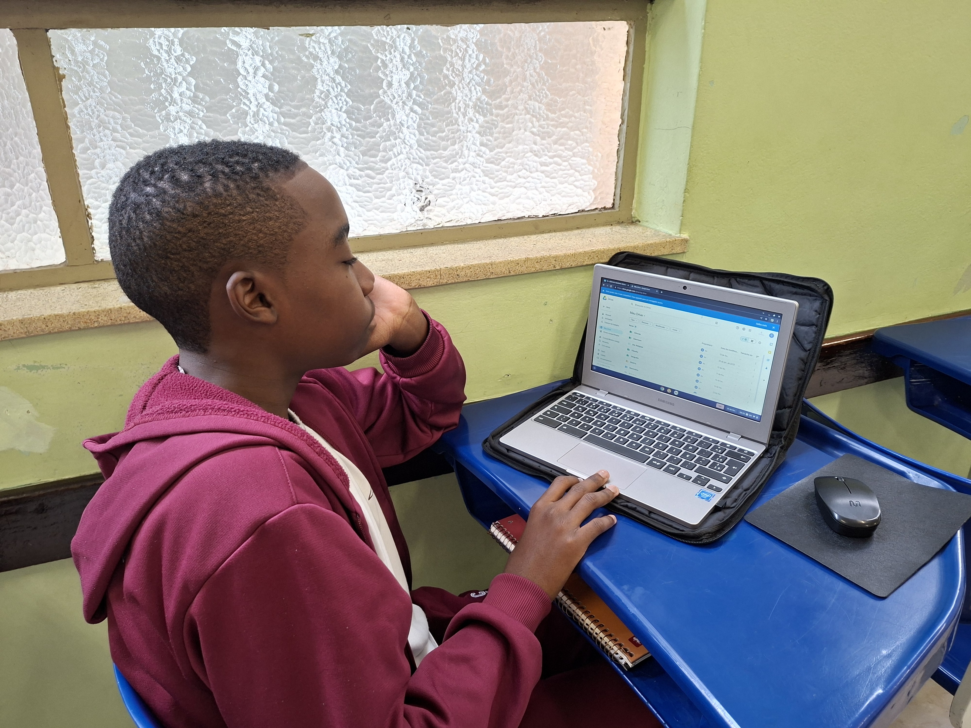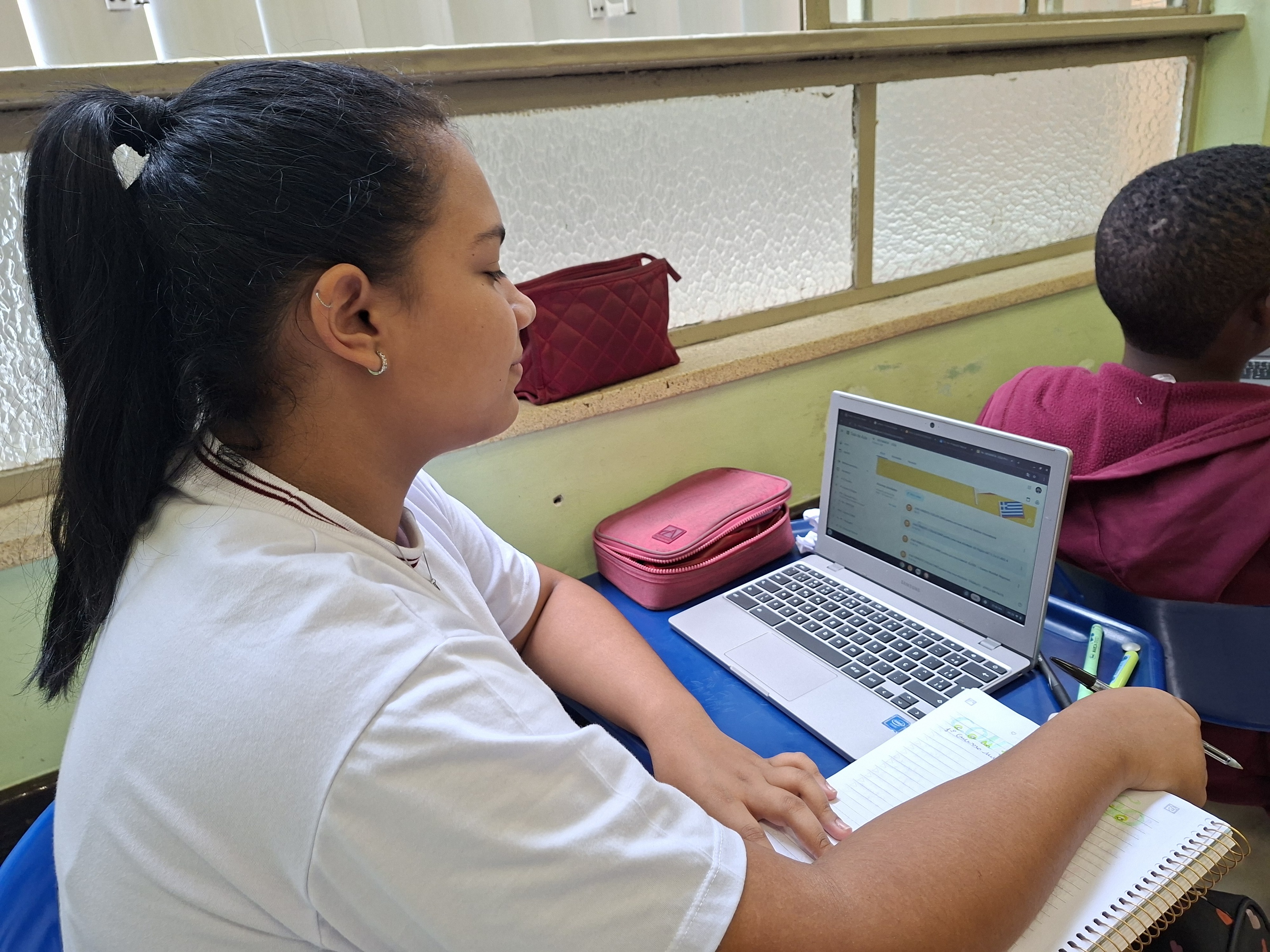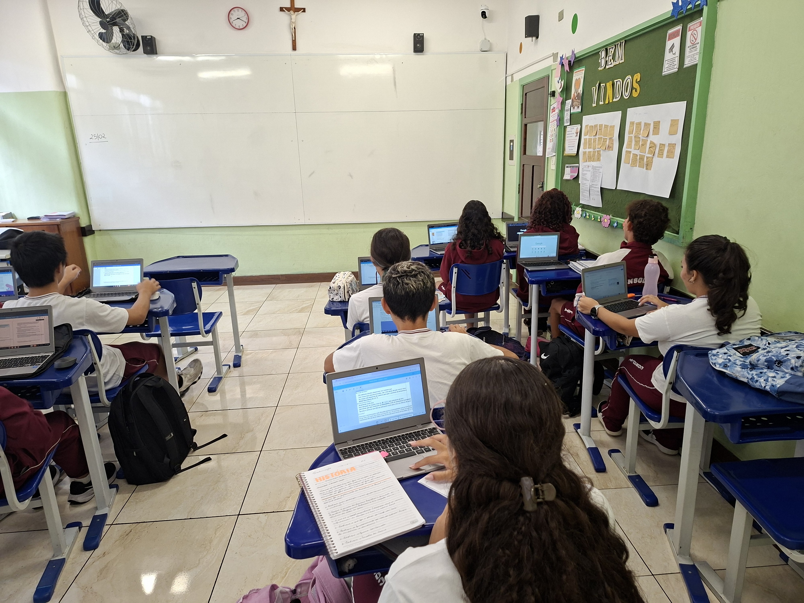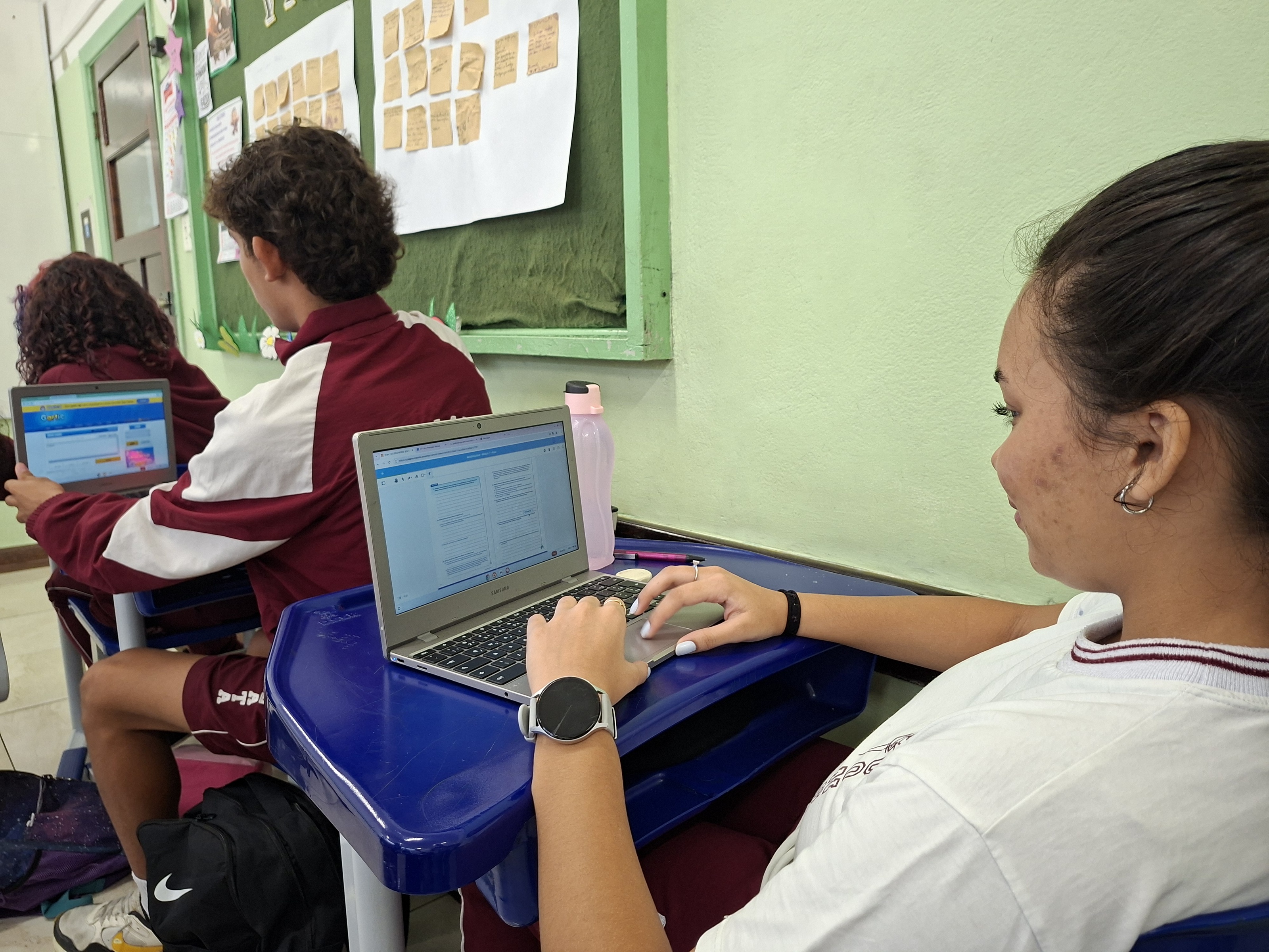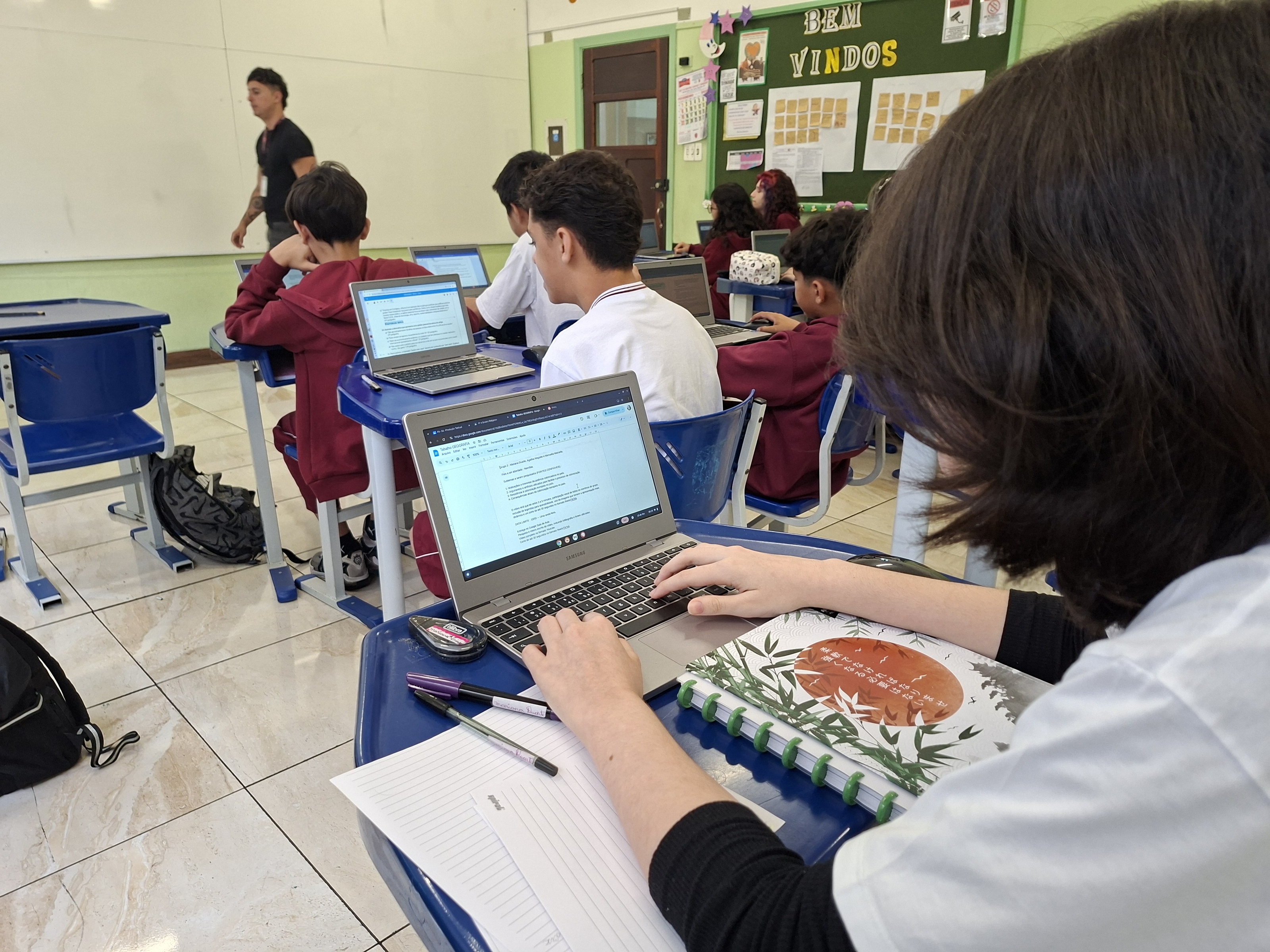 Os alunos do 9º ano participaram de um aulão especial com os professores Rafael (História) e João (Geografia) para iniciar a jornada com o Chromebook.