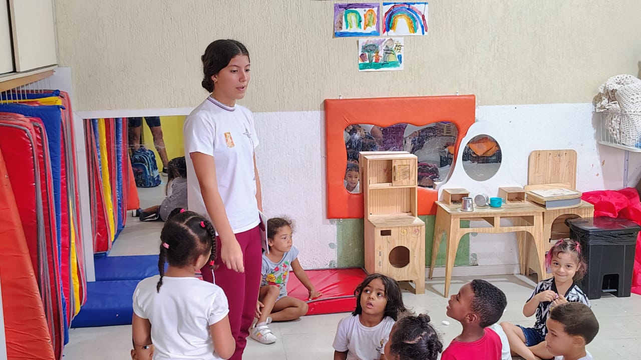 A primeira atividade aconteceu na creche CEI Consolata, do Centro Comunitário Nossa Senhora Aparecida, onde os estudantes puderam viver, de forma concreta, o espírito missionário que faz parte da caminhada do grupo e é carisma do nosso Colégio.