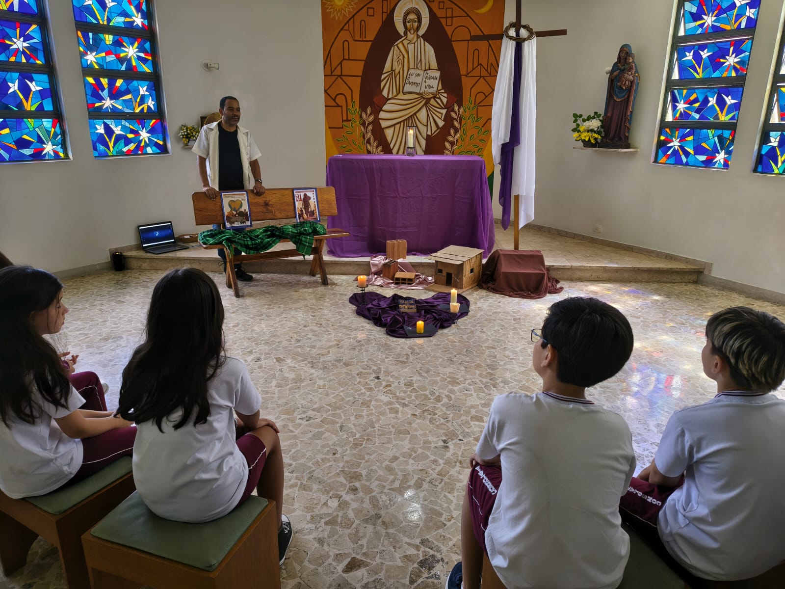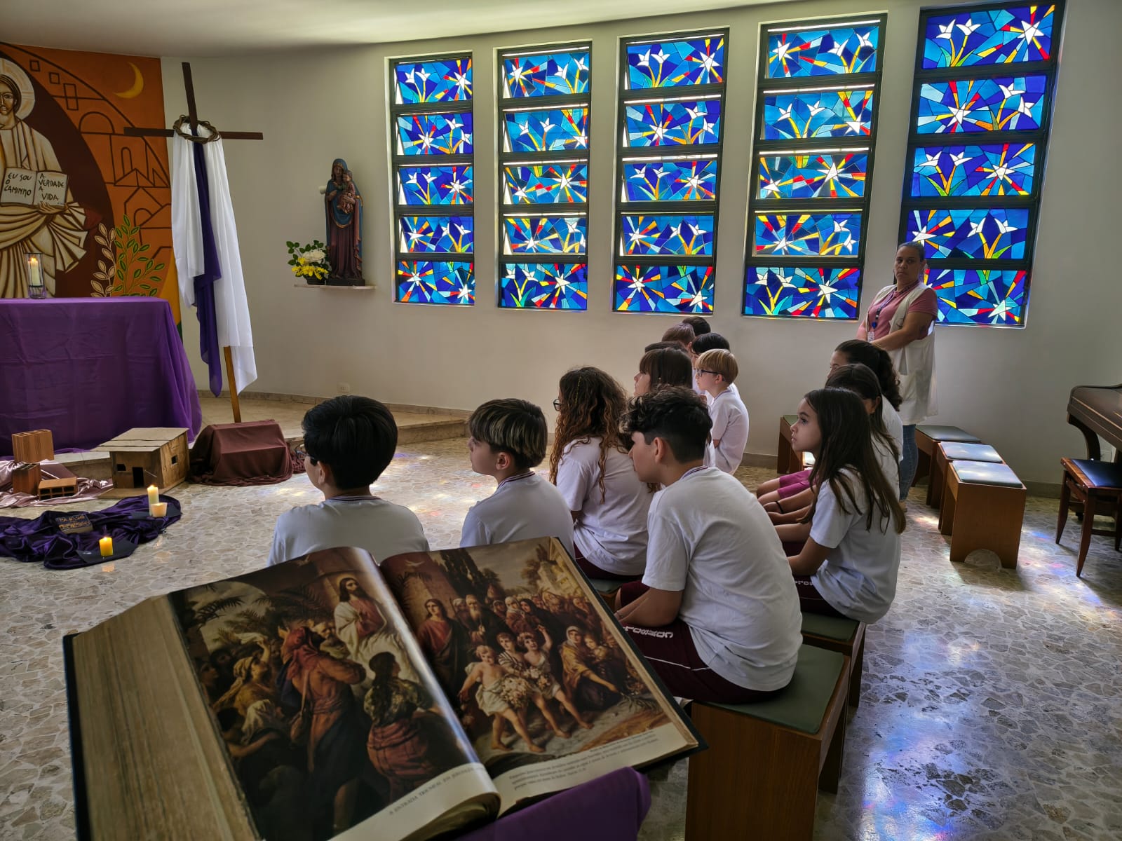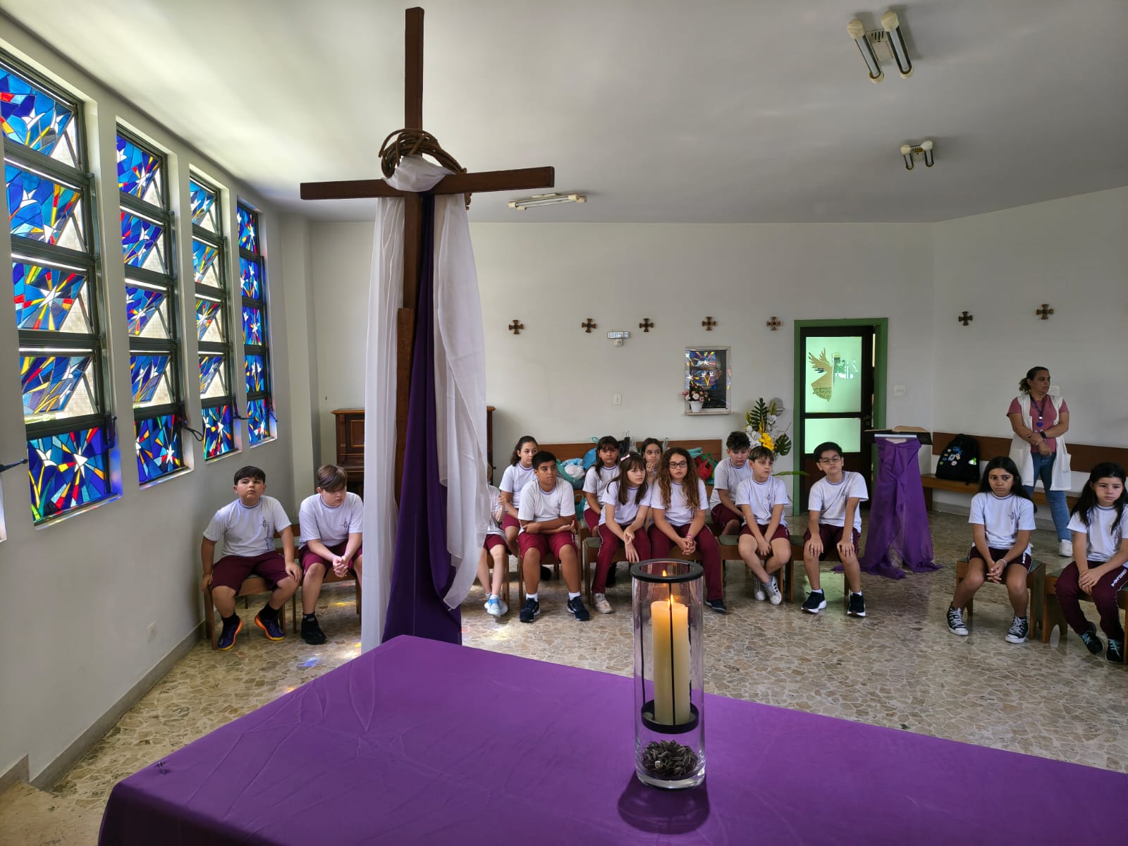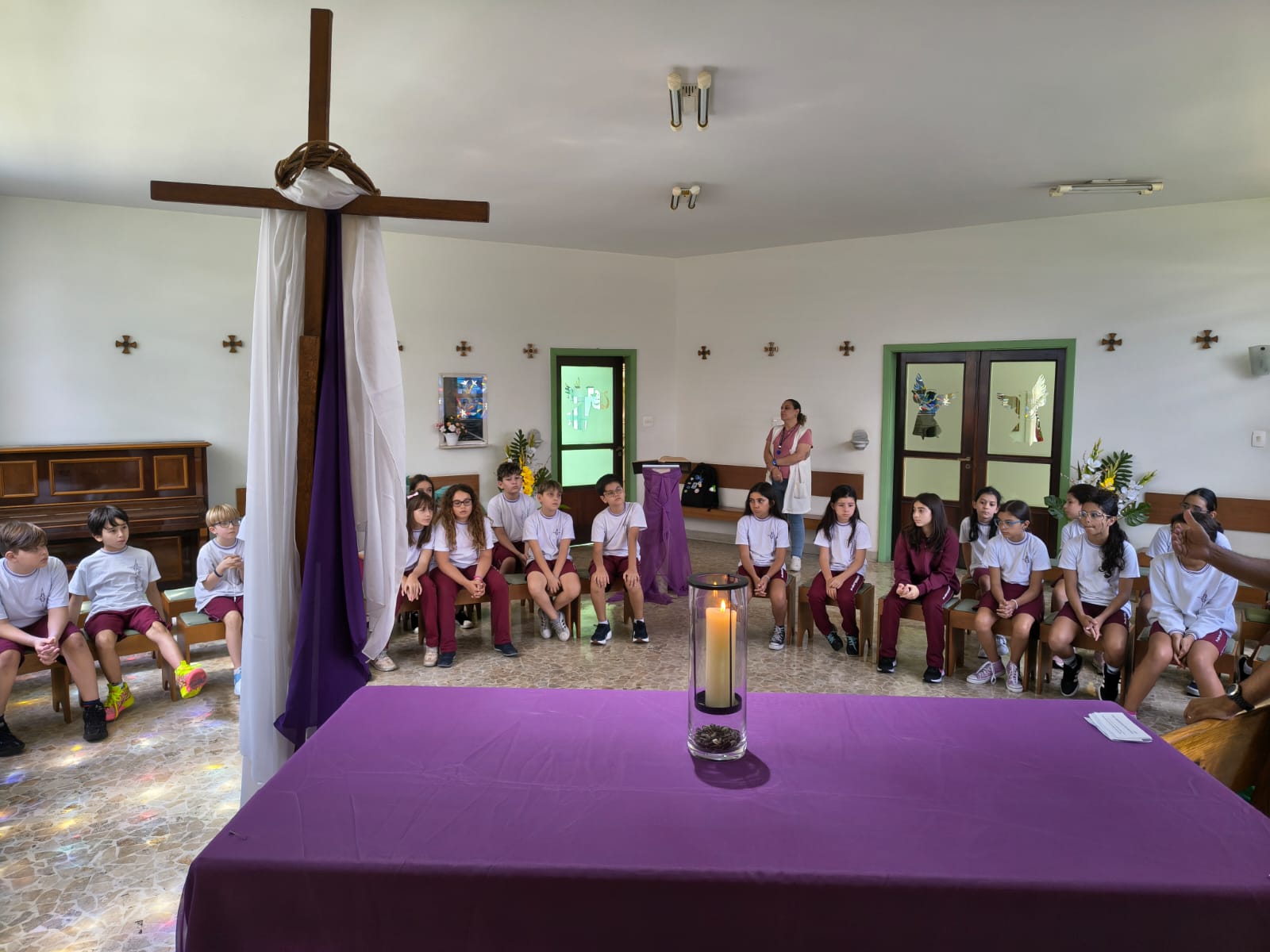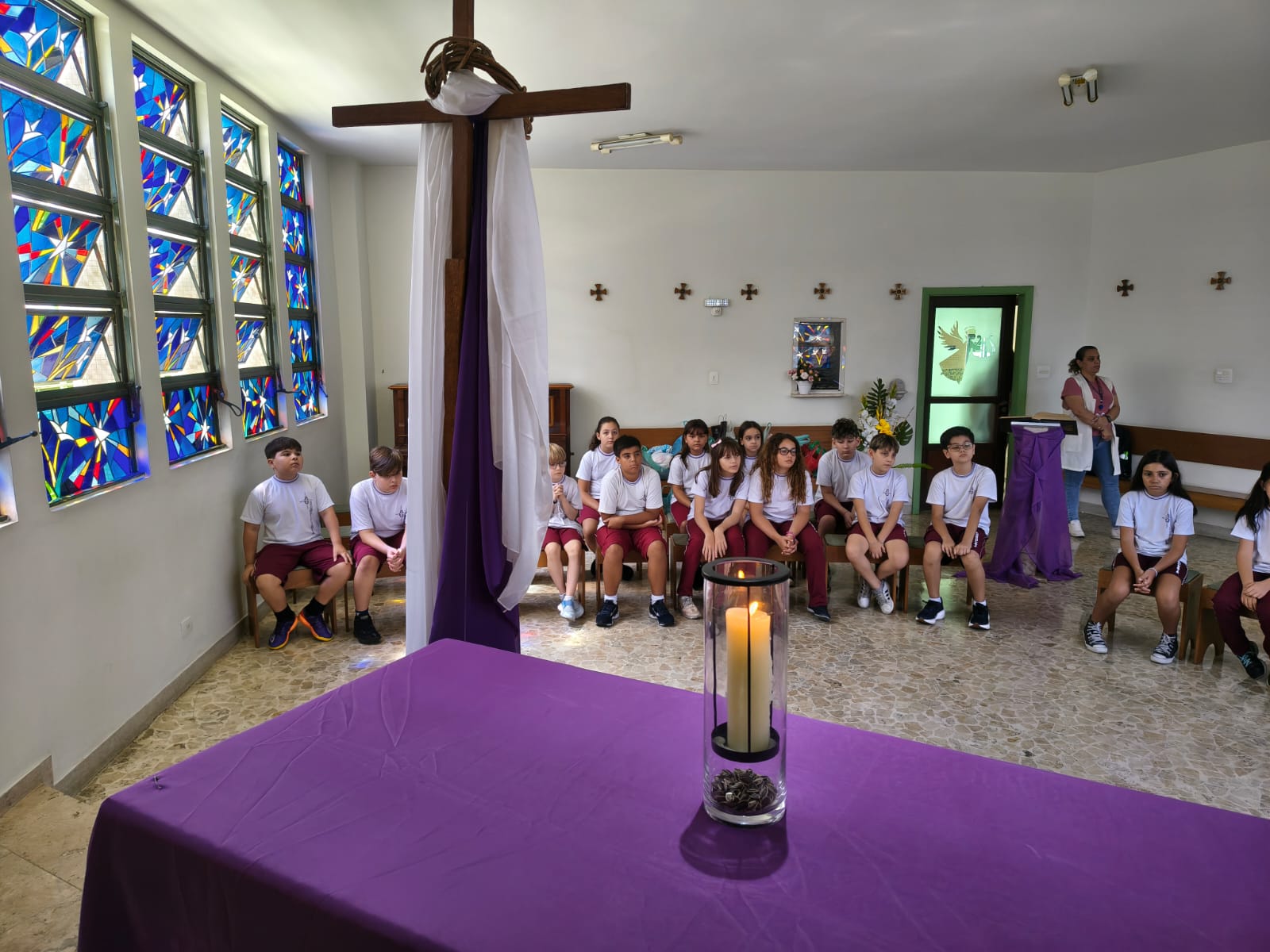 Na capela do Colégio Consolata, nossos alunos vivenciaram momentos especiais de oração e reflexão, celebrando a Páscoa como experiência de encontro, silêncio e partilha. Em meio à rotina escolar, esses instantes tornam-se preciosos, pois ajudam a cultivar a interioridade, fortalecer os vínculos e dar sentido à caminhada, iluminando o coração com a presença viva de Cristo Ressuscitado.