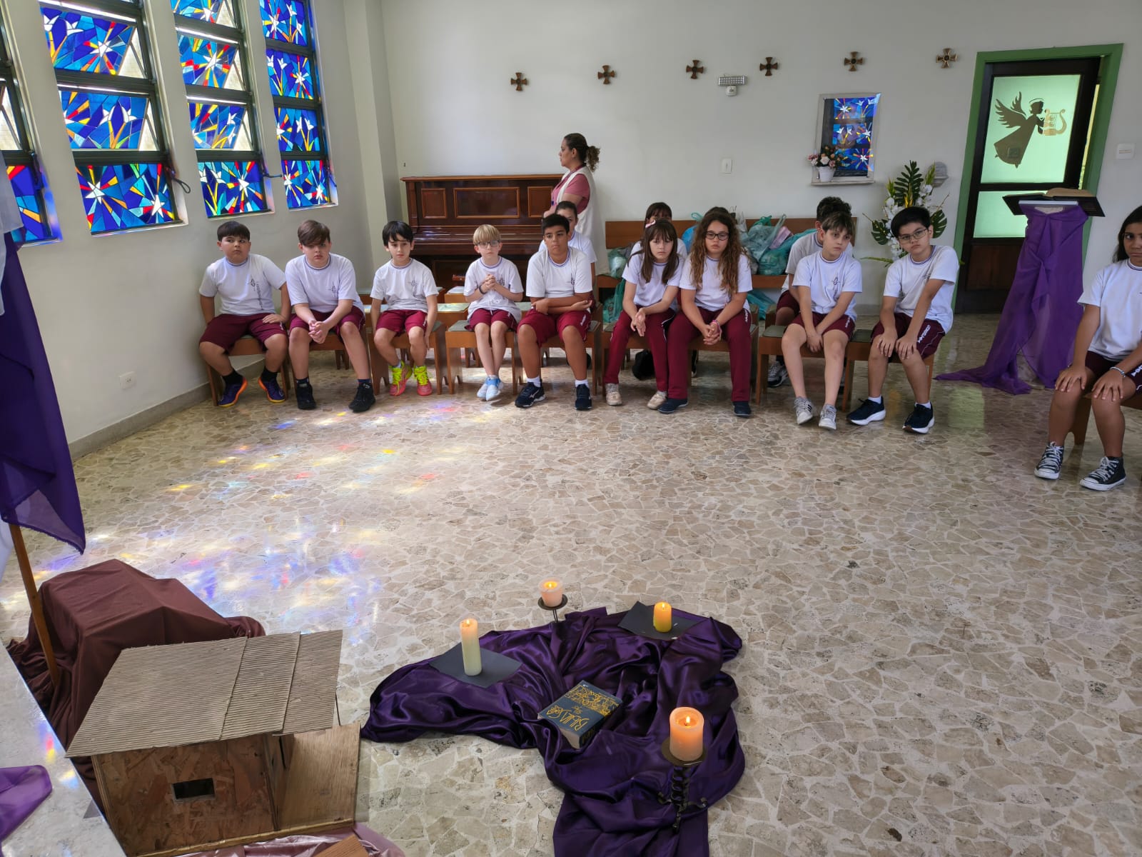 Reunidos com seus colegas, os estudantes experimentaram a beleza de rezar juntos, de escutar e de se colocar diante de Deus com simplicidade e verdade. Assim, vão aprendendo que a fé não se vive sozinha, mas se constrói na convivência, no cuidado com o outro e nas pequenas atitudes do dia a dia, tornando a escola um espaço onde a vida é acolhida, cuidada e transformada.