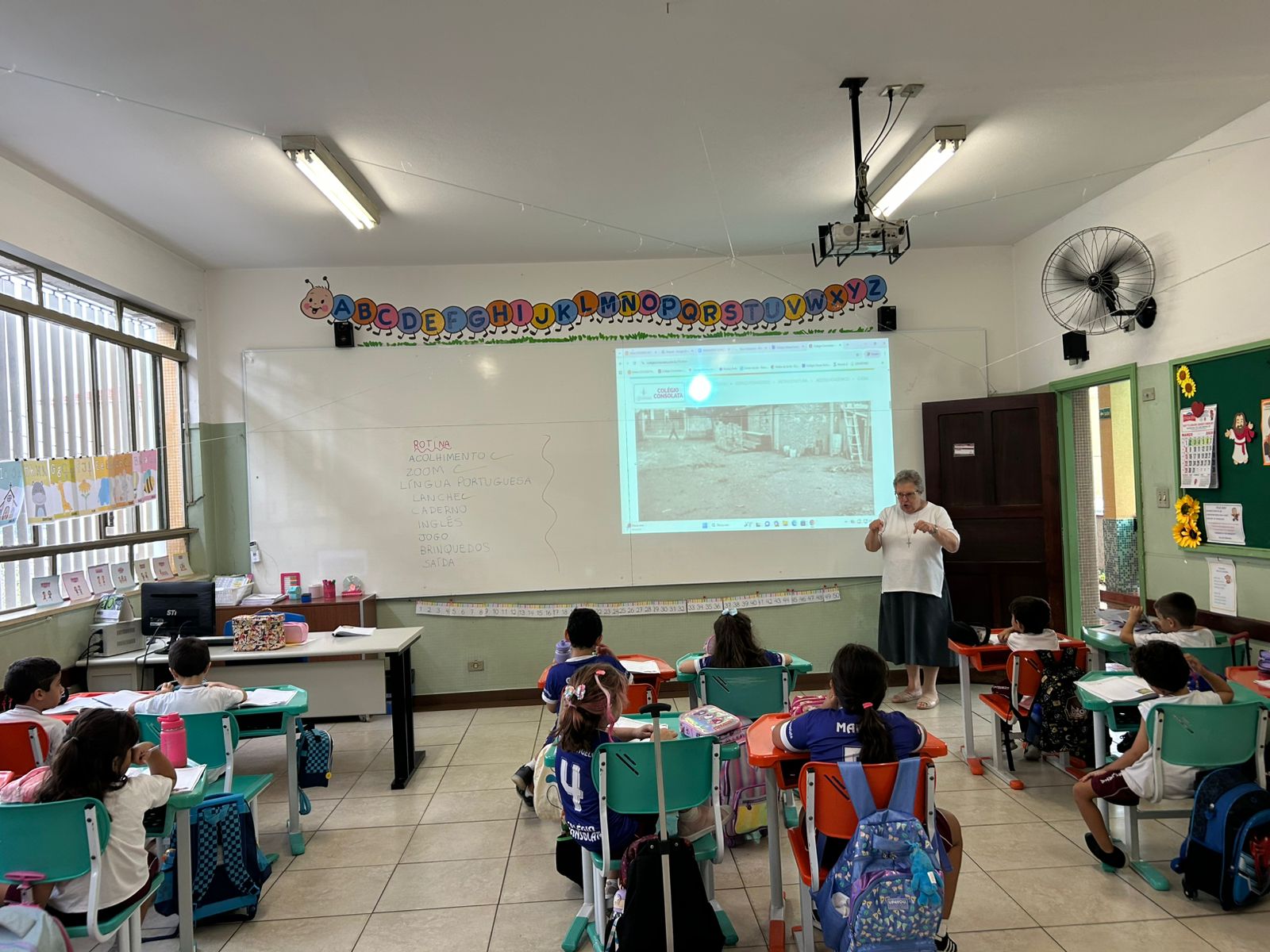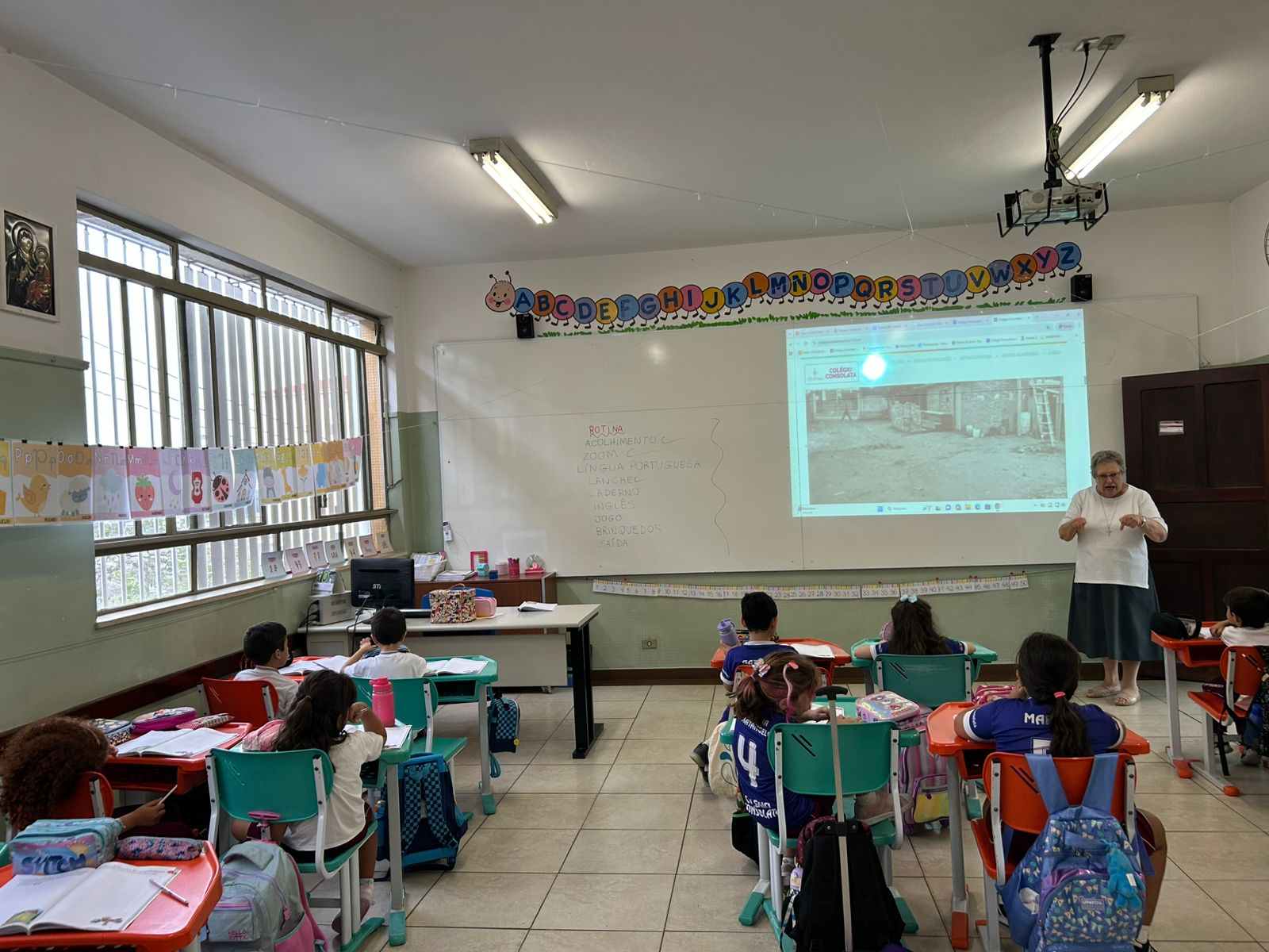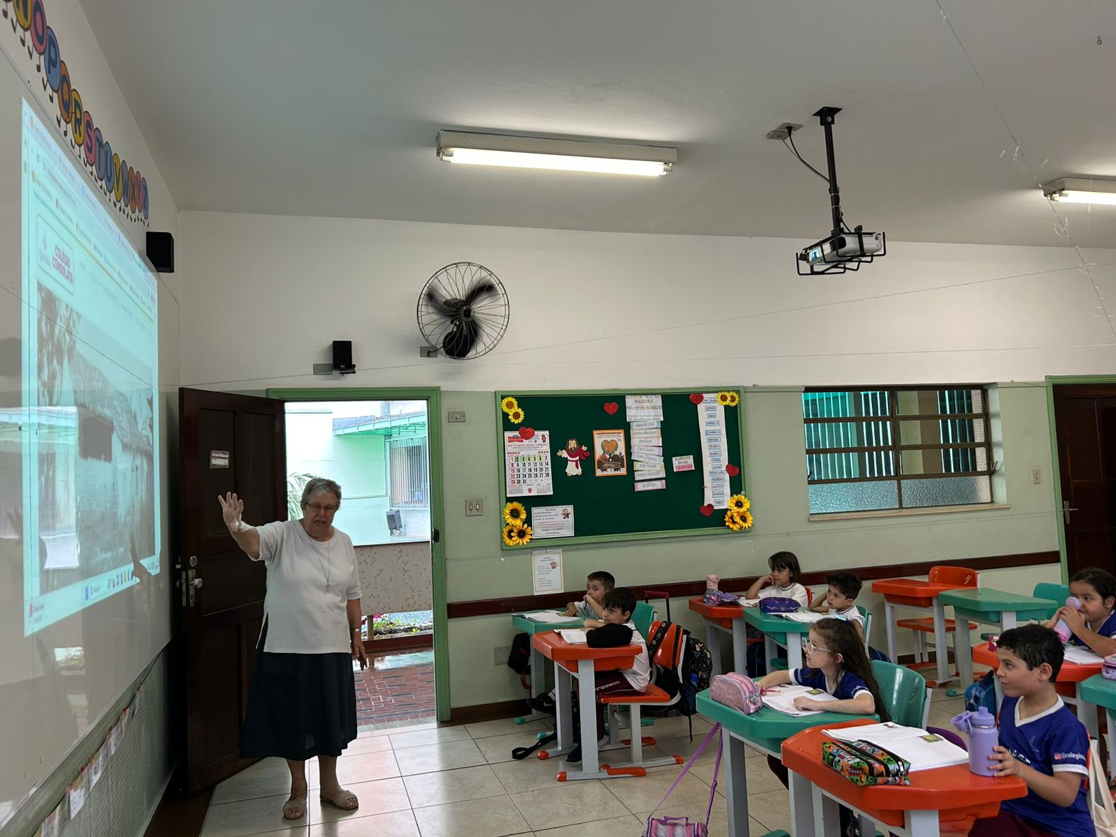 Os alunos do 1º ano A tiveram a oportunidade de conhecer um pouco mais sobre a história da nossa escola por meio de um momento muito especial, com a presença da nossa diretora, Irmã Irilda.