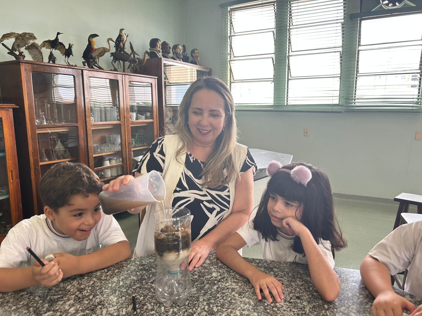 Em comemoração ao Dia da Água, os alunos do 1º ano A e B aprenderam sobre o processo de filtragem da água por meio de uma experiência prática no laboratório de ciências.