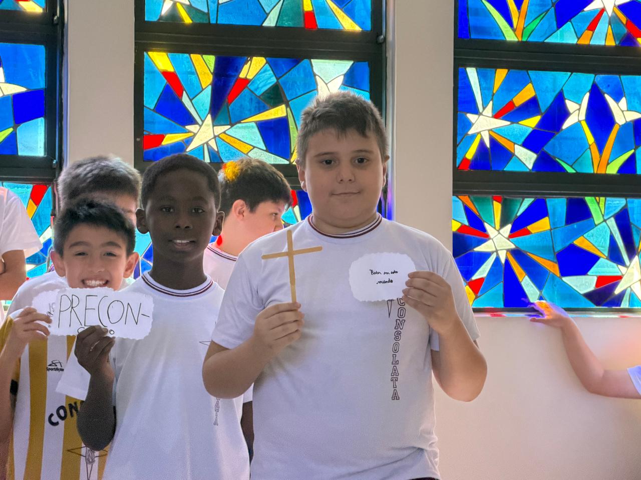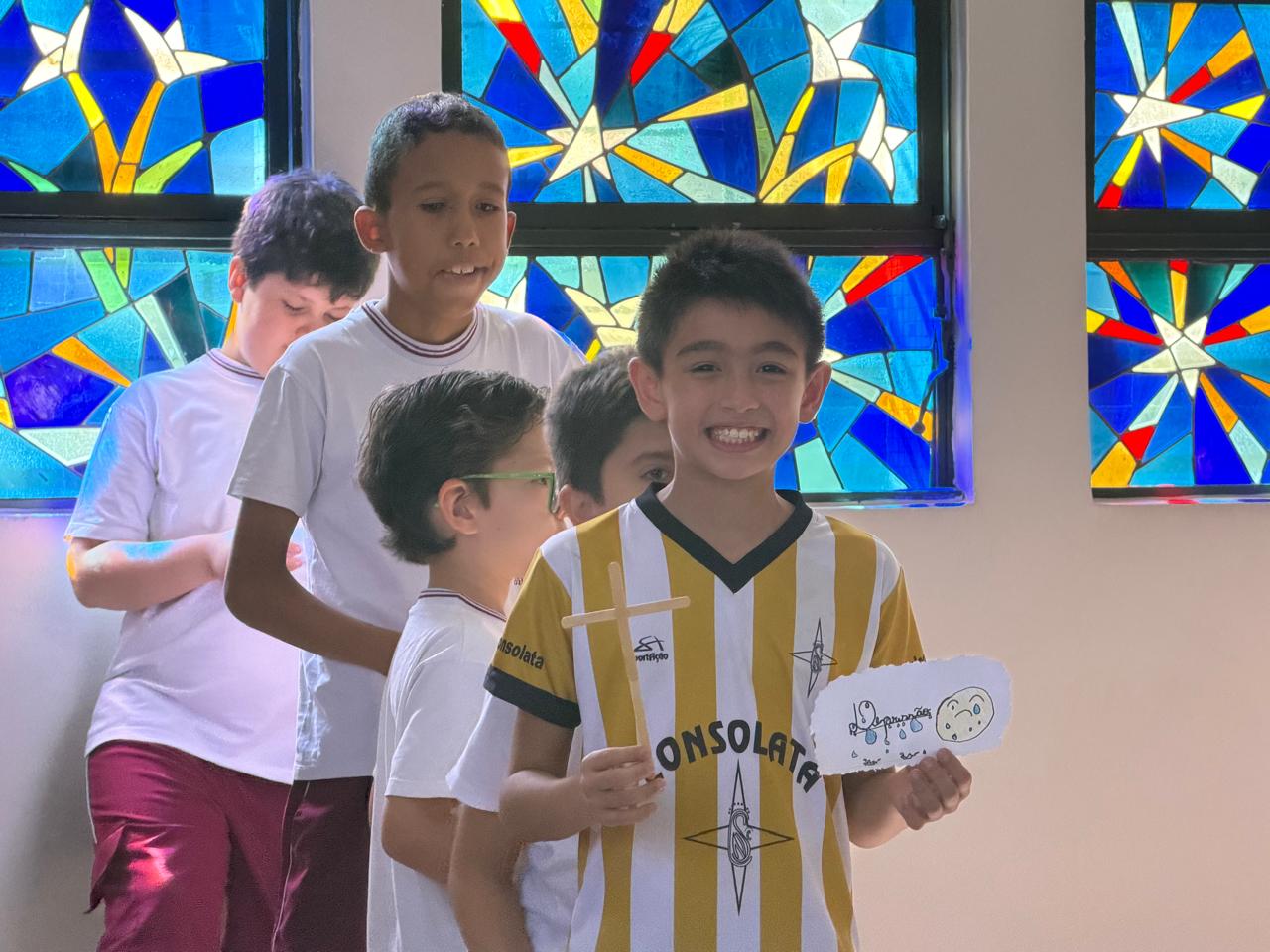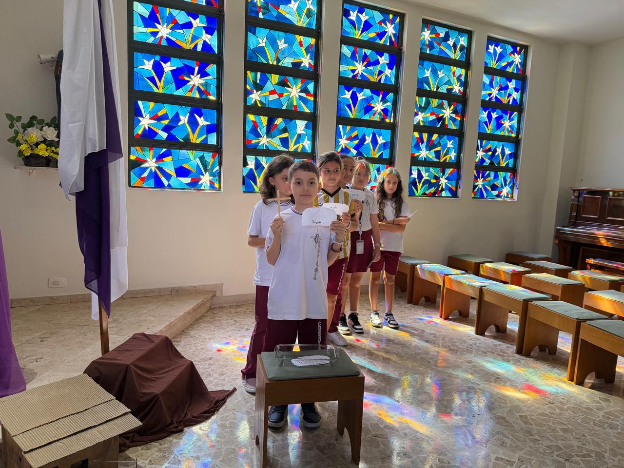Os alunos do 4º ano participaram de uma assembleia na capela Consolata com o tema renovação, em razão da ressurreição de Jesus.