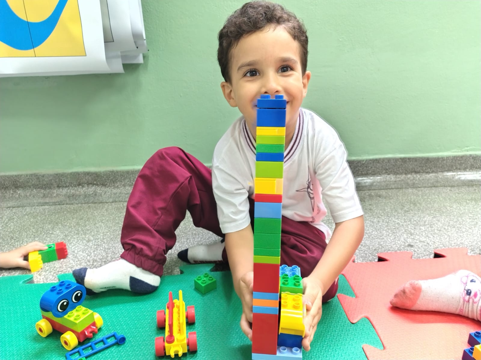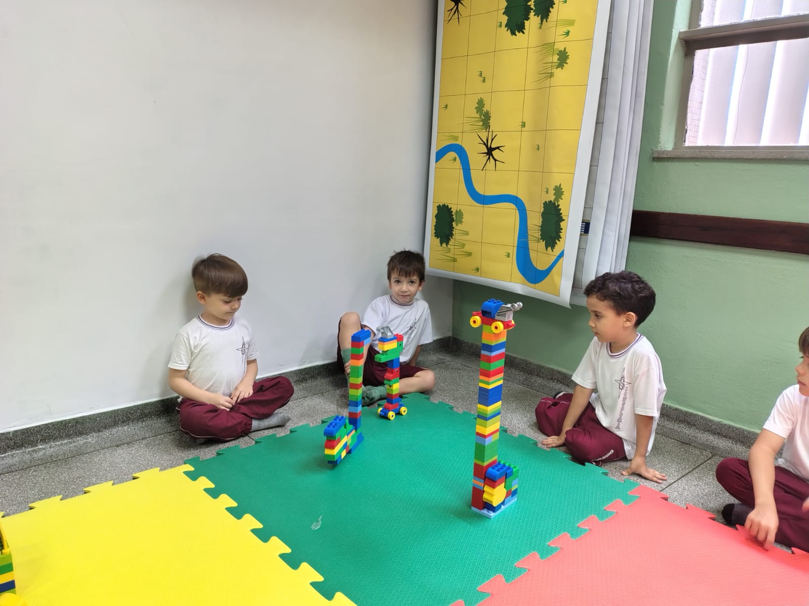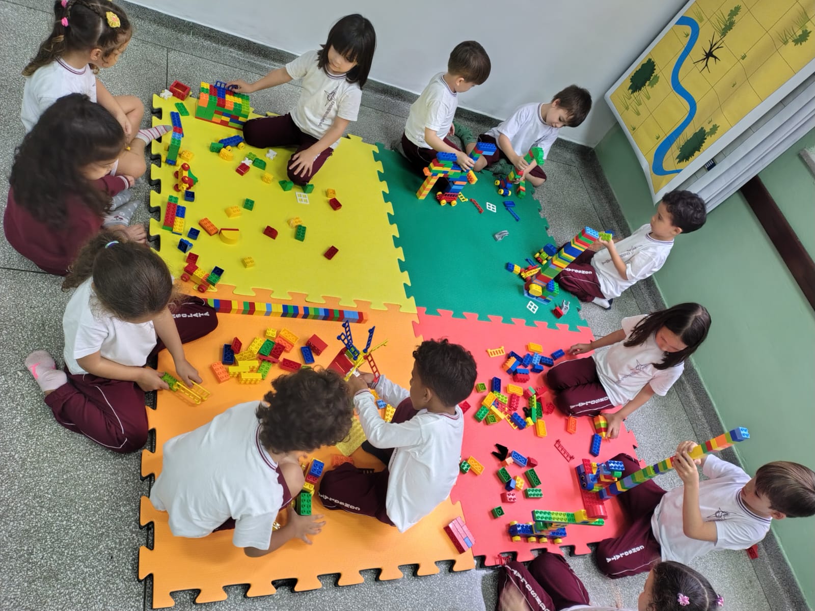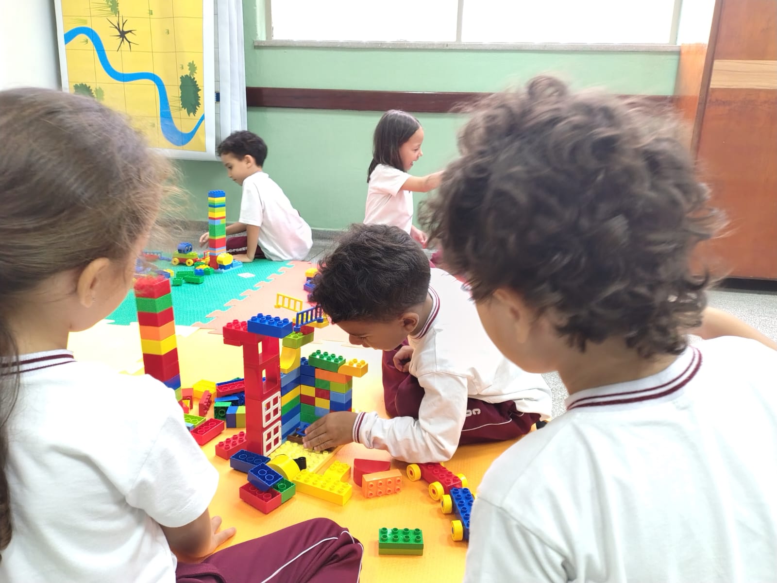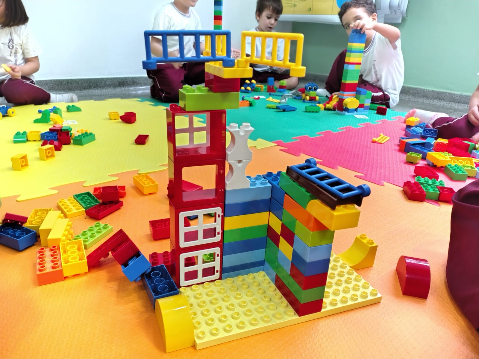 Nessa atividade realizamos uma roda de conversa onde as crianças foram convidadas a conversar sobre as cidades, comentando semelhanças e diferenças entre elas. No segundo momento foram chamadas a construir uma cidade com os conjuntos de peças de montagem. Elas realizaram as criações utilizando os recursos que elas mesmas identificaram, a fim de fazer encaixes e deixar suas construções em pé. Finalizamos com a exposição das criações e uma roda de apreciação, celebrando a imaginação de todos!