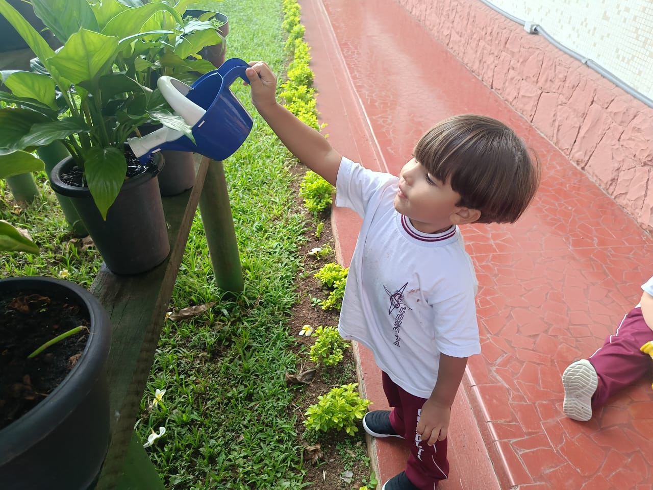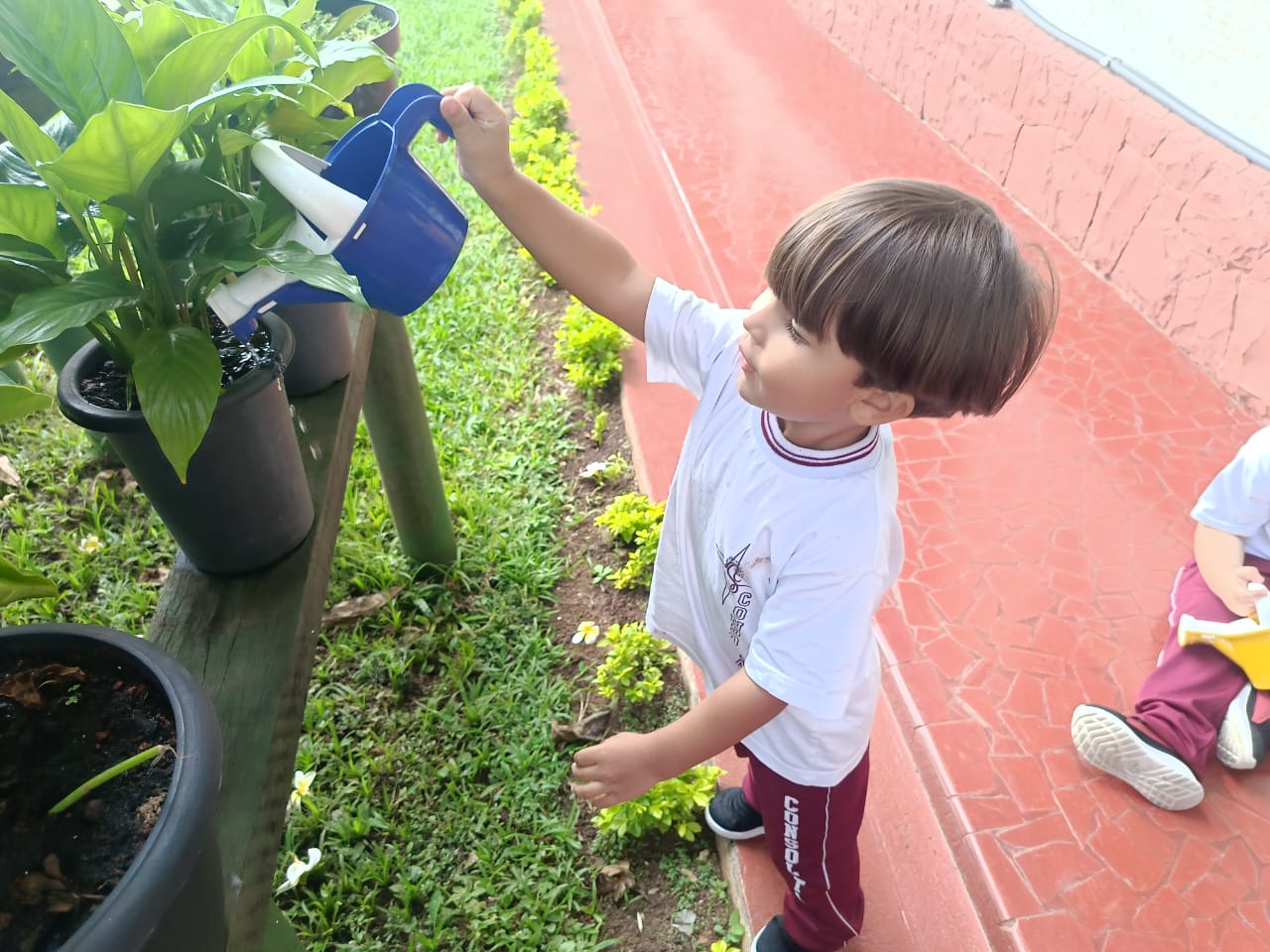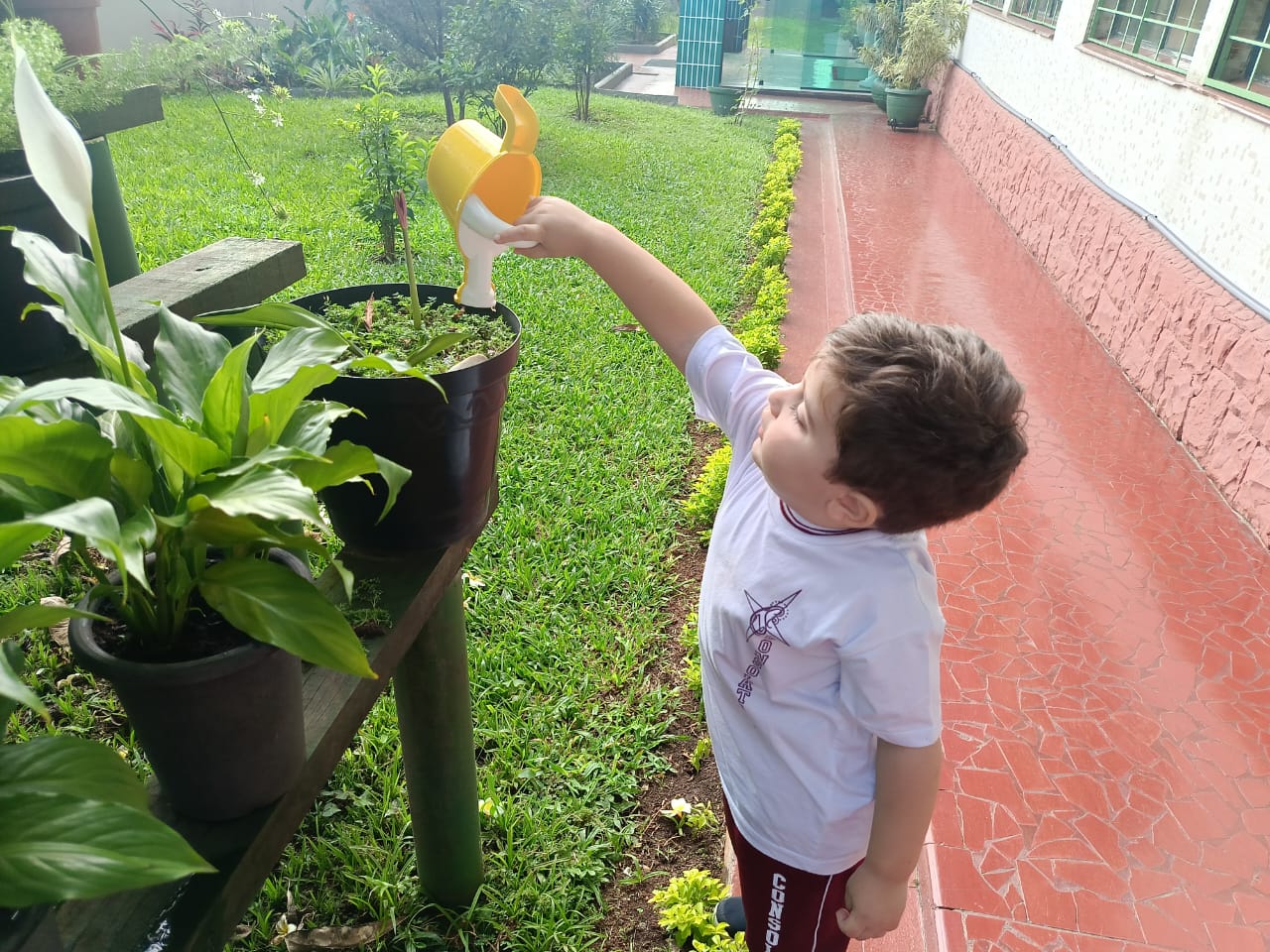 Trabalhando o livro de atividades e descobrindo tudo que há no jardim, os alunos do Infantil 1, após o momento de contemplação realizaram a rega das plantinhas do jardim. Compreenderam a importância da água para a vida botânica e cuidaram com todo amor e carinho do jardim do colégio.